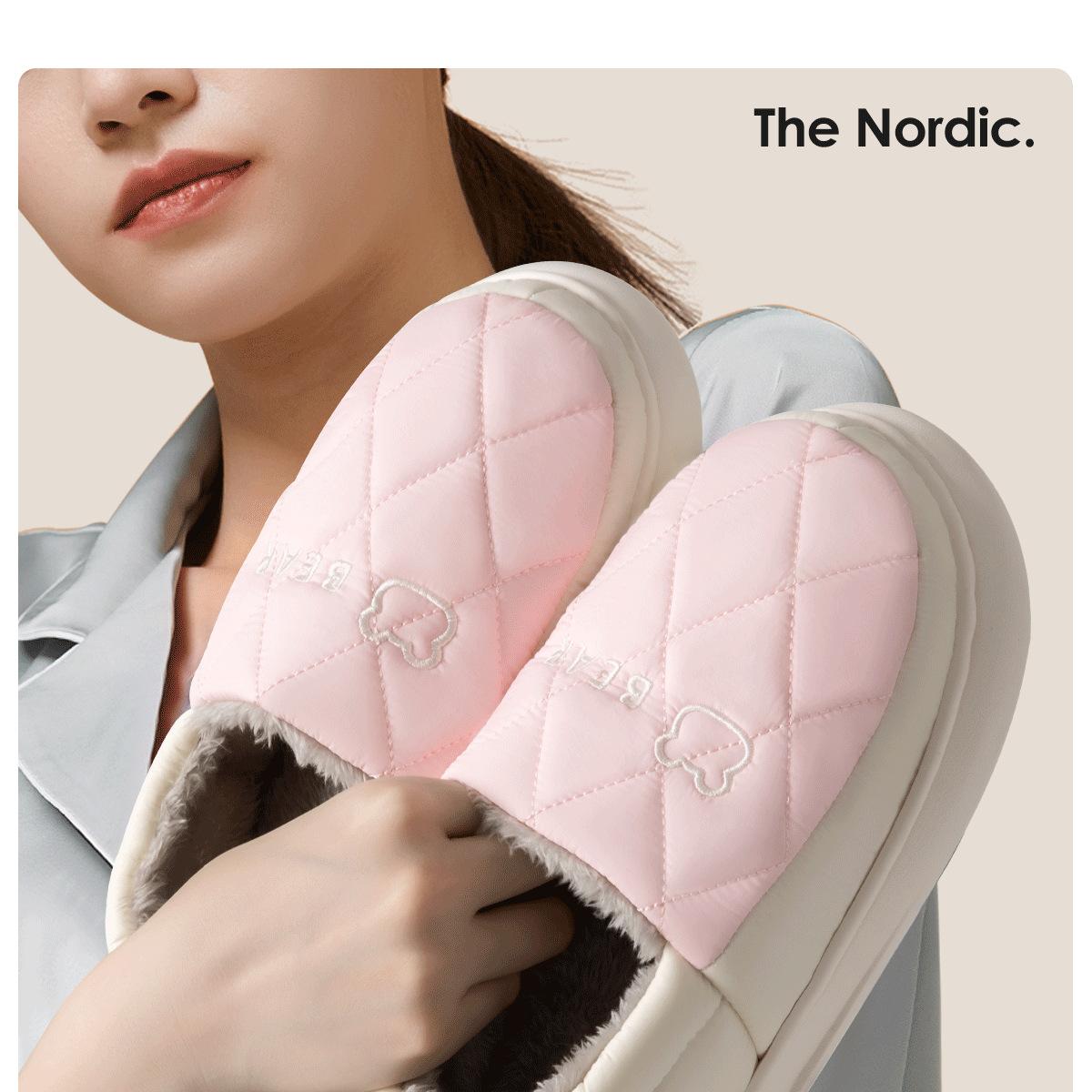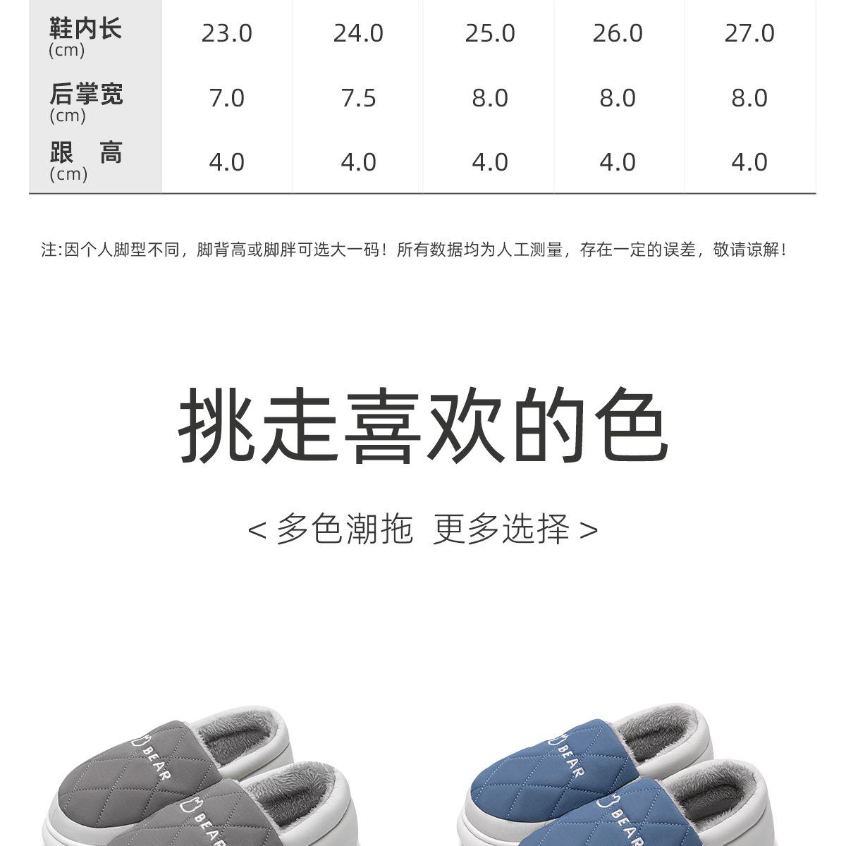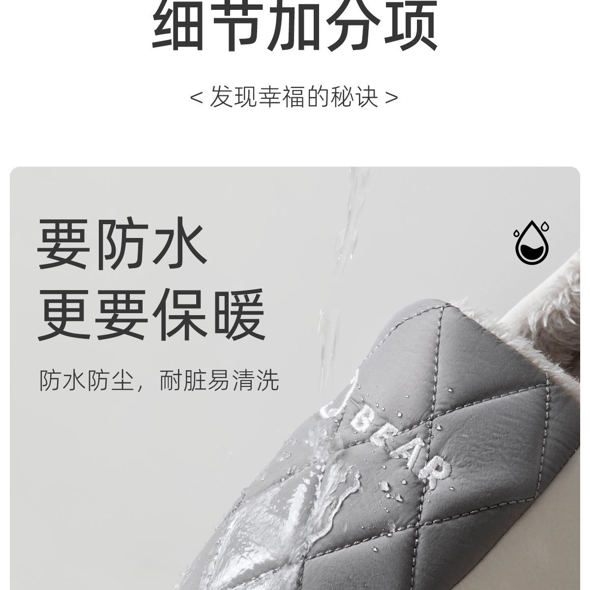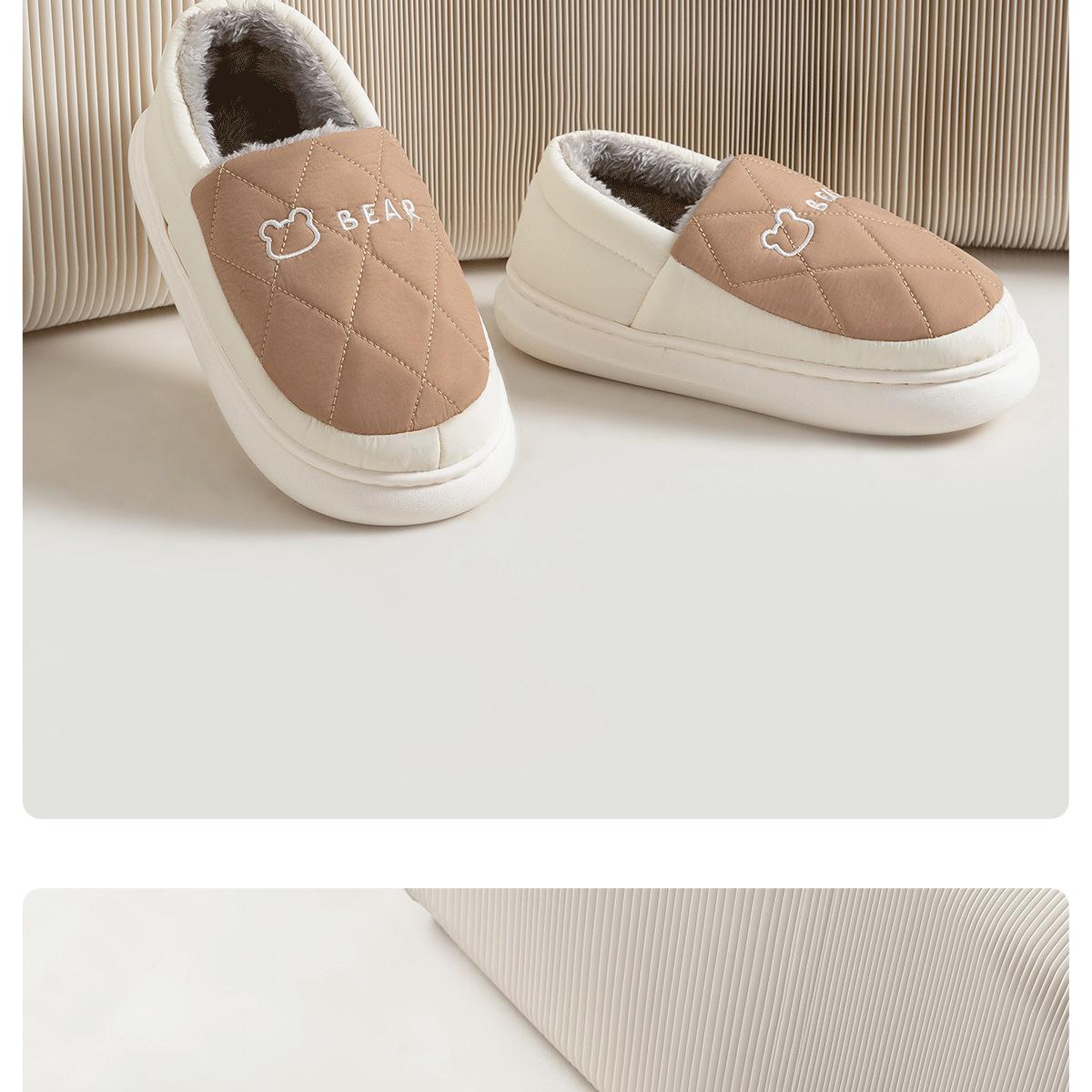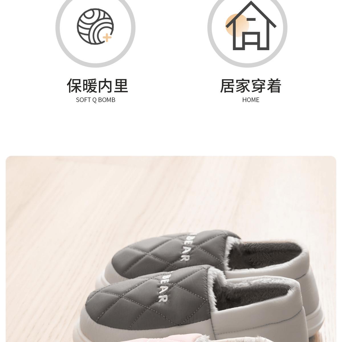 Pantuflas de algodón impermeables para otoño e invierno para mujer, con tacón totalmente cubierto, de felpa, cálidas, impermeables, para parejas, para el hogar y el hogar de los hombres.