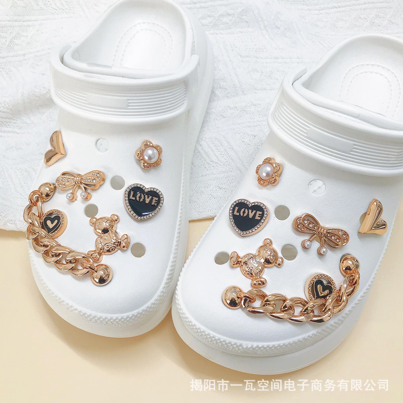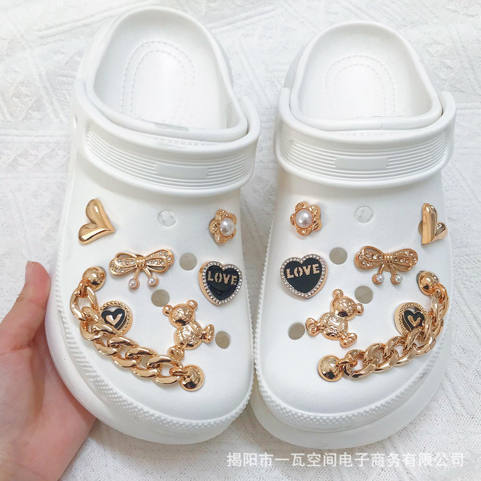 Venta transfronteriza de zapatos Crocs, accesorios de joyería con flores, hebillas de zapatos con oso extraíbles, hebillas decorativas para zapatos de jardín.