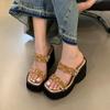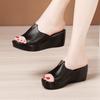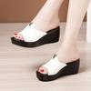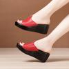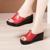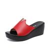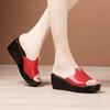 Sandalias de Cuña de Tacón Medio para Mujer 2025 Verano Plataforma Impermeable de Suela Gruesa Moda para Exterior Rojo Boca de Pescado Talla Grande Zapatillas de Mujer