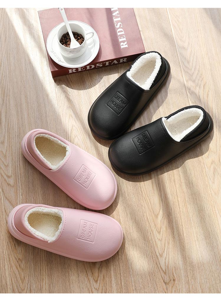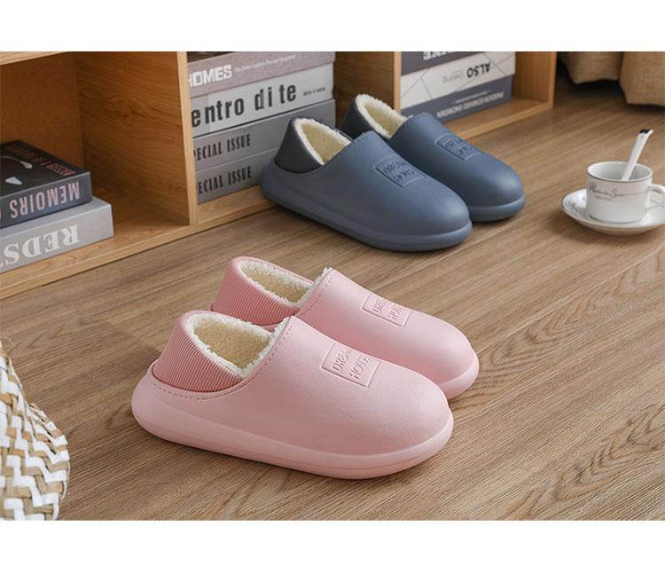Pantuflas de Algodón para Mujer Impermeables Otoño e Invierno Suela Gruesa para Casa para Hombre EVA Uso Interior y Exterior Zapatos de Algodón Cálidos de Felpa para Pareja