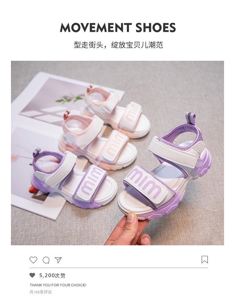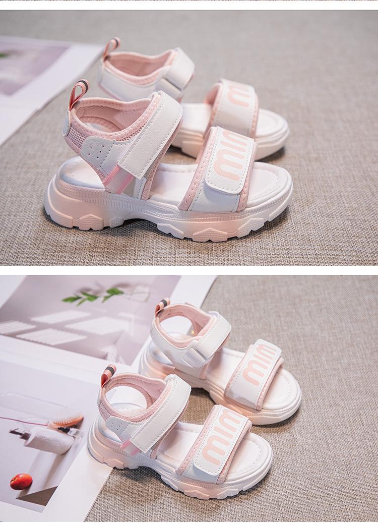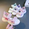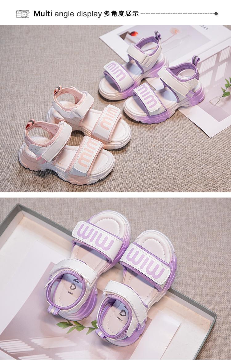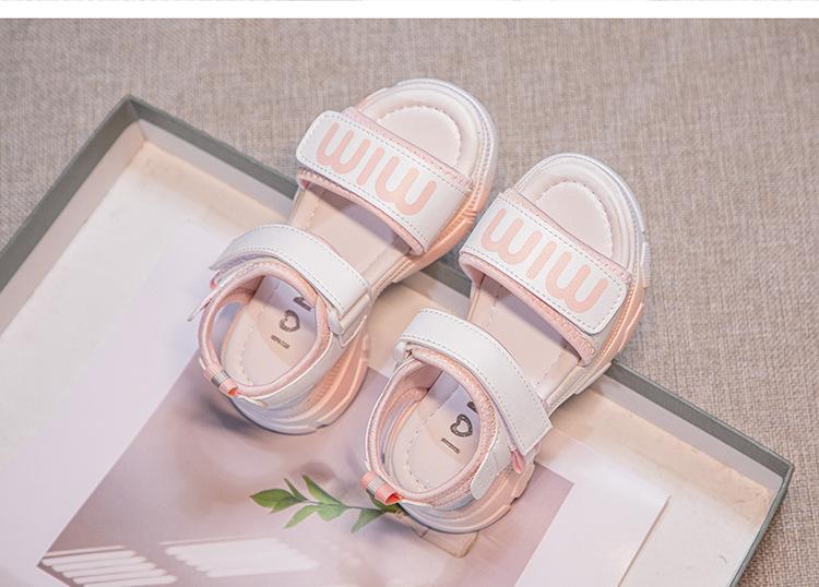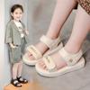 Sandalias para niñas 2024, nuevas zapatillas deportivas de playa de suela blanda, zapatos de verano grandes de princesa rosa a la moda para niños.