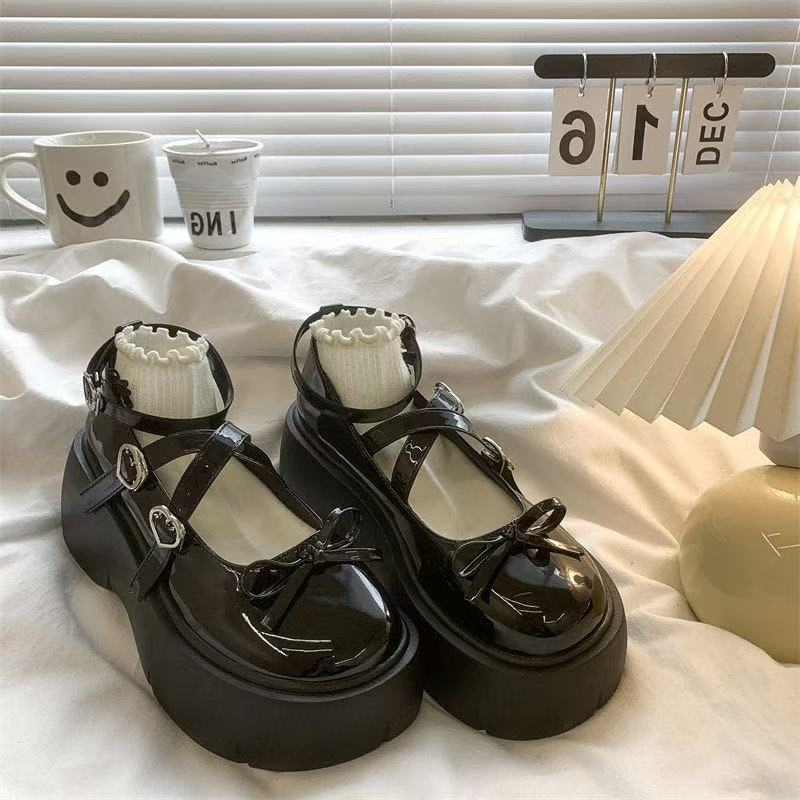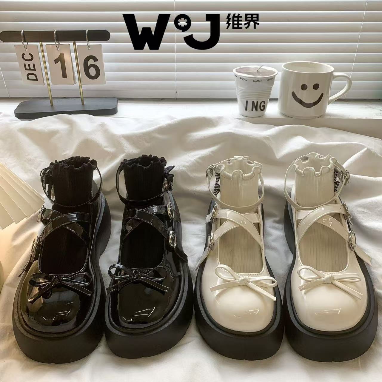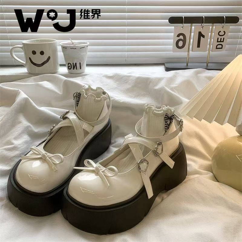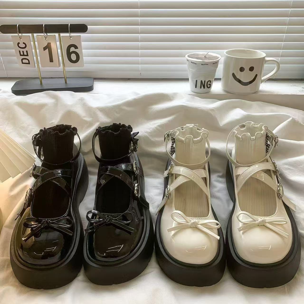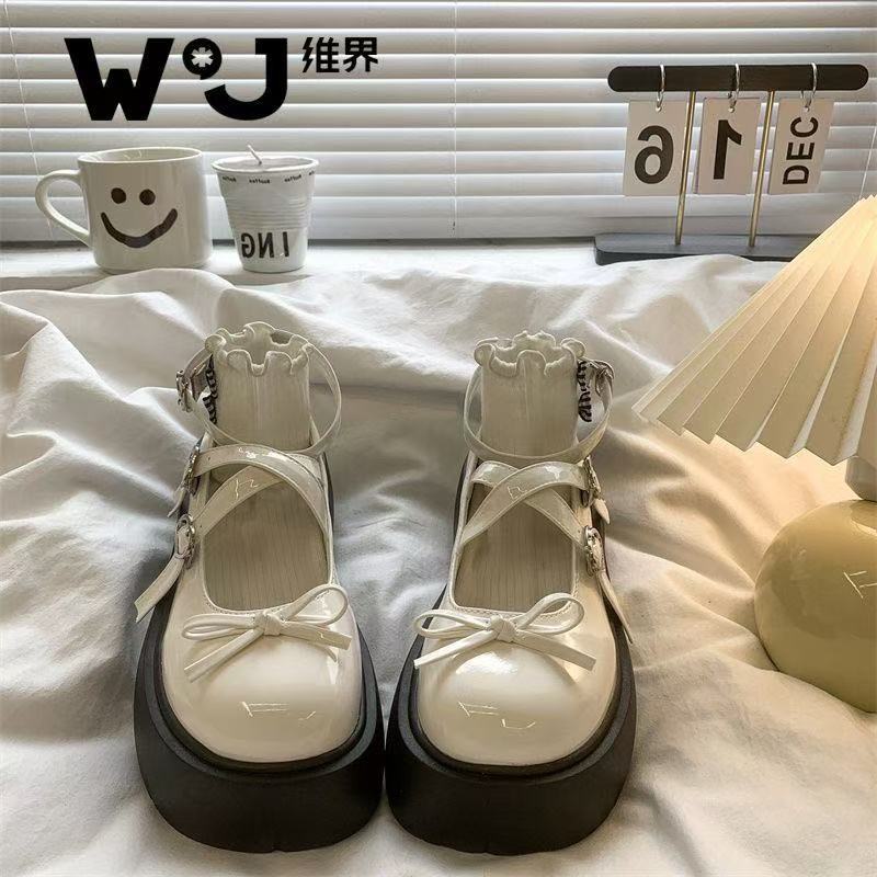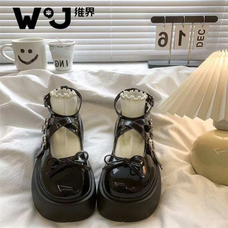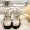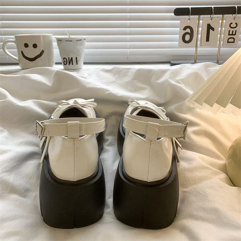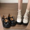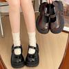 Zapatos de cuero estilo francés con punta redonda, tacón grueso y suela gruesa para mujer, primavera 2025, estilo retro Mary Jane, zapatos de boca baja con falda