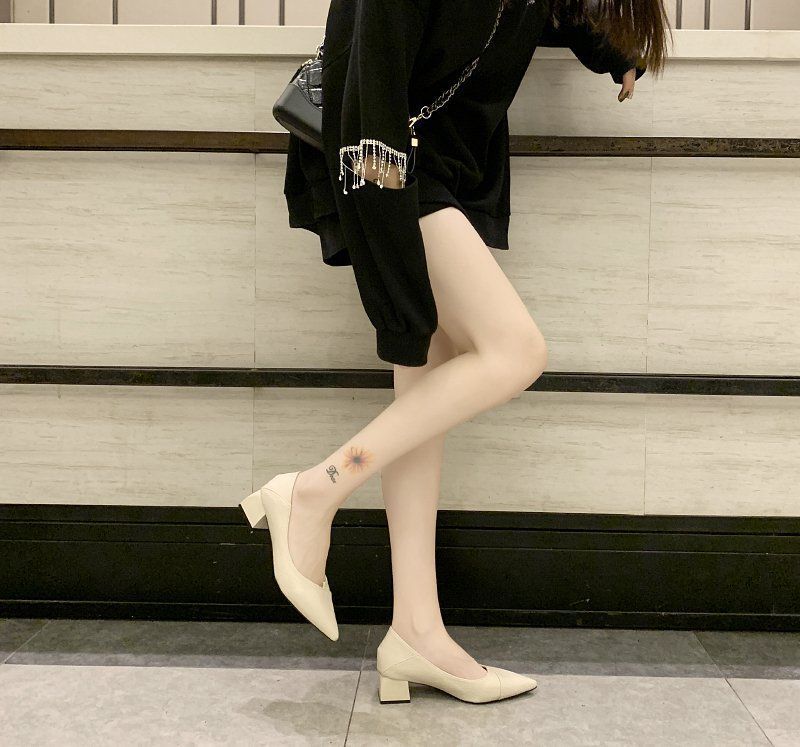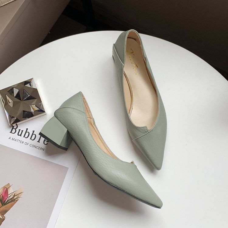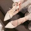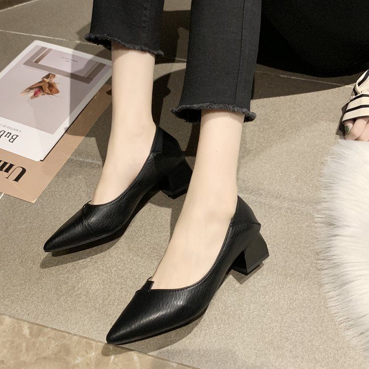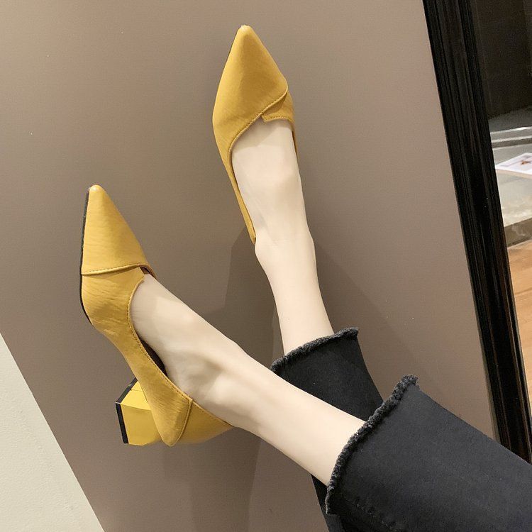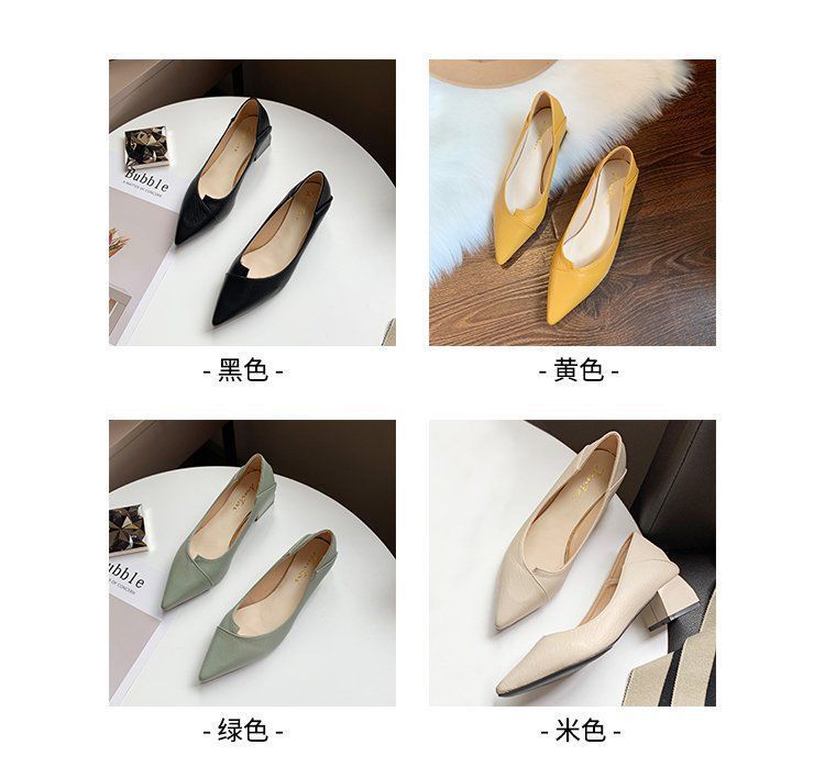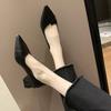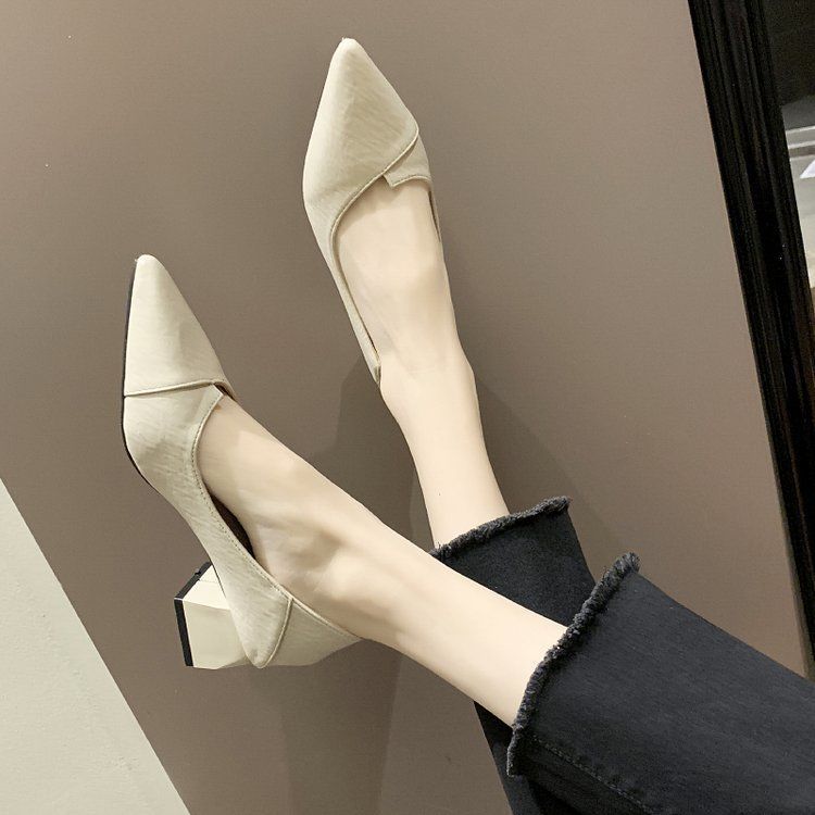 Verano Nuevo Estilo Punta Afilada Tacón Grueso Tacones Altos para Mujer 2024 Francés Color Puro Versátil Aumentando la Altura Flats Niche Zapatos Elegantes de Mujer