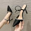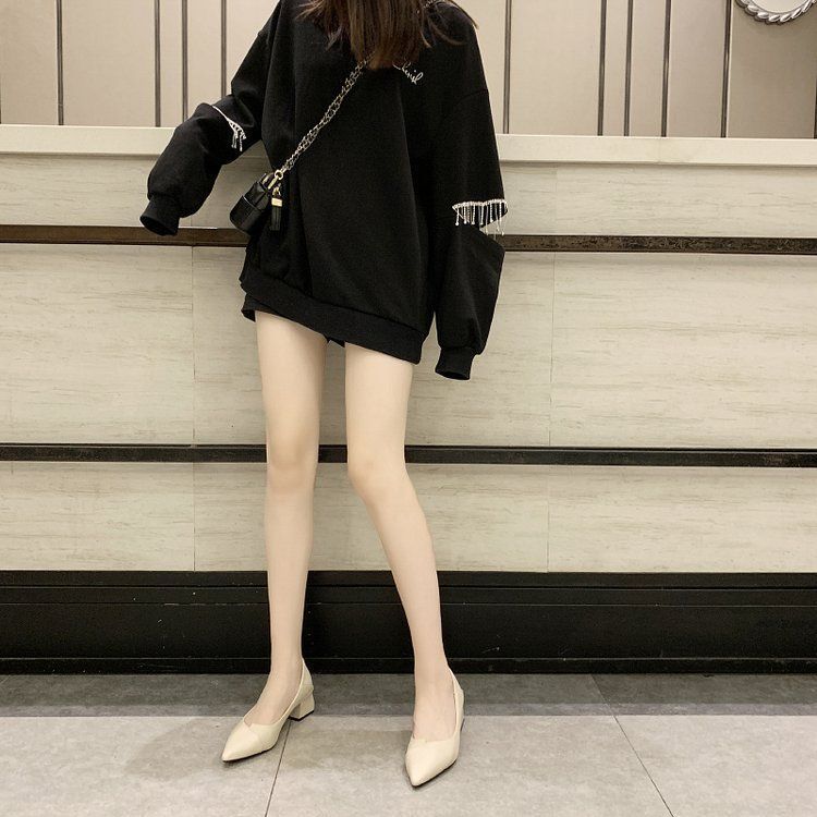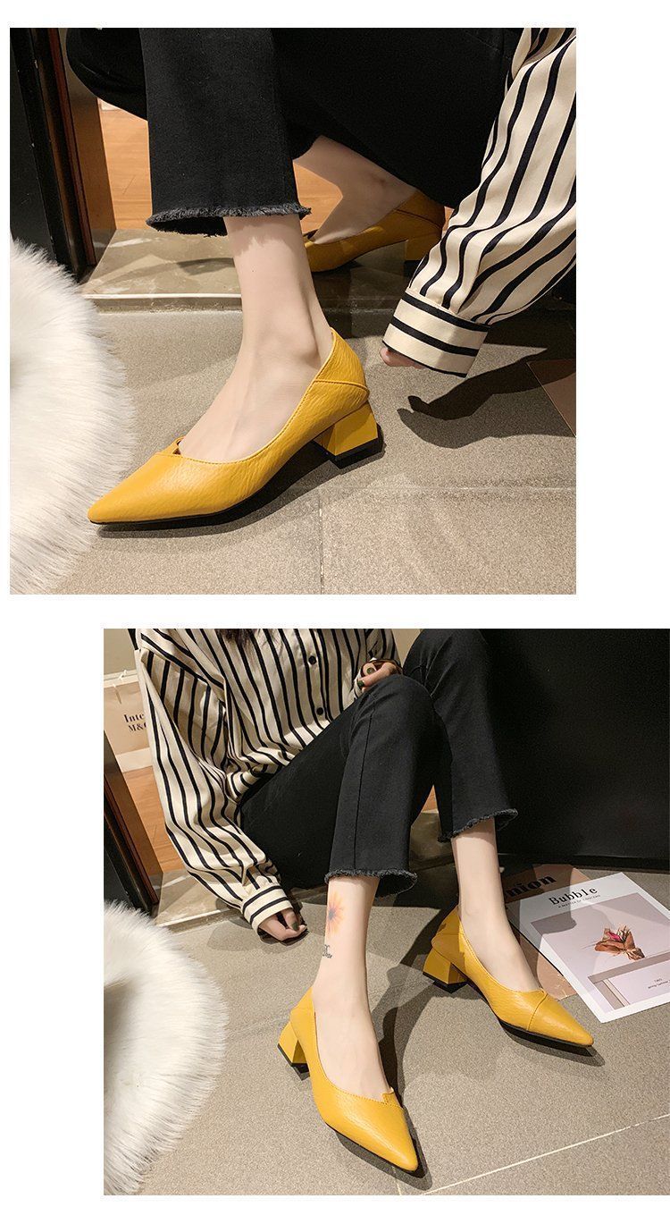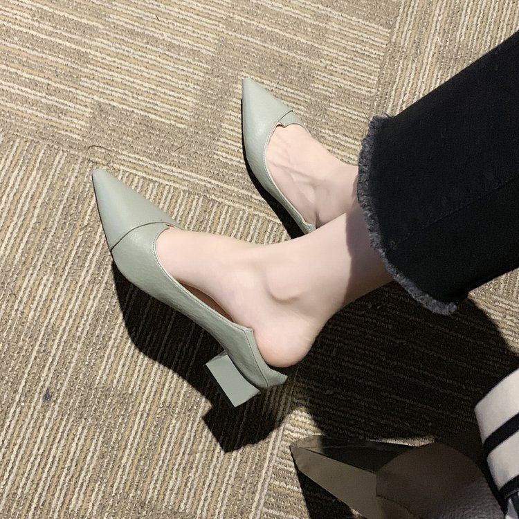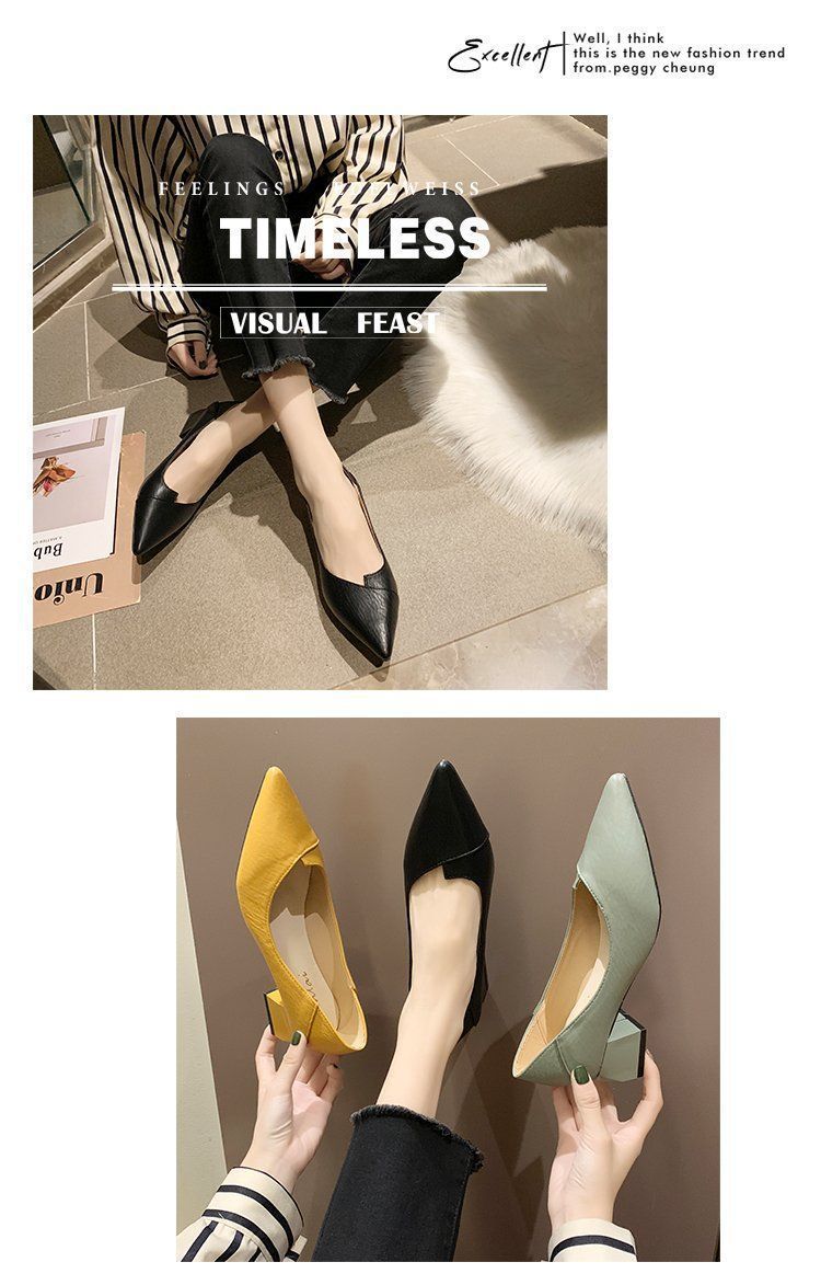 Verano Nuevo Estilo Punta Afilada Tacón Grueso Tacones Altos para Mujer 2024 Francés Color Puro Versátil Aumentando la Altura Flats Niche Zapatos Elegantes de Mujer