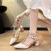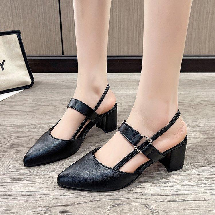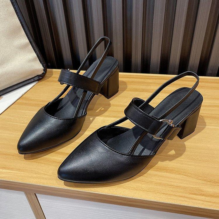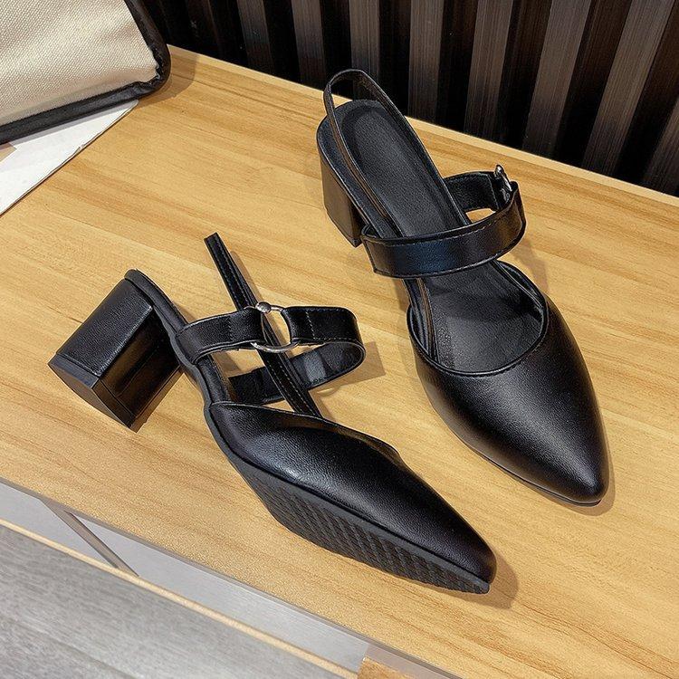 Sandalias de Tacón Alto para Mujer 2025 Nuevo Estilo Coreano Punta Afilada Hebilla de Una Línea Zapatos Gladiadores Boca Baja Tacón Grueso Zapatos de Tacón Alto