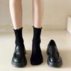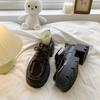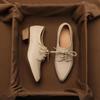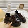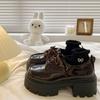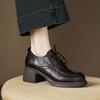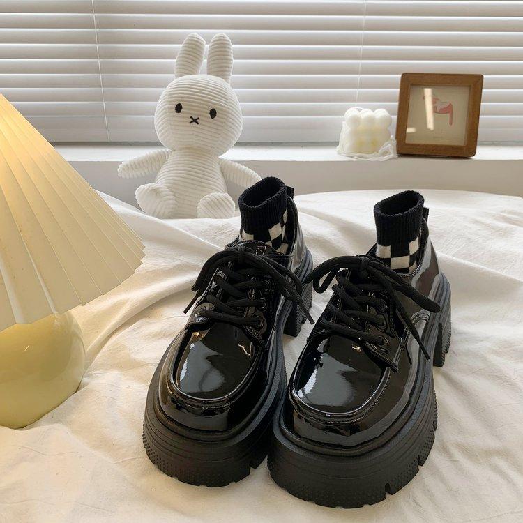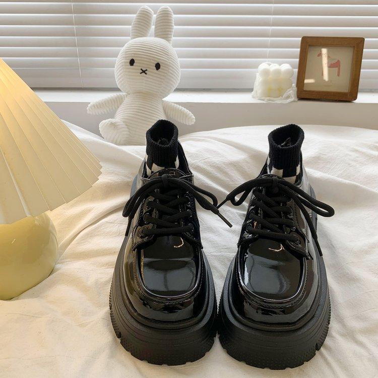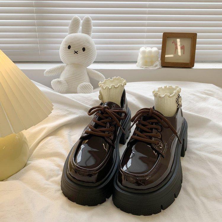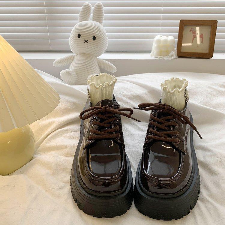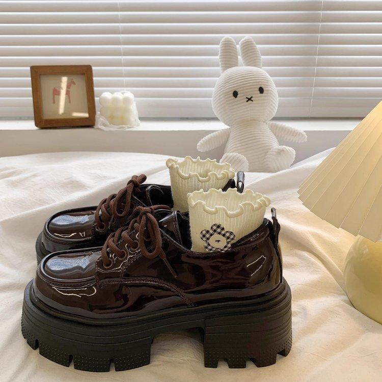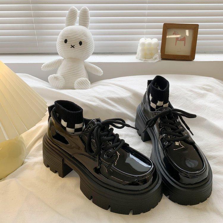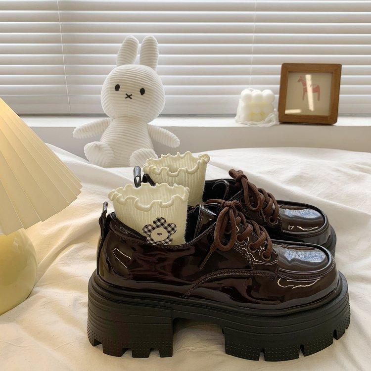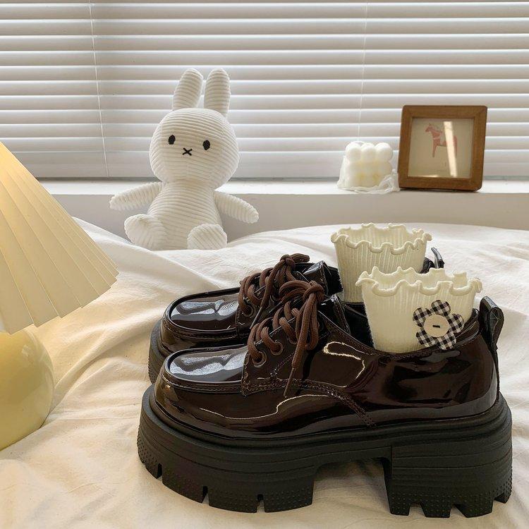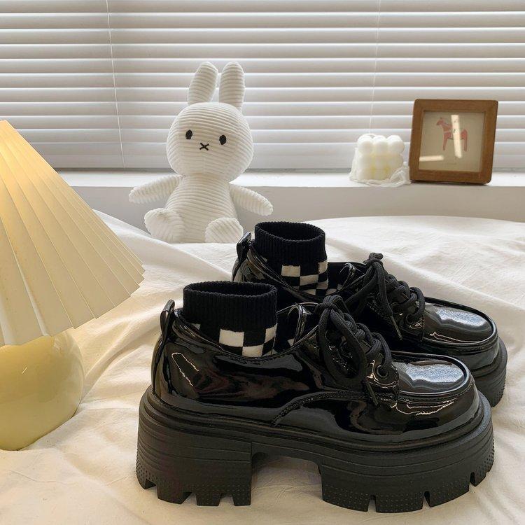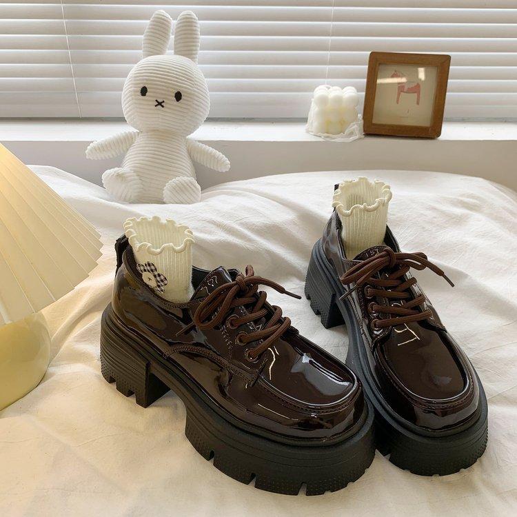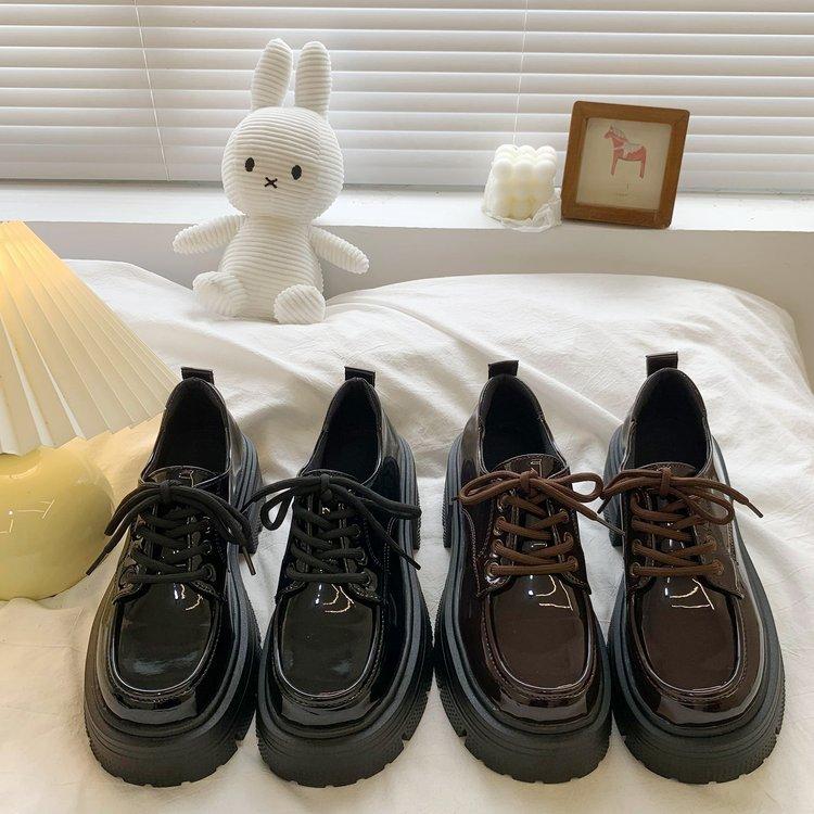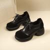 Zapatos de cuero estilo británico pequeños, mocasines de suela gruesa con aumento para mujer, primavera 2025, nuevos zapatos de charol con tacón alto redondo y cordones.