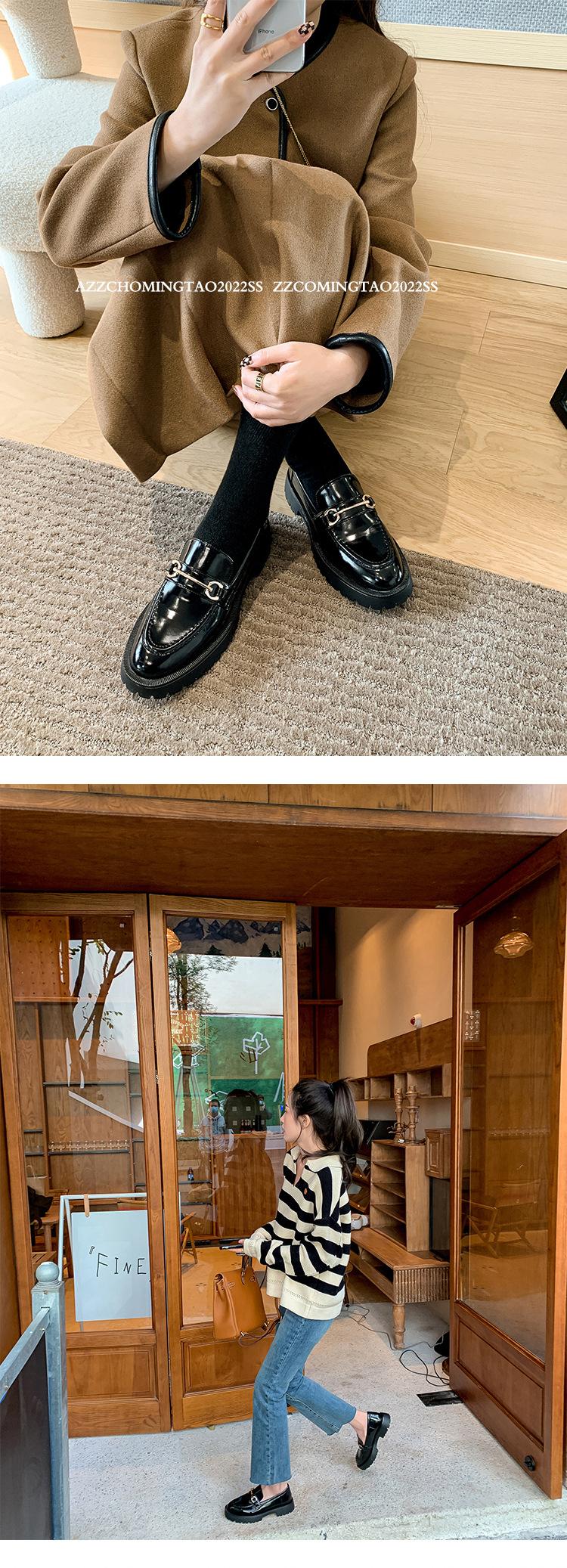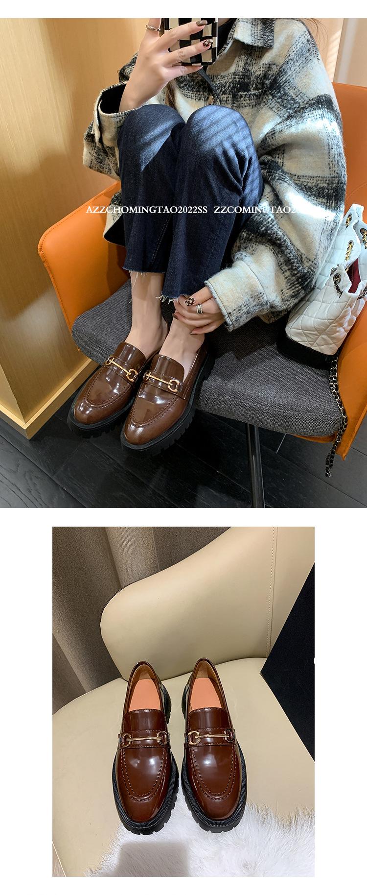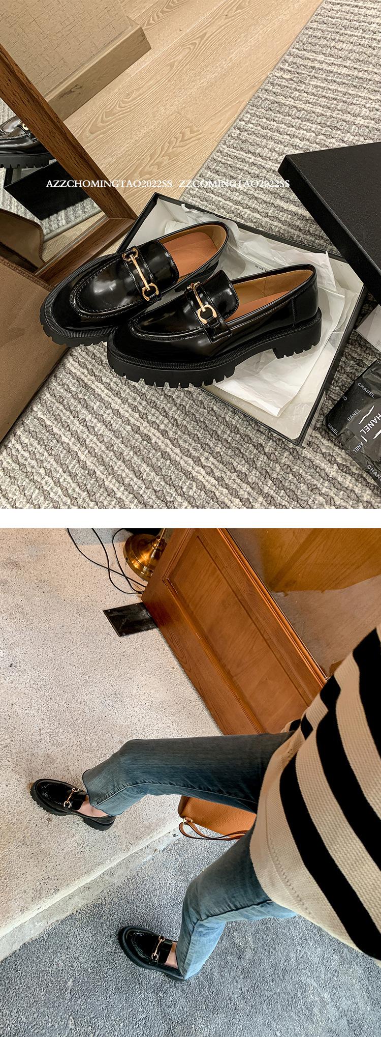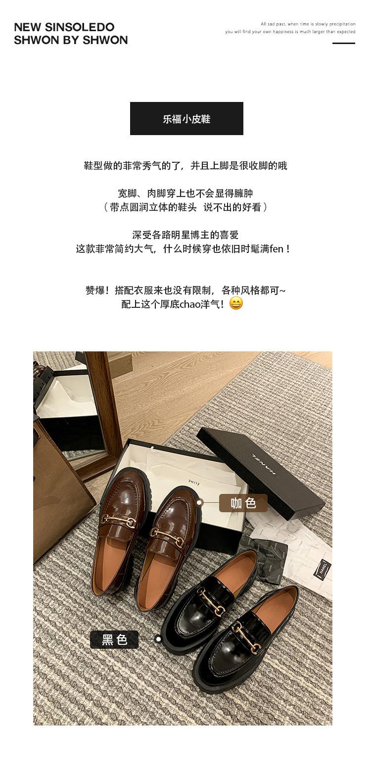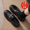 Zapatos de Cuero Pequeños Clásicos de Primavera y Otoño 2024 Hebilla Metálica Clásica Hebilla de Caballo Aumento de Altura Estilo Académico Plataforma Cómoda Zapatos de Una Capa Mocasines