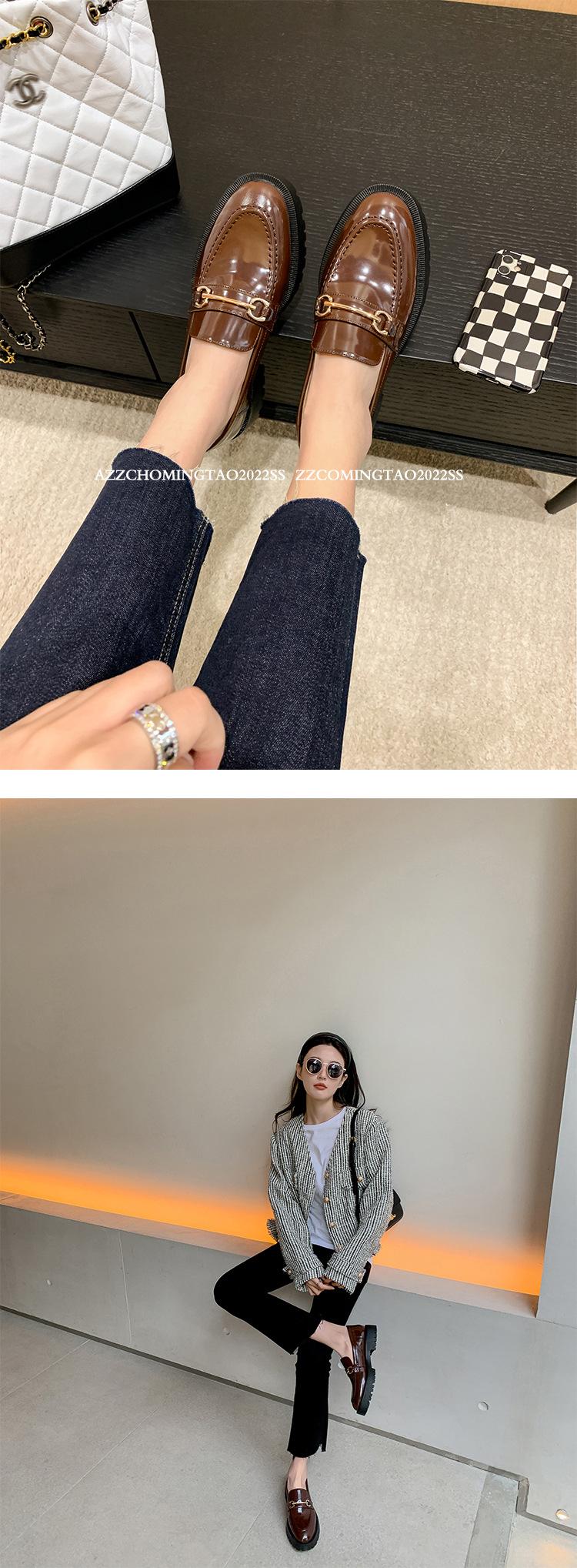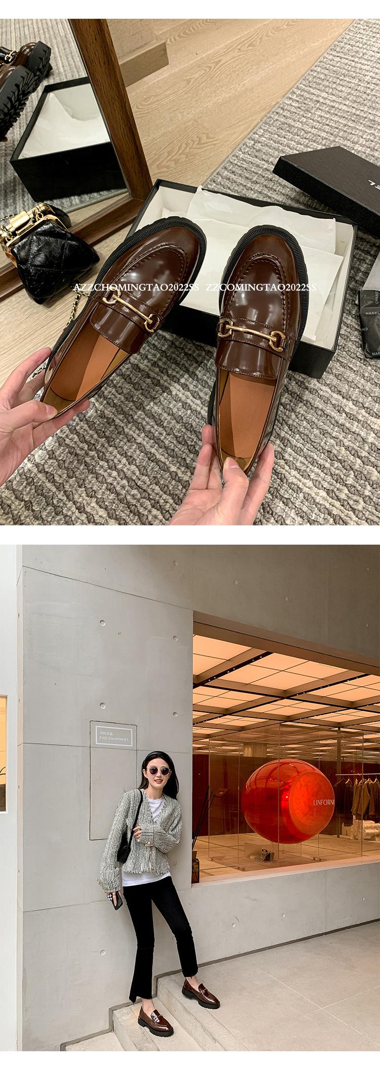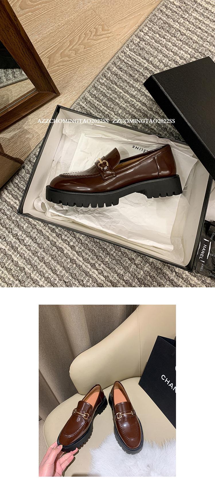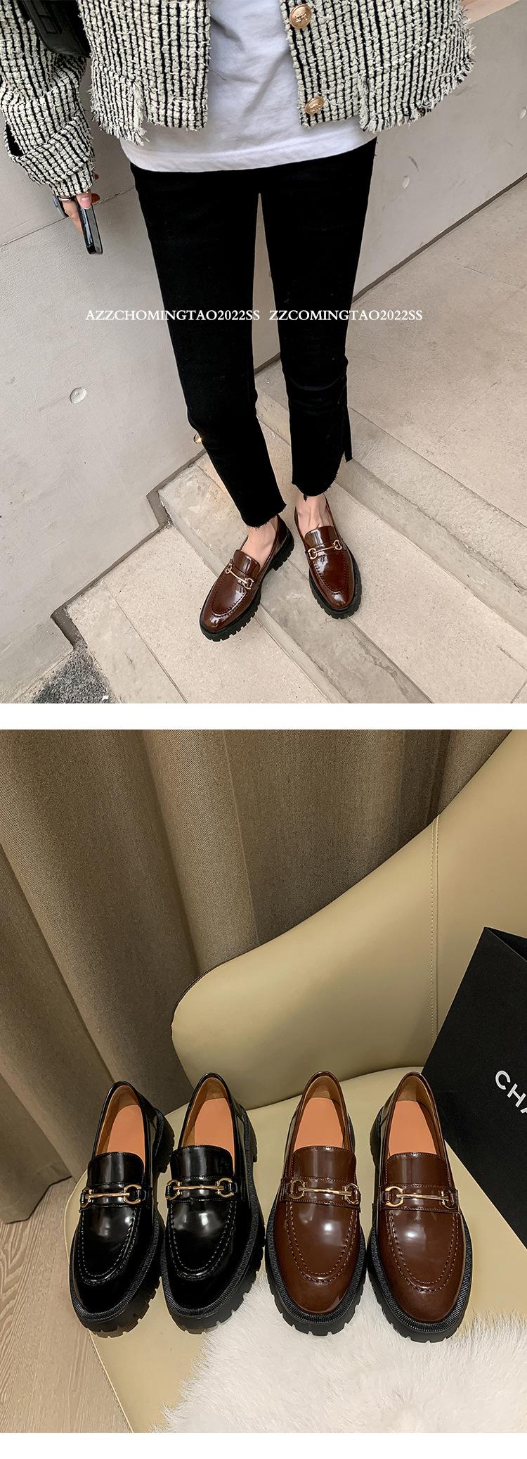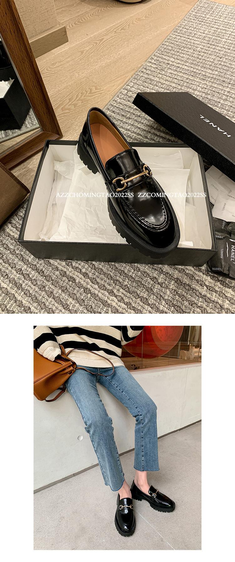 Zapatos de Cuero Pequeños Clásicos de Primavera y Otoño 2024 Hebilla Metálica Clásica Hebilla de Caballo Aumento de Altura Estilo Académico Plataforma Cómoda Zapatos de Una Capa Mocasines
