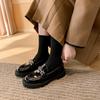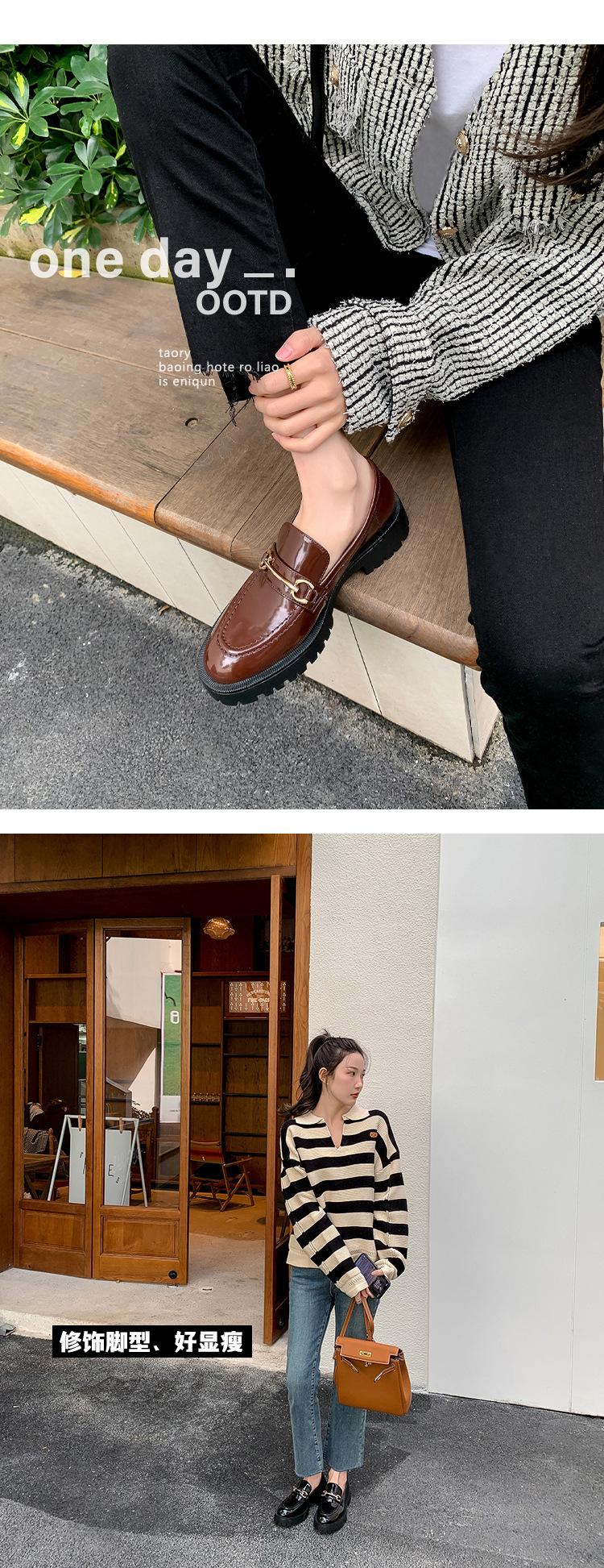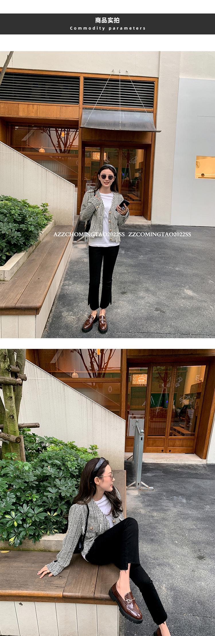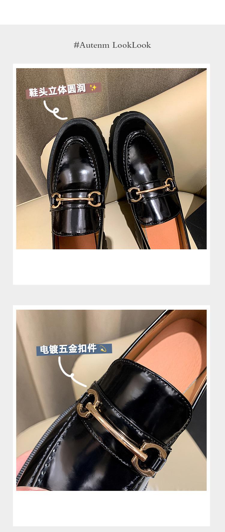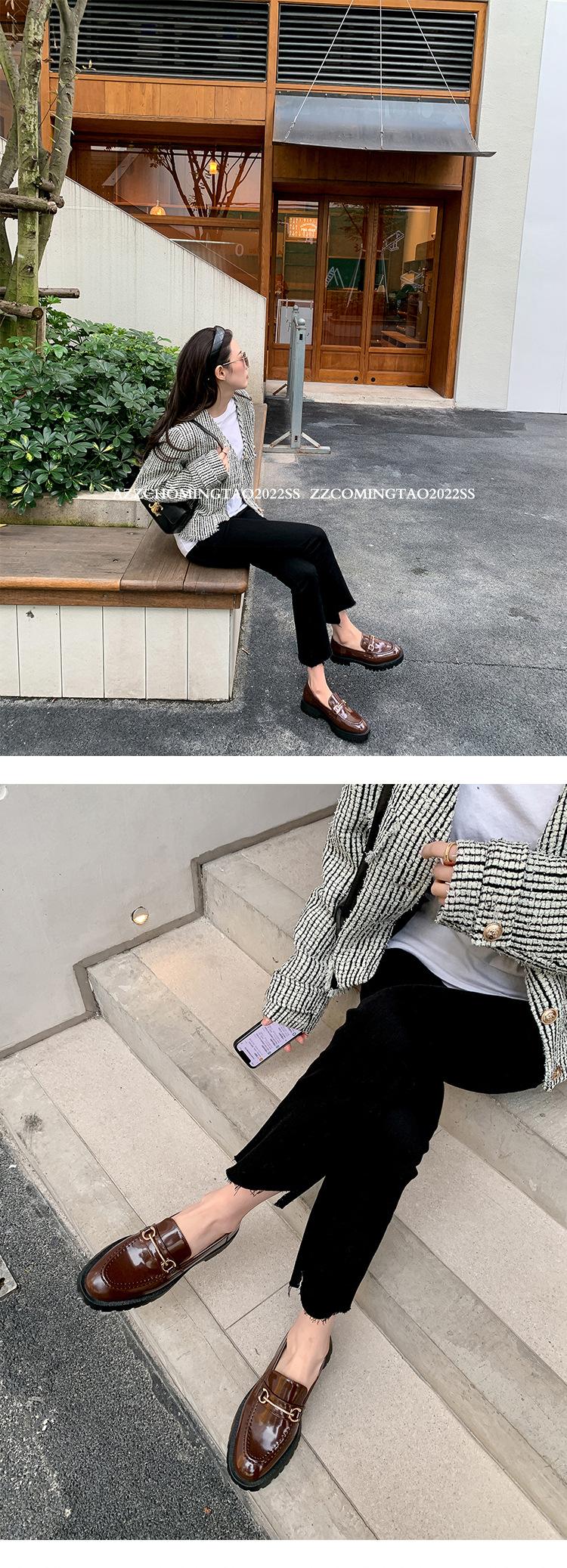 Zapatos de Cuero Pequeños Clásicos de Primavera y Otoño 2024 Hebilla Metálica Clásica Hebilla de Caballo Aumento de Altura Estilo Académico Plataforma Cómoda Zapatos de Una Capa Mocasines