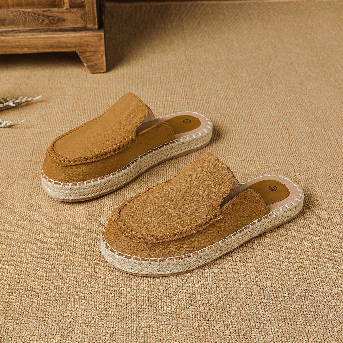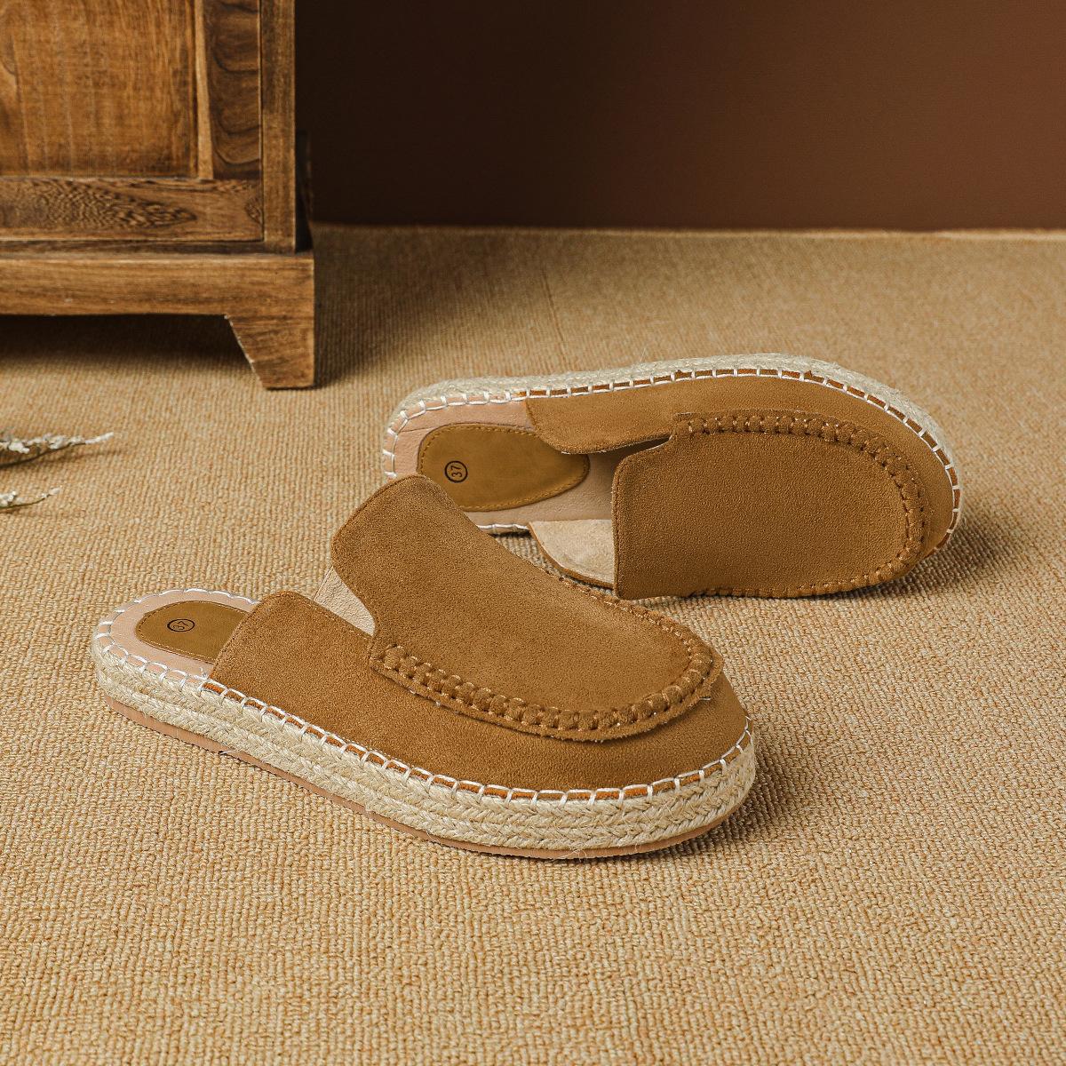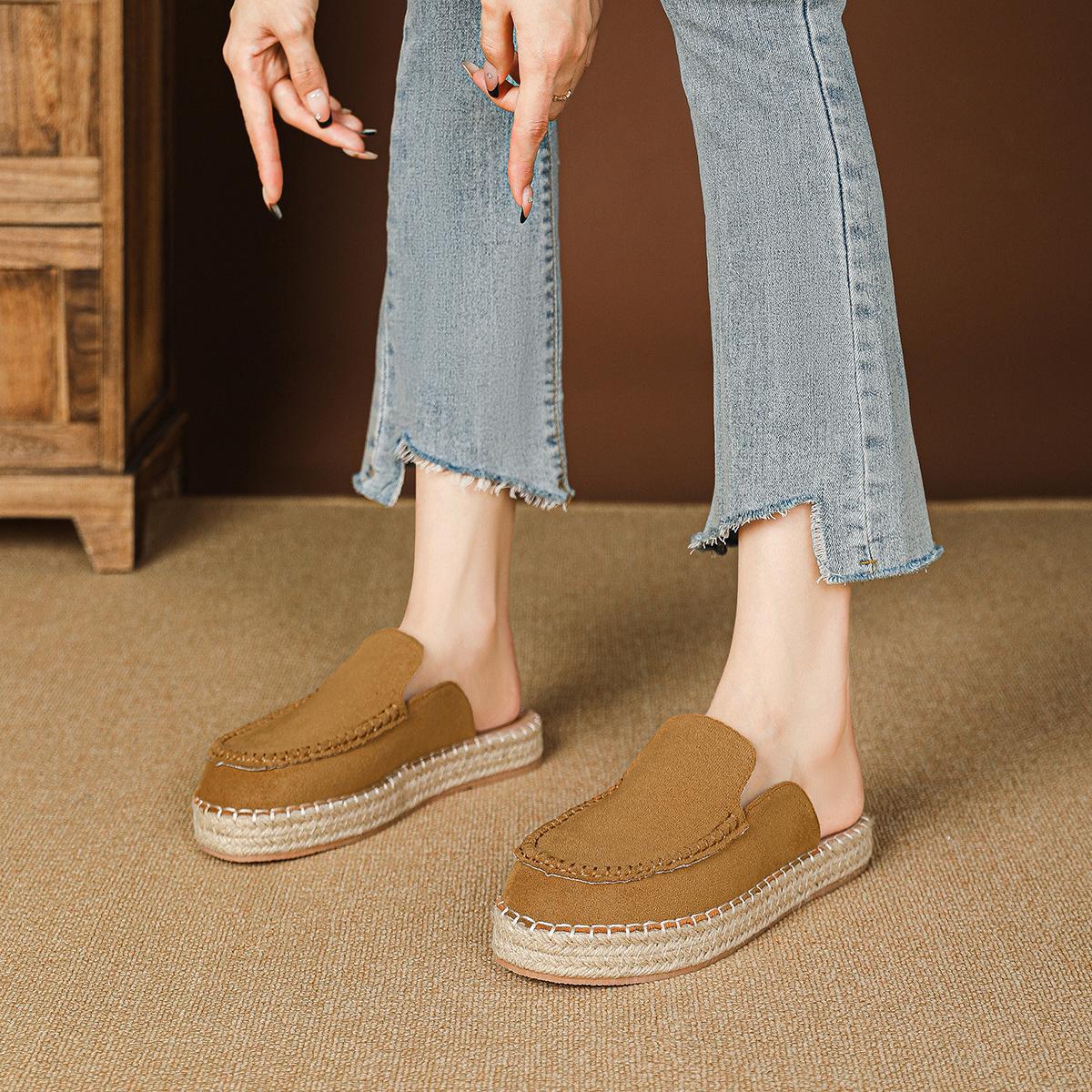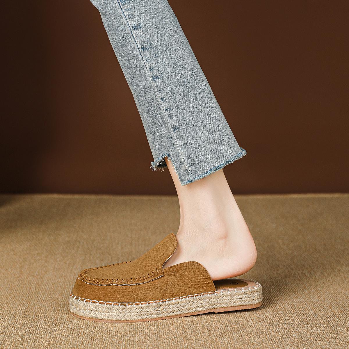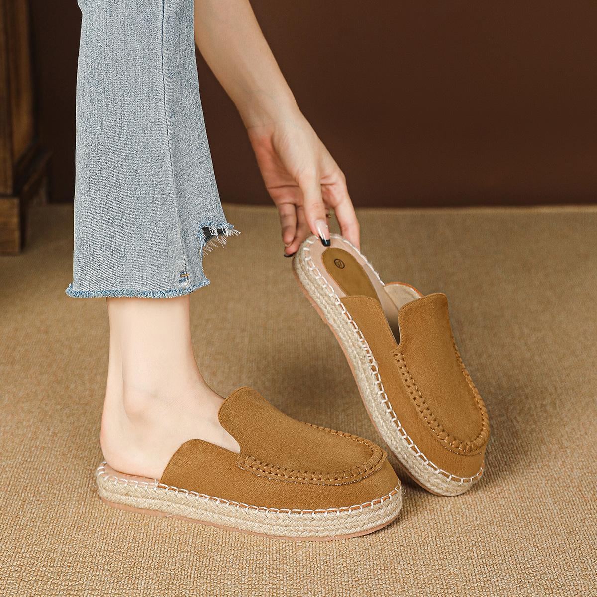 Zapatos de pescador de suela plana transfronterizos para mujer, casuales y de moda, sin cordones, de punta redonda, holgazanes, de cuerda de cáñamo, de suela gruesa, sandalias sin espalda, cómodos