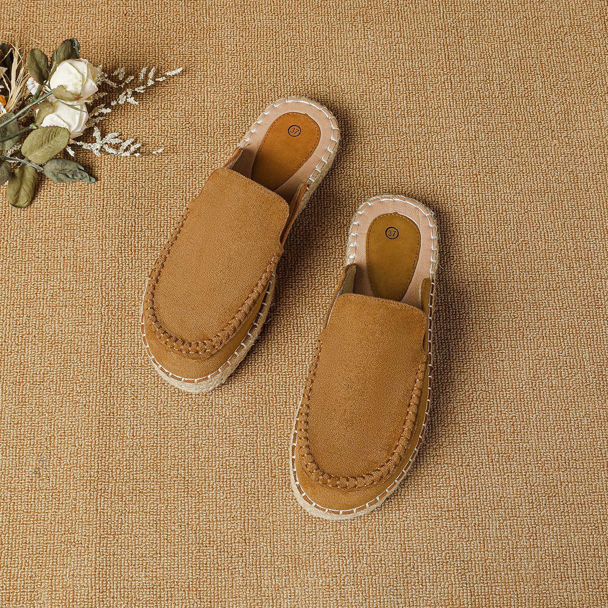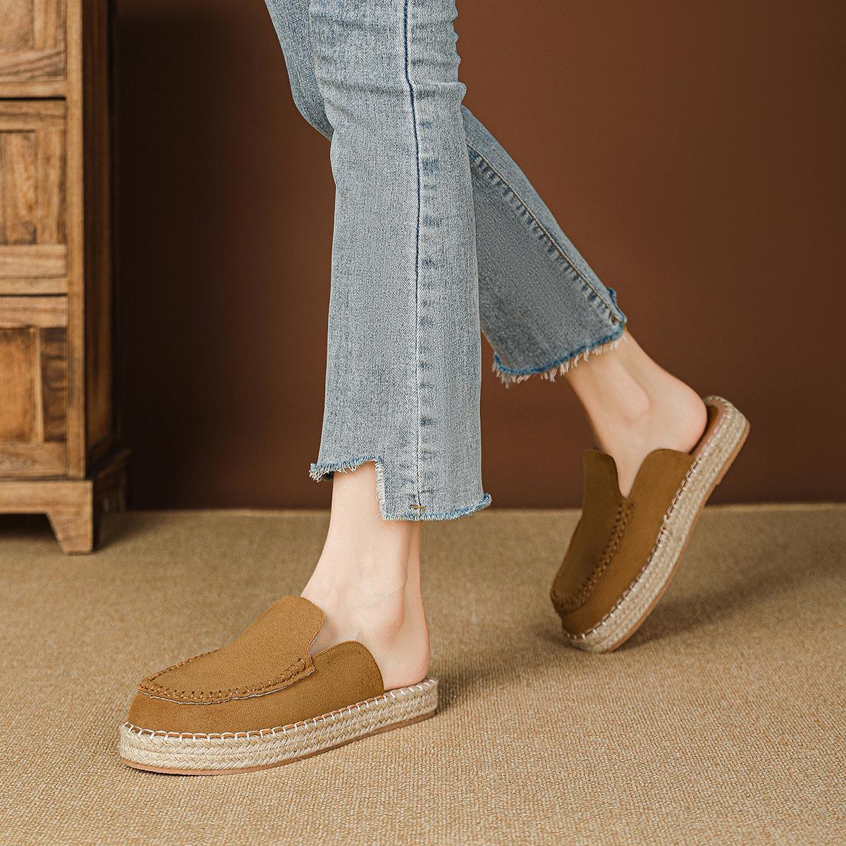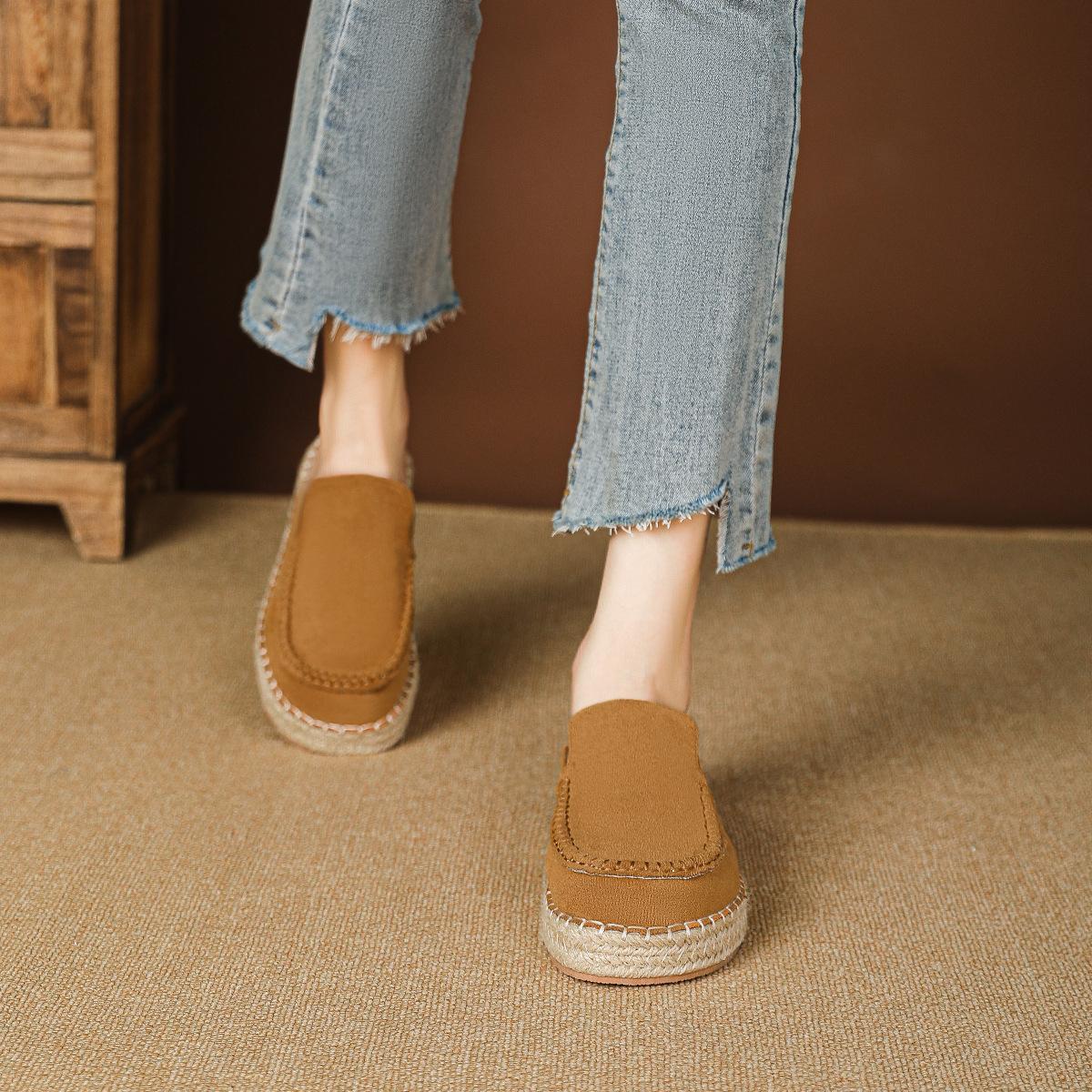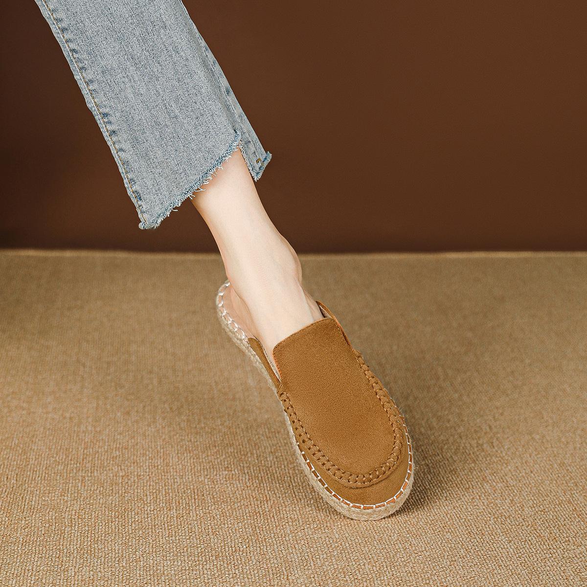 Zapatos de pescador de suela plana transfronterizos para mujer, casuales y de moda, sin cordones, de punta redonda, holgazanes, de cuerda de cáñamo, de suela gruesa, sandalias sin espalda, cómodos