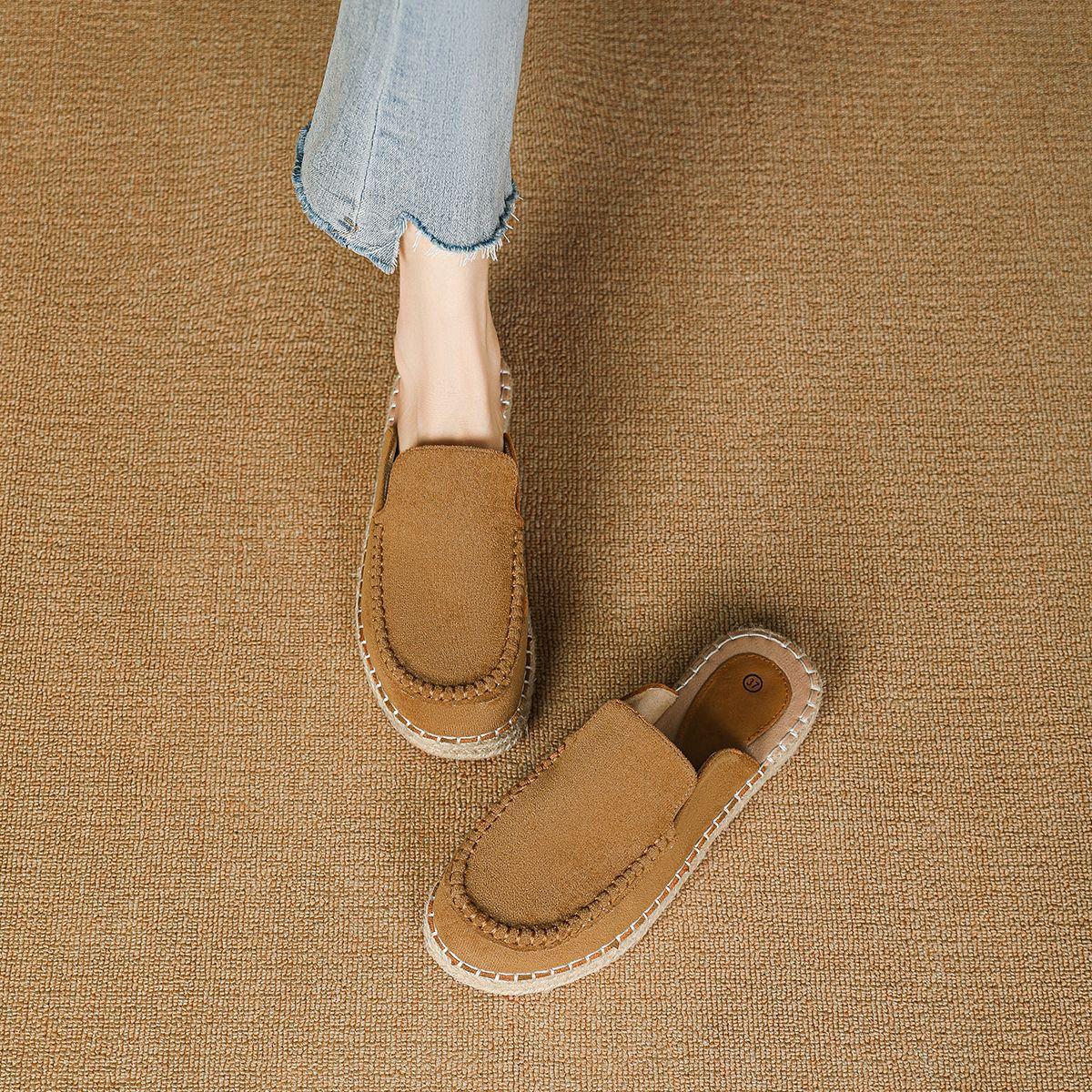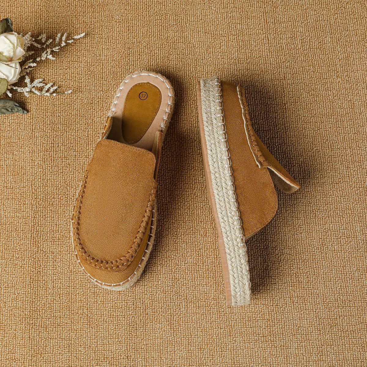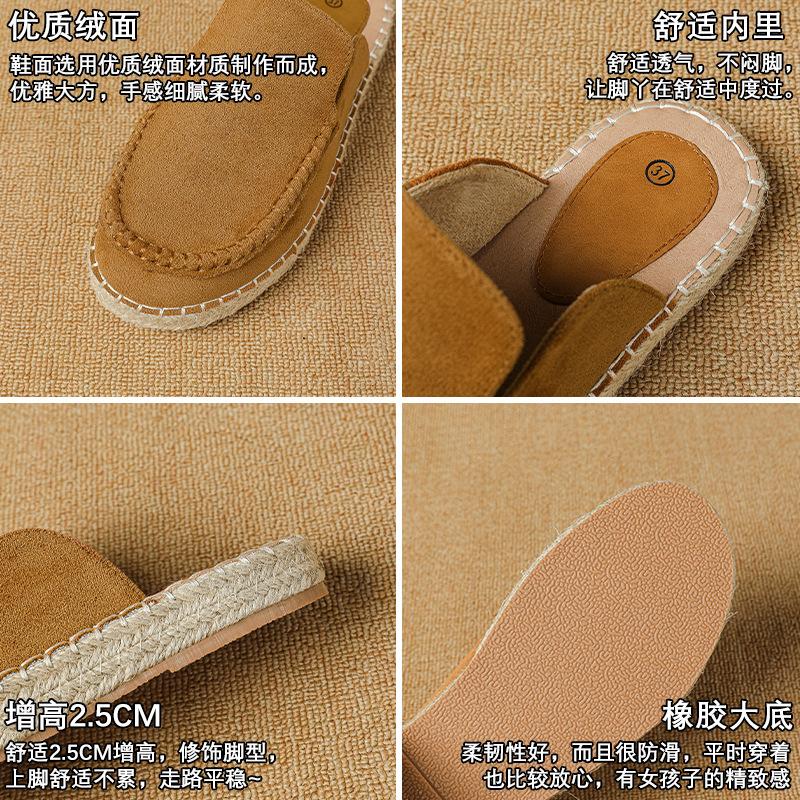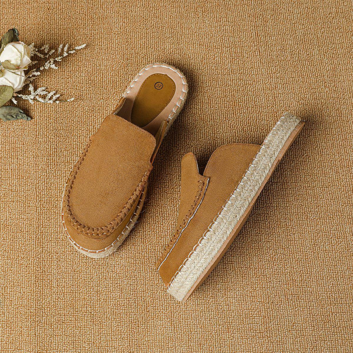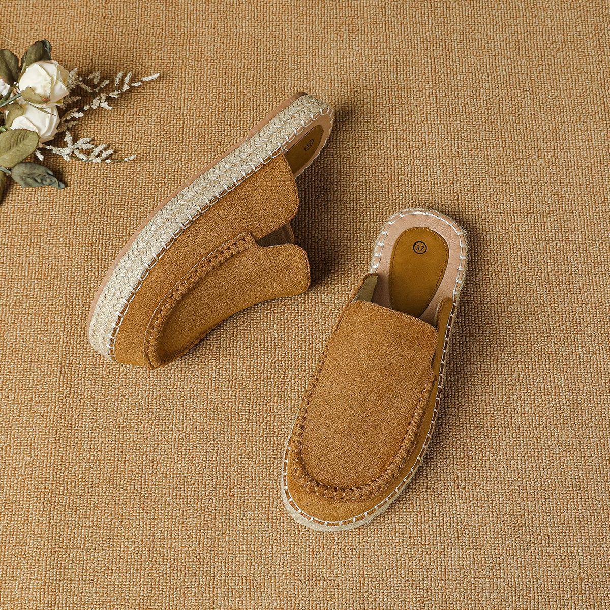 Zapatos de pescador de suela plana transfronterizos para mujer, casuales y de moda, sin cordones, de punta redonda, holgazanes, de cuerda de cáñamo, de suela gruesa, sandalias sin espalda, cómodos