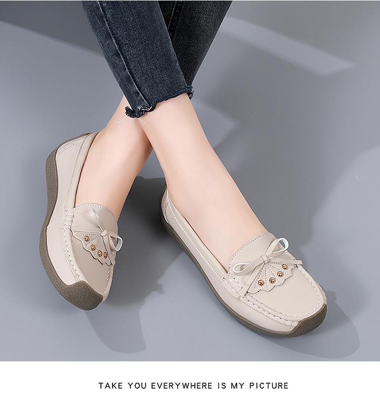 Zapatos de Mujer Transfronterizos 2025 Nuevos Zapatos Planos de Caracol Combinan con Todo Suela Suave Zapatos de Madre Casuales Slip-on Zapatos Perezosos
