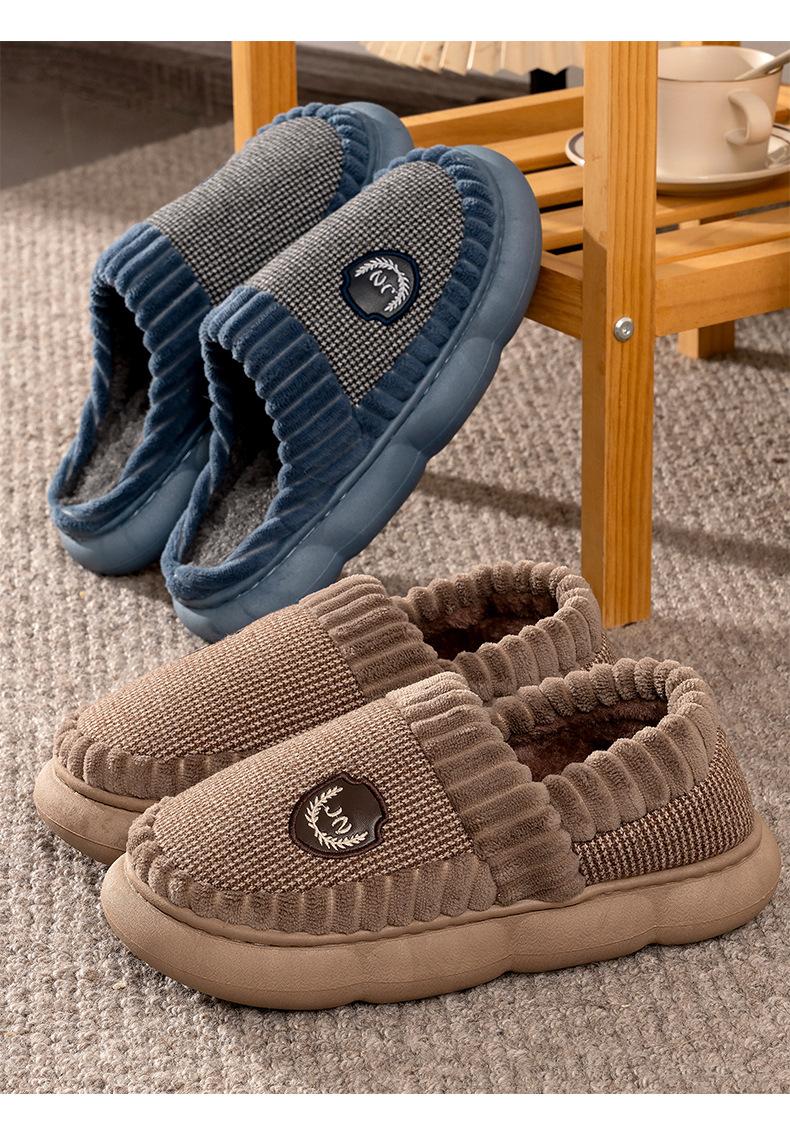 Pantuflas de algodón para hombre otoño e invierno talla extra grande para casa hogar interior y exterior antideslizantes silenciosas suela gruesa sin cordones zapatos de algodón para mujer