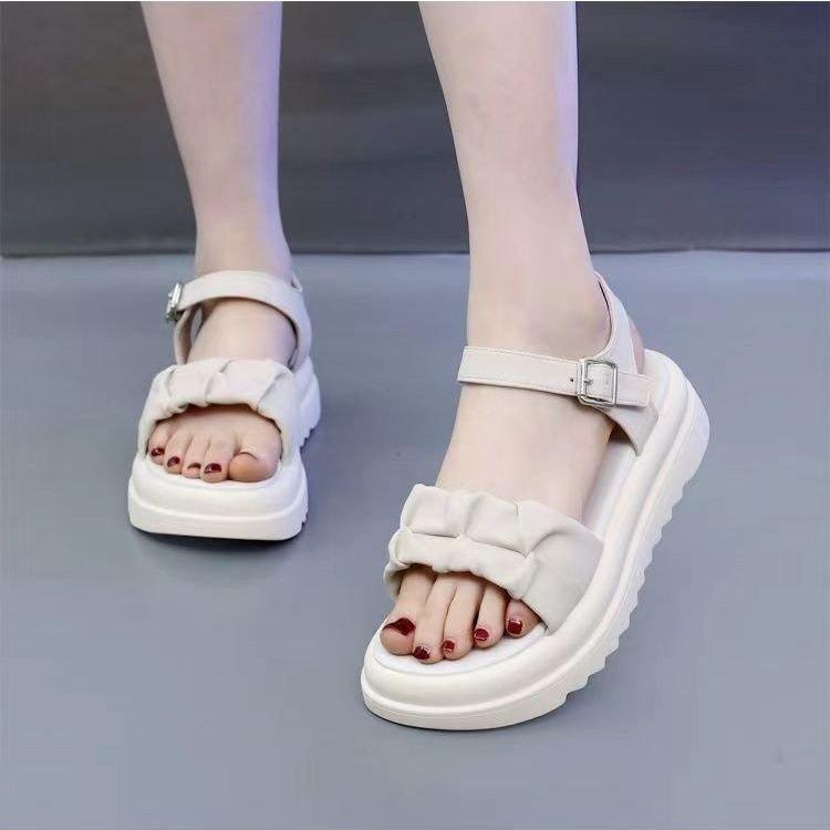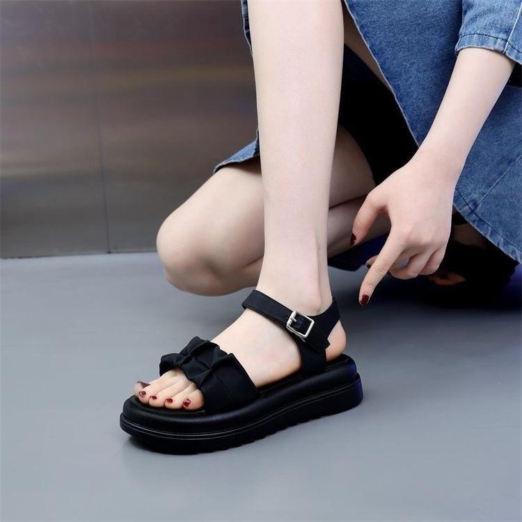 Sandalias de mujer para exteriores, novedad de verano 2025, zapatos de playa de suela blanda, sandalias planas para estudiantes, sandalias romanas de suela gruesa para mujer.