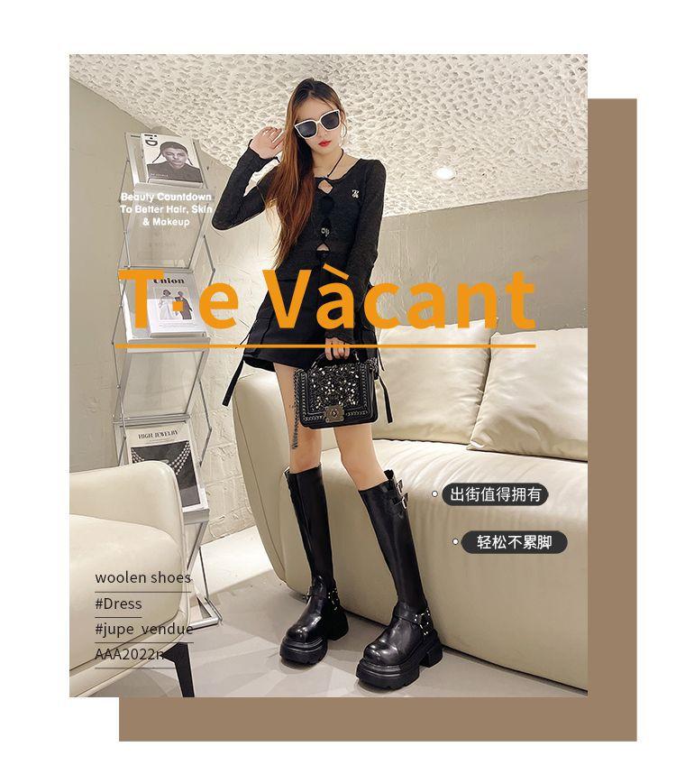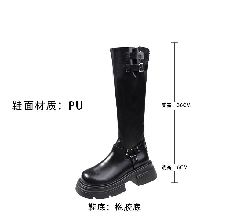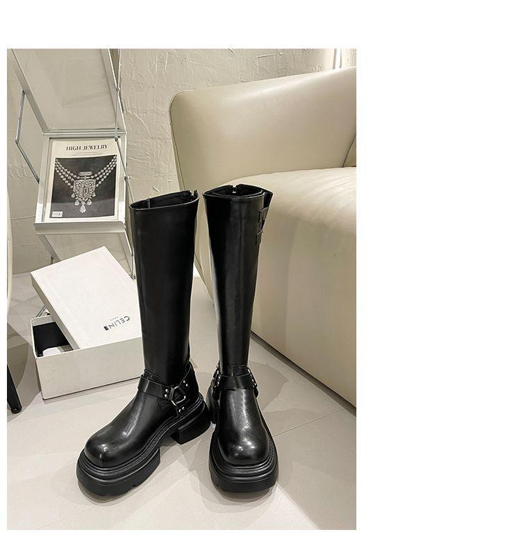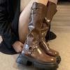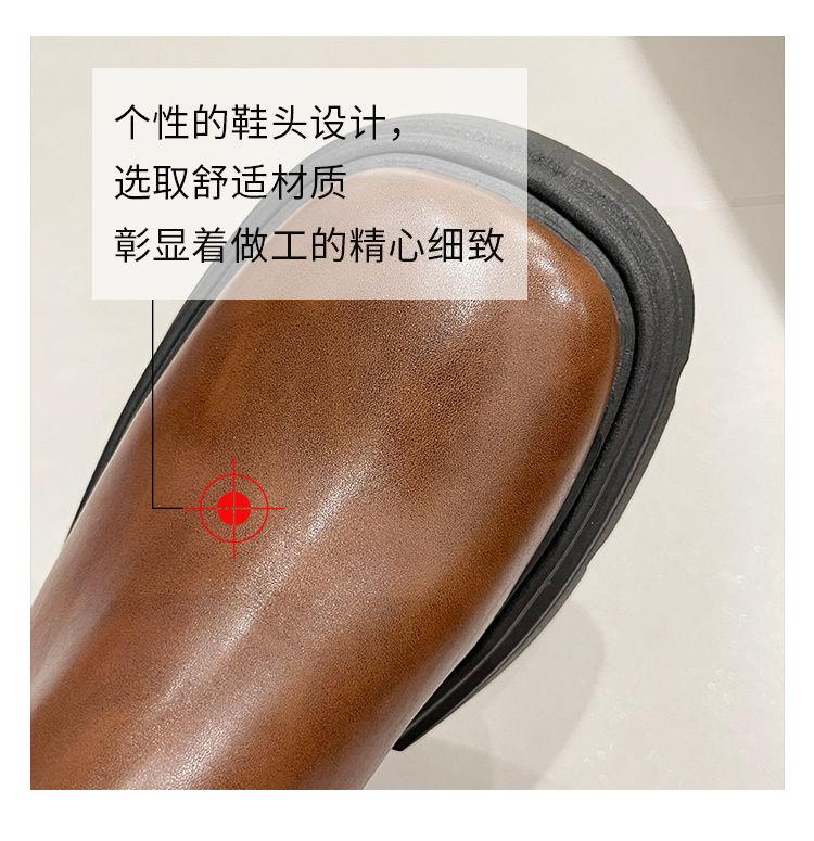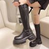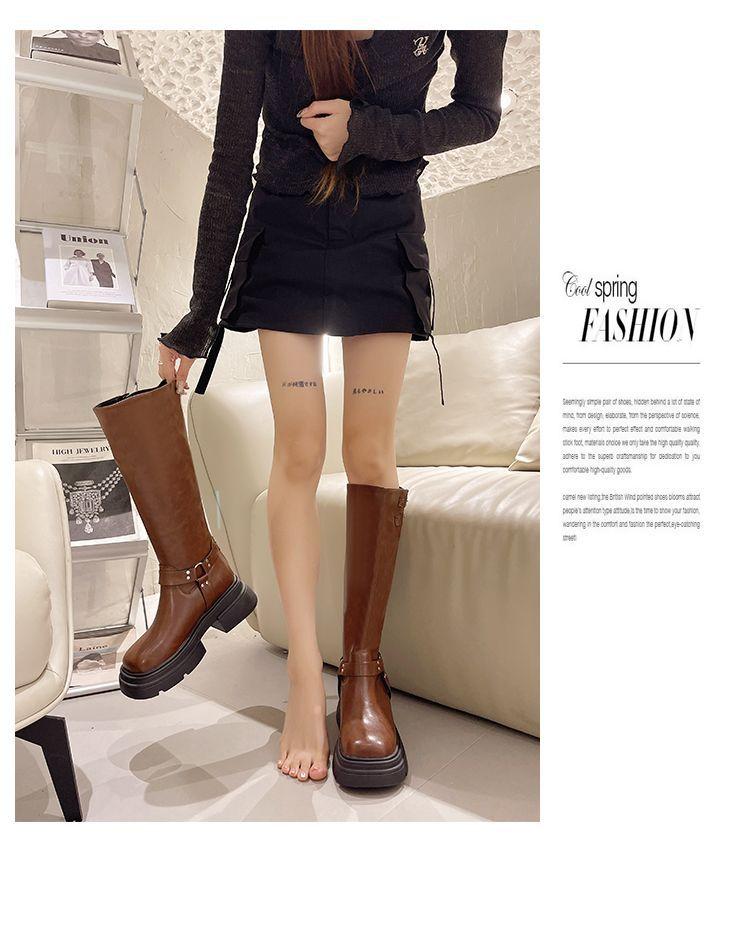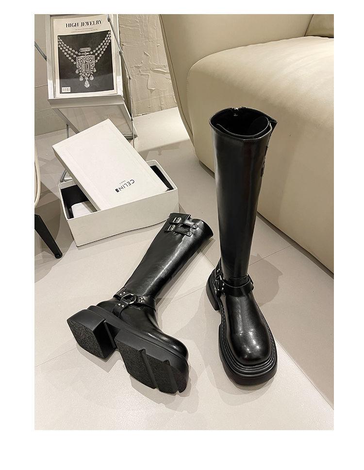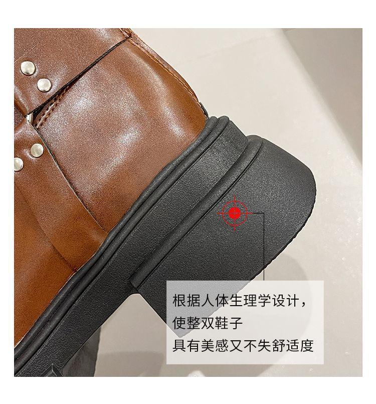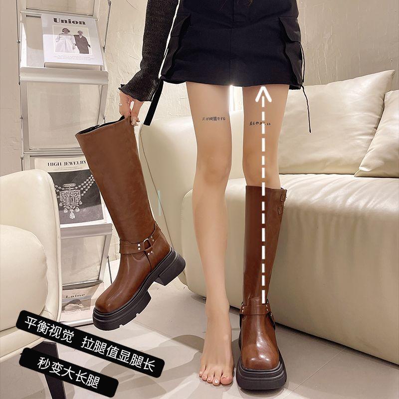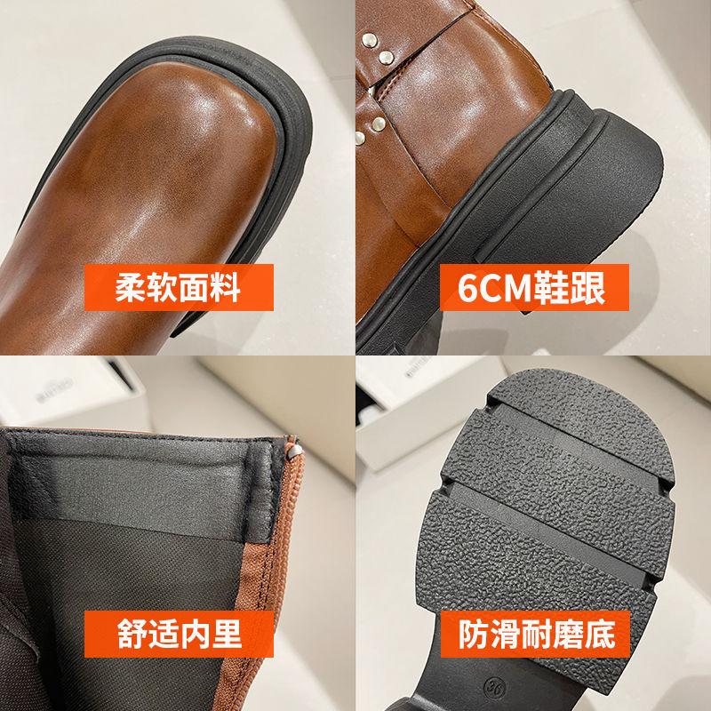 Botas Altas de Caballero para Mujer 2024 Otoño e Invierno Nuevas Botas Antideslizantes de Color Sólido para Celebridad Cibernética Tacón Grueso Punta Redonda Retro Cómodas Botas de Mujer