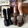 Botas de caballero estilo hada francesa con hebilla de cinturón y diseño de dos piezas, nuevas botas vaqueras altas de gamuza, 2024