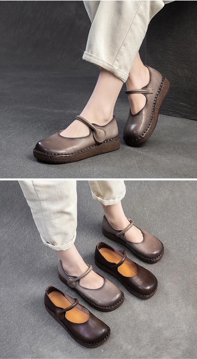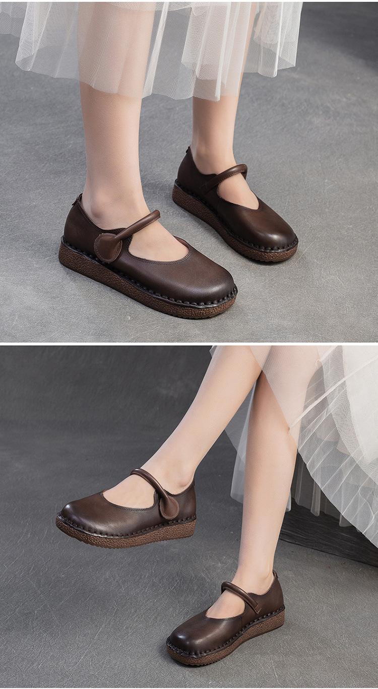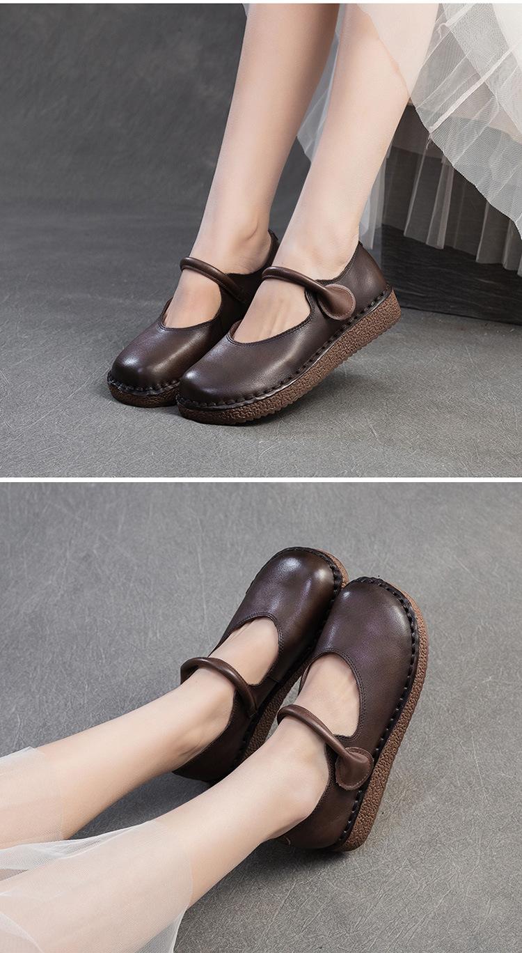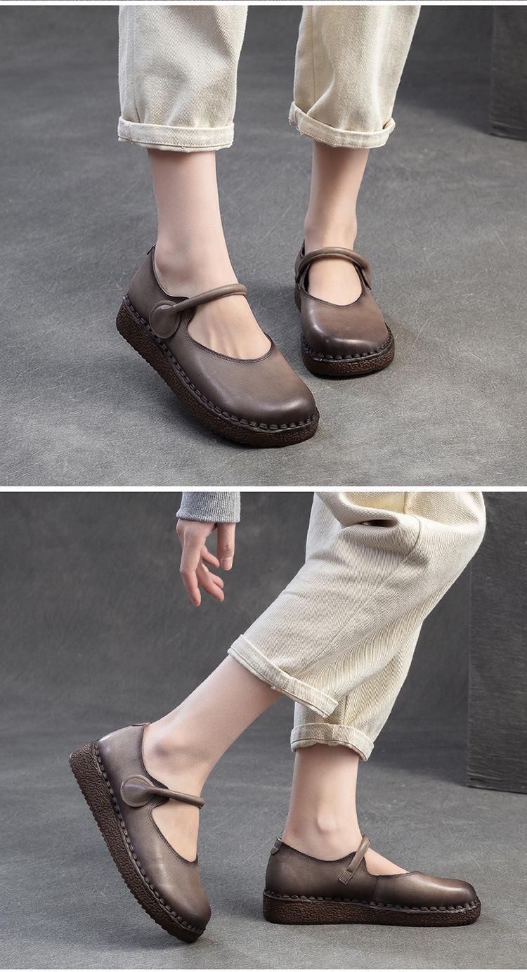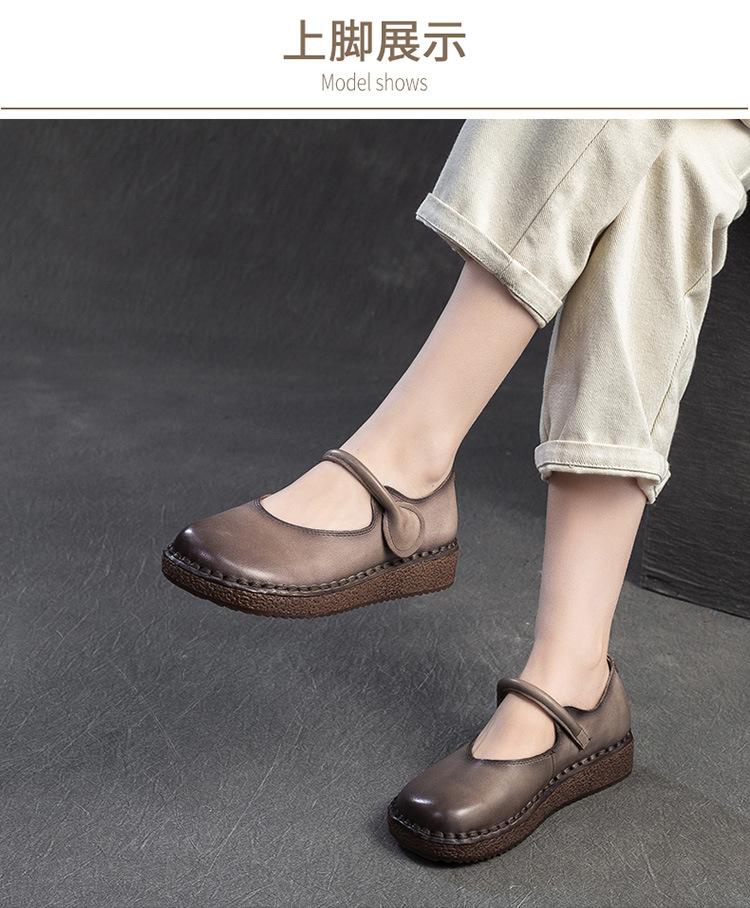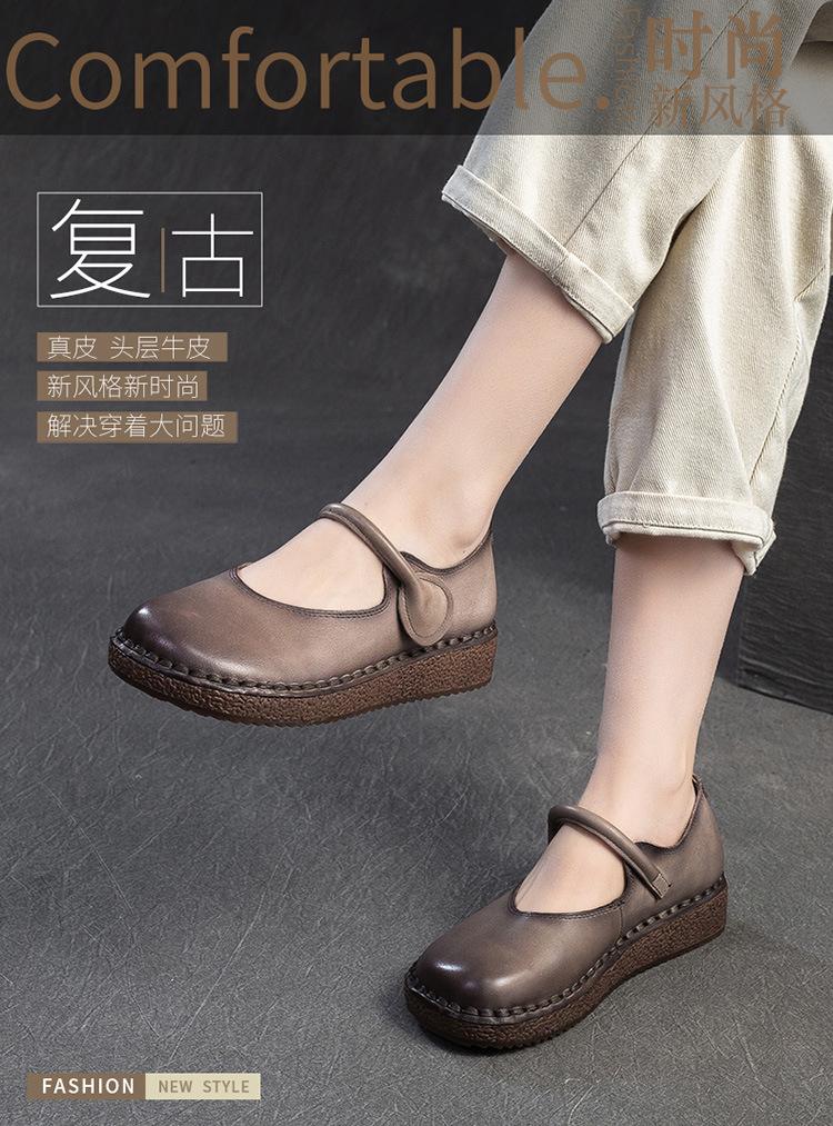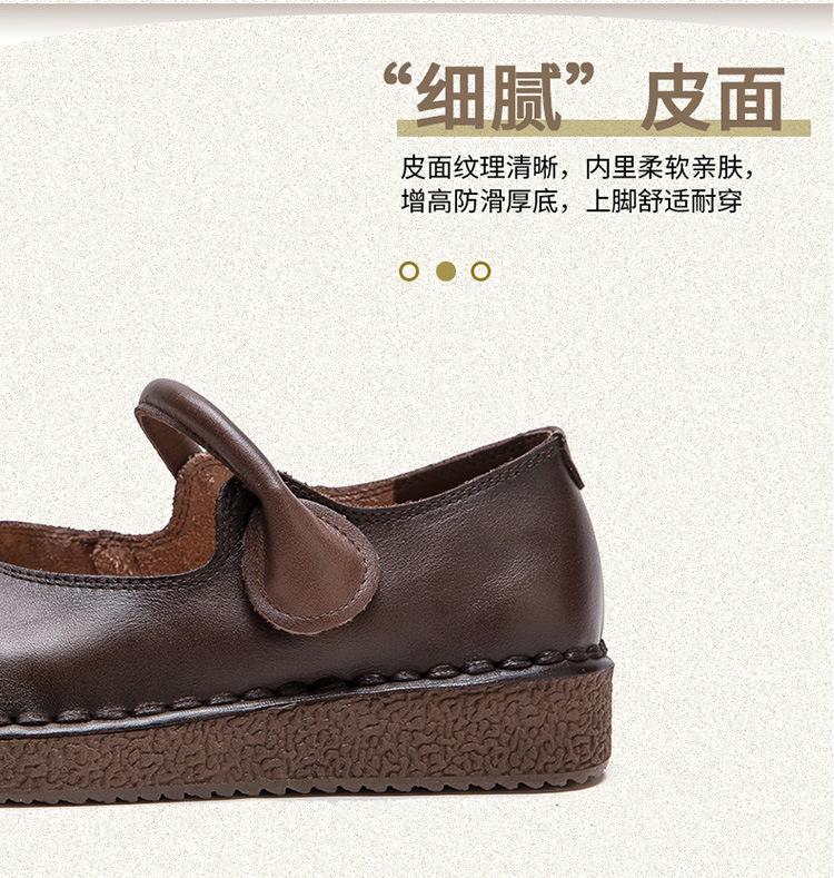 Zapatos de Mujer Shanghai Jiejie 2025 Primavera y Verano Nuevos de Suela Blanda y Superficie Suave Retro de Una Capa Cómodos Ligeros Velcro Para Desplazamiento