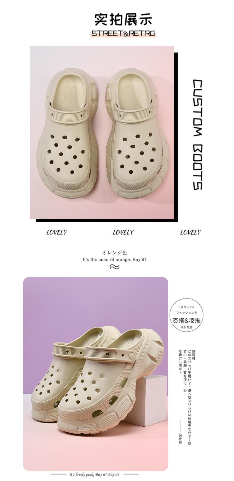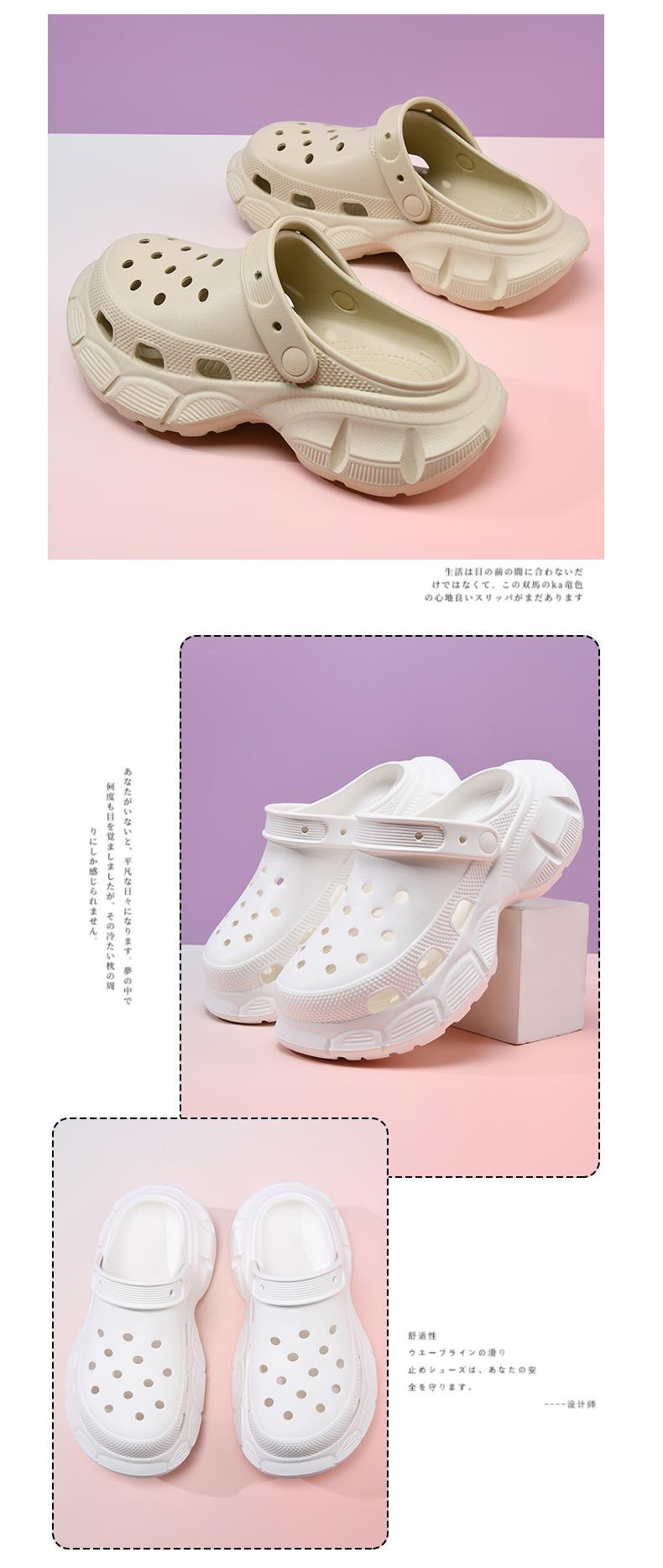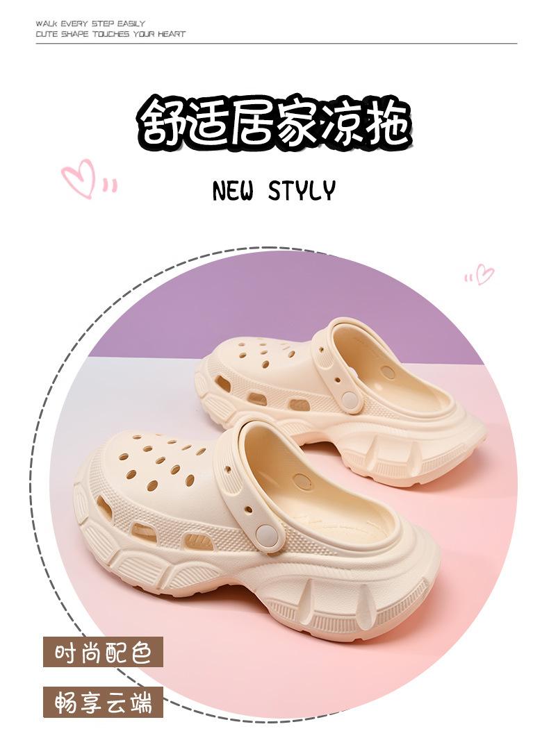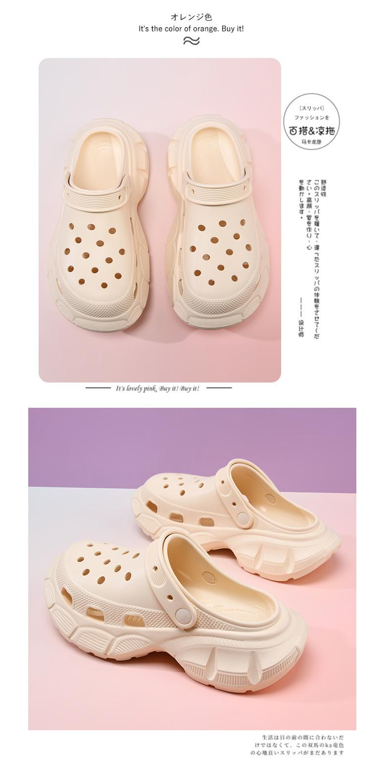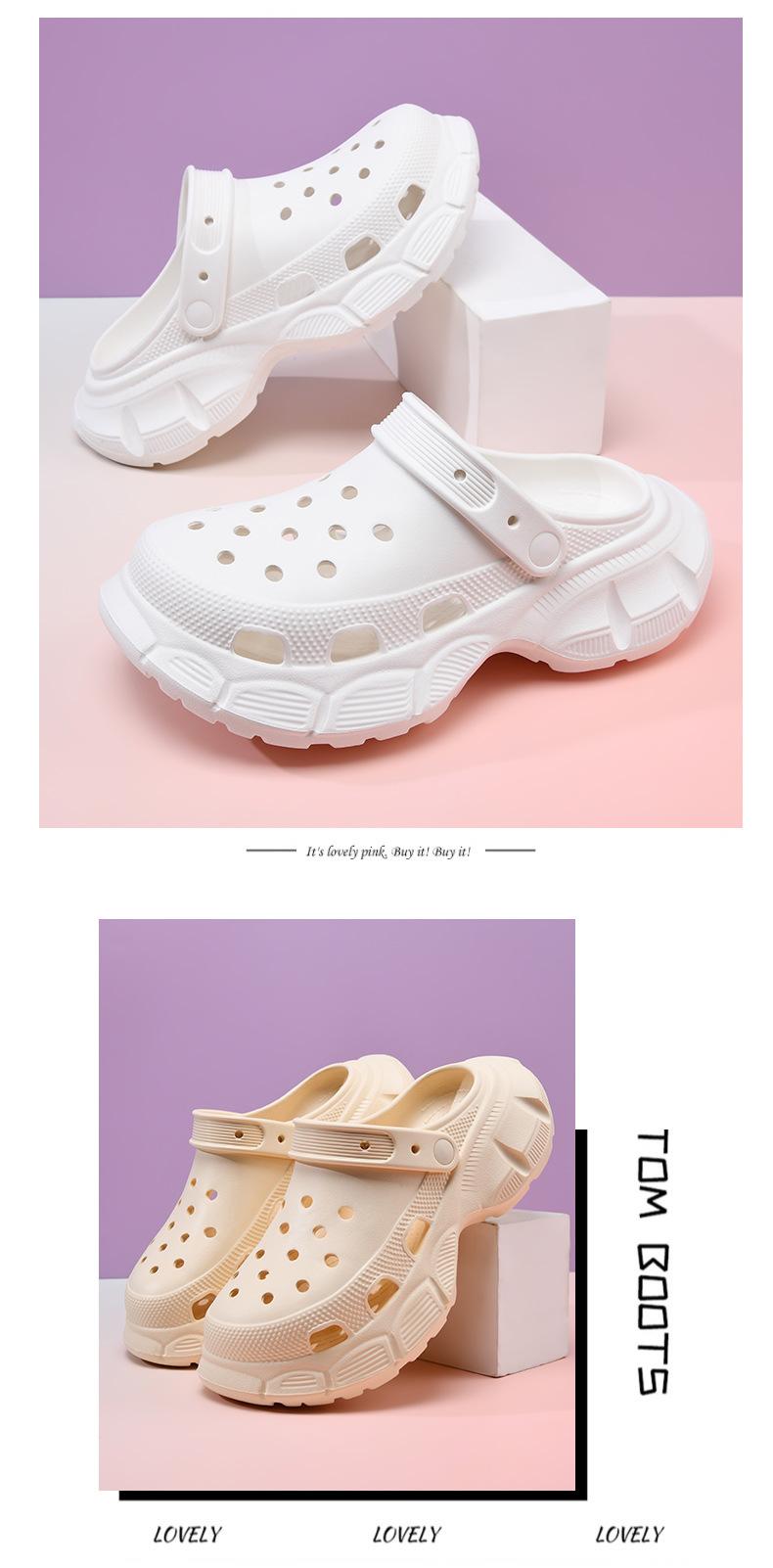 Zapatos de suela gruesa con agujeros para mujer, nuevas zapatillas de verano para exteriores con aumento de altura, resistentes al desgaste, antideslizantes, transpirables, para playa, con desodorante y puntera.
