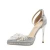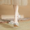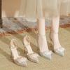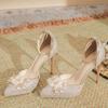 Primavera y Otoño 2025 Nuevos Zapatos de Tacón Alto de Aguja con Lazo y Cristal de Punta para Mujer Zapatos de Dama de Honor con Correa Flores Blancas