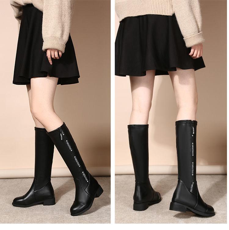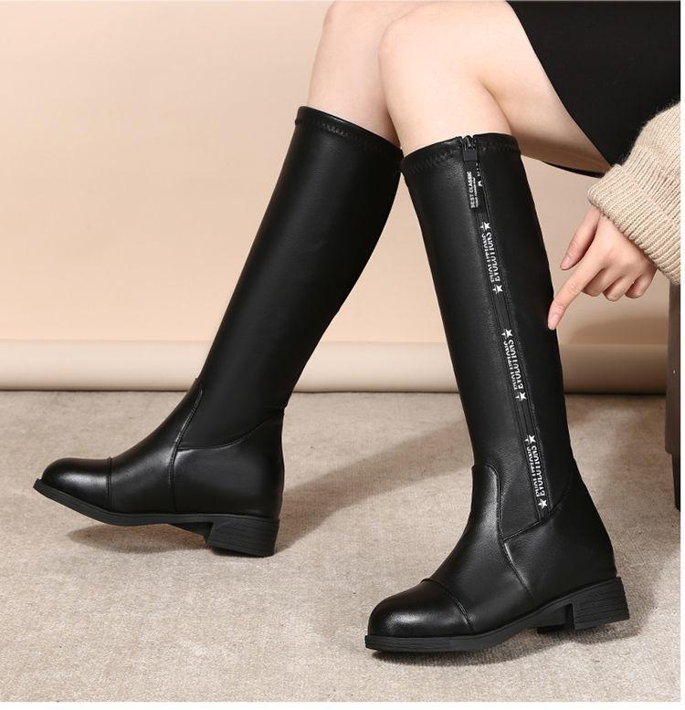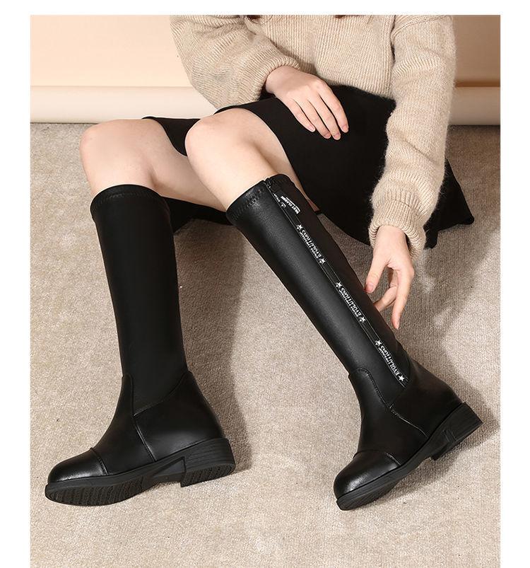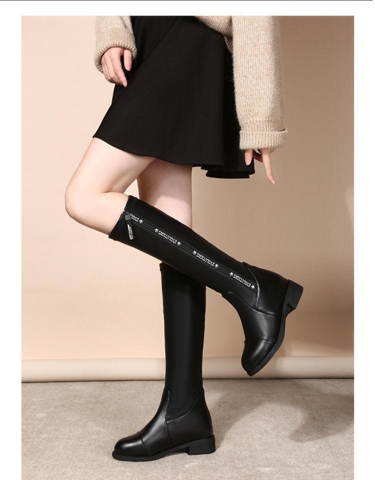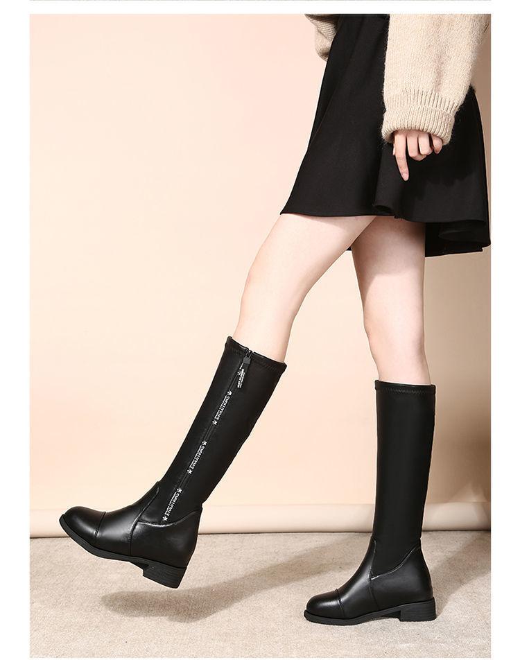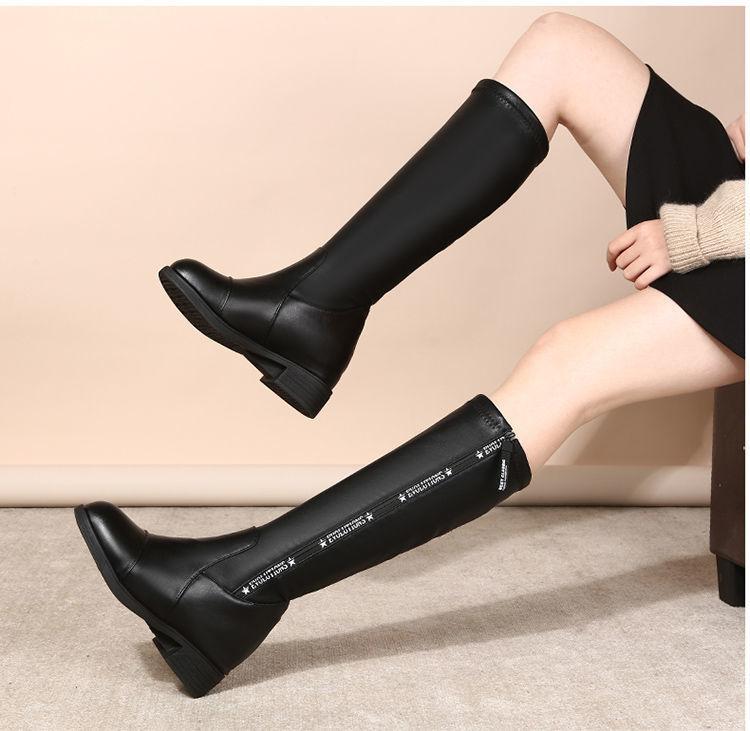 Botas de Caballero de Cuero Suave Real Botas Largas Botas Finas para Mujer Otoño e Invierno Estilo Coreano Combinan con Todo Botas Altas