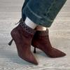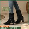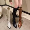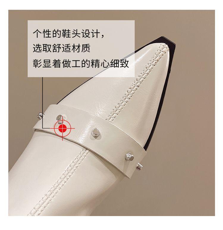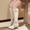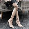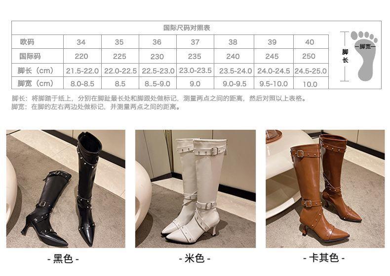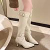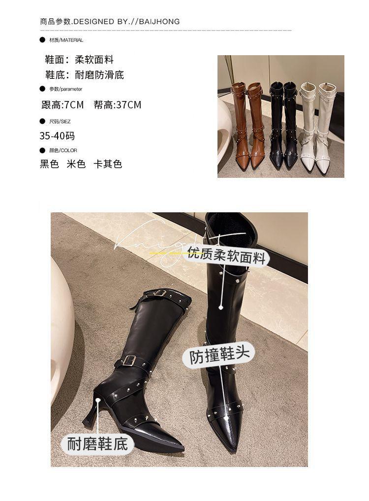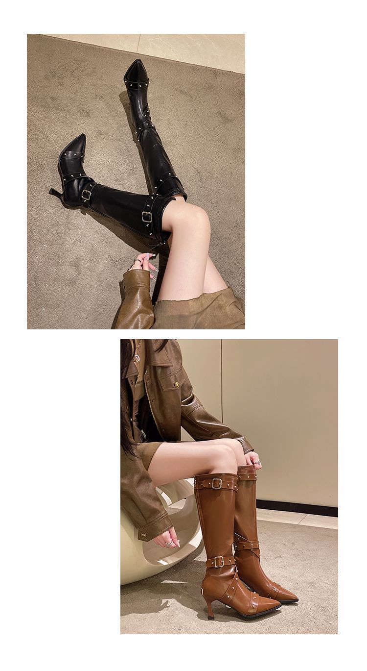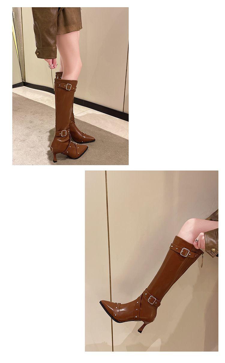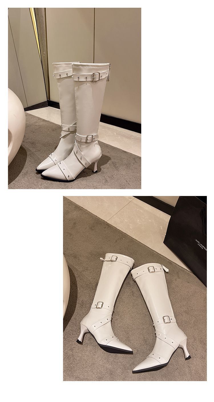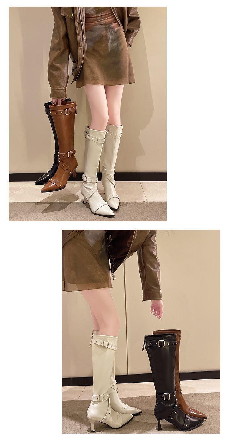Botas altas con hebilla de cinturón y remaches para otoño e invierno, zapatos de mujer de punta puntiaguda, botas finas elásticas de tacón fino, botas largas