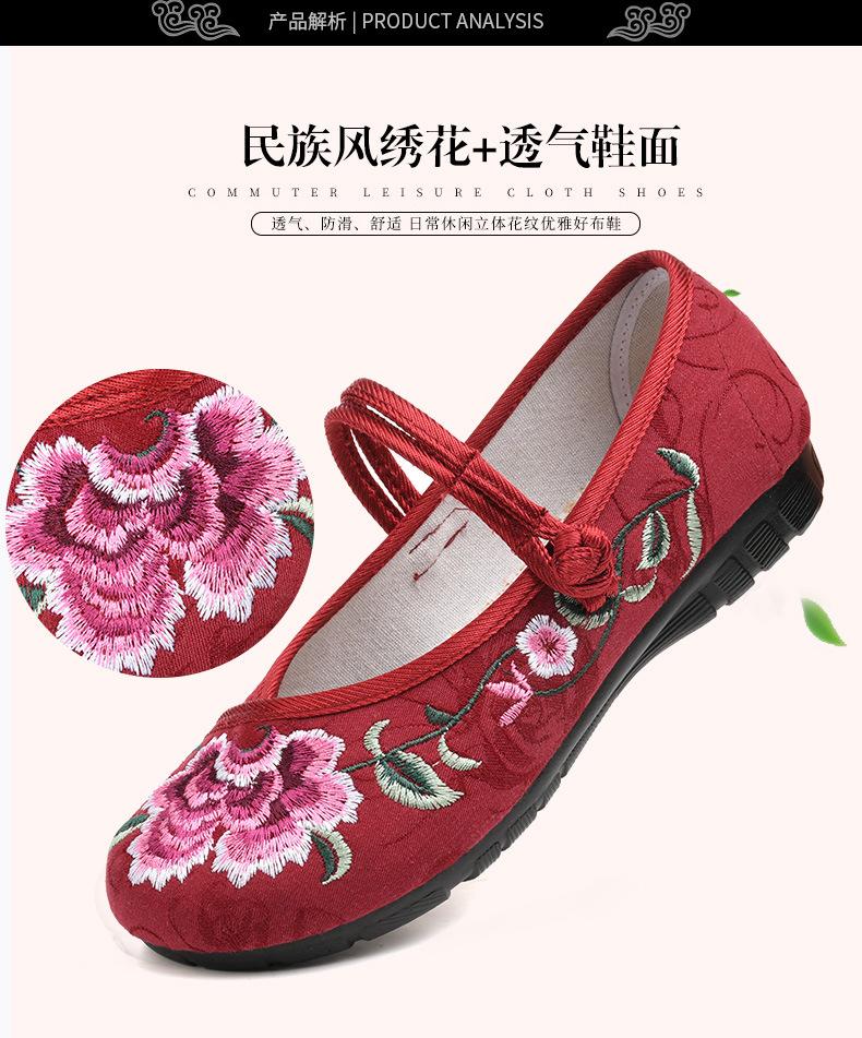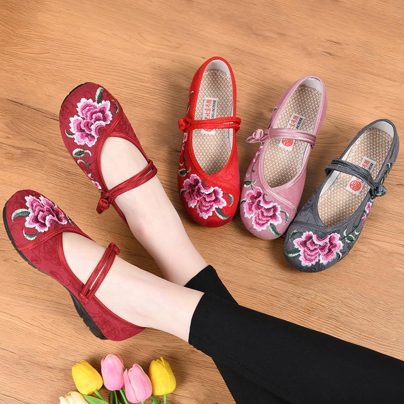 Zapatos de Tela Old Beijing con Suela de Poliuretano para Mujer, Zapatos Bordados de Estilo Étnico, Zapatos Bordados de Estilo Antiguo para Hanfu, Transpirables y Cómodos