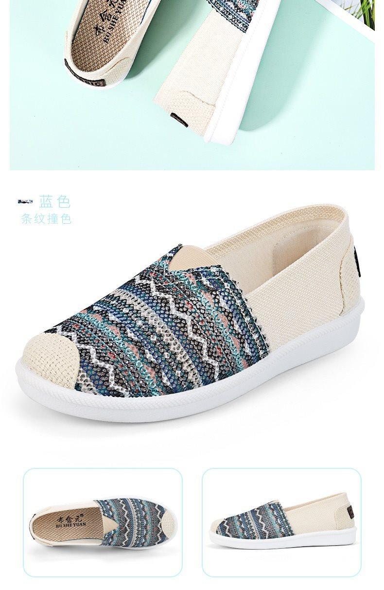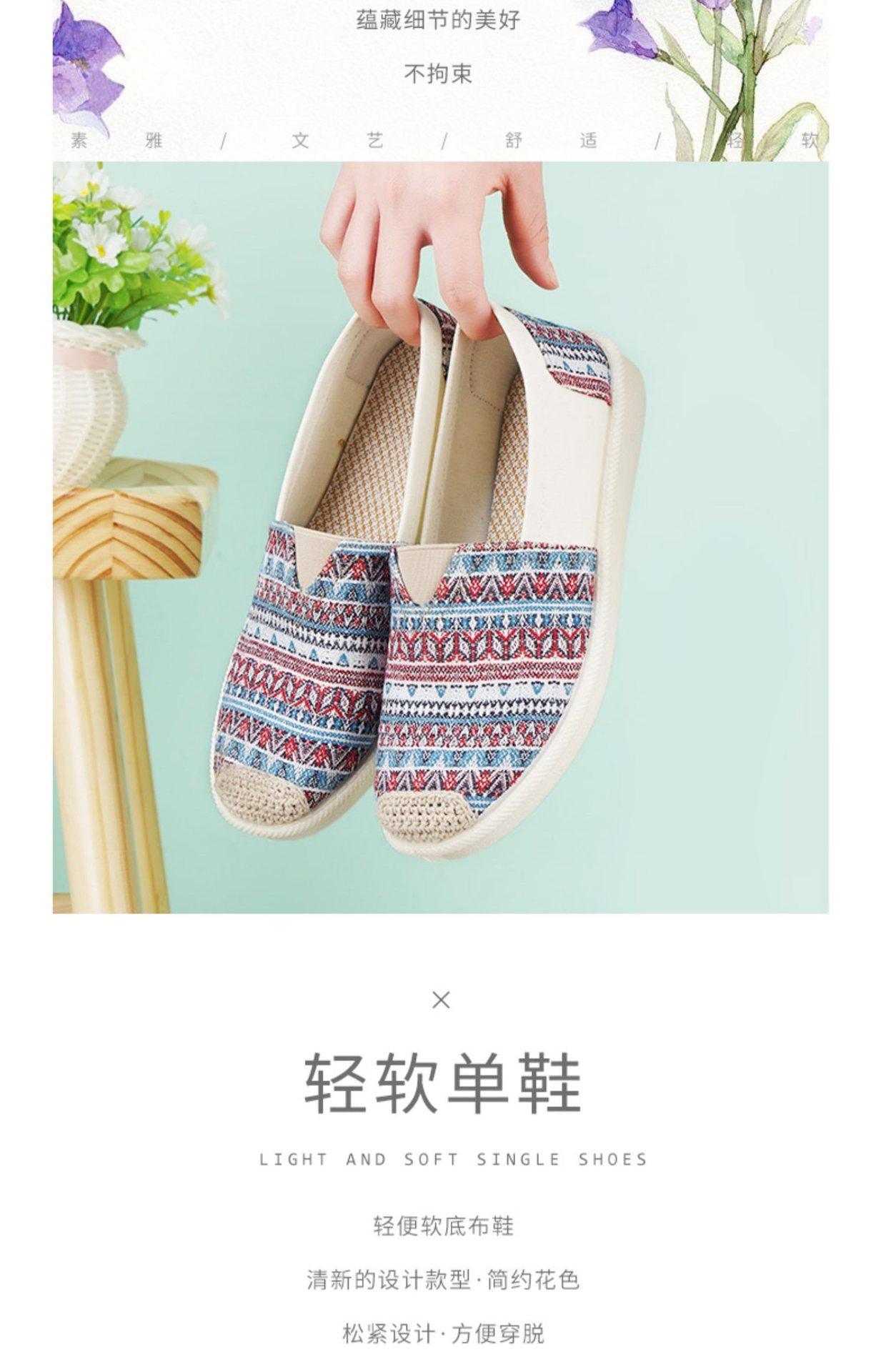 Zapatos de Tela de Pekín Antiguos Zapatos de Pescador de Primavera Nuevos para Mujer Zapatos Planos Slip-on Zapatos Casuales de Suela Blanda Estilo Étnico
