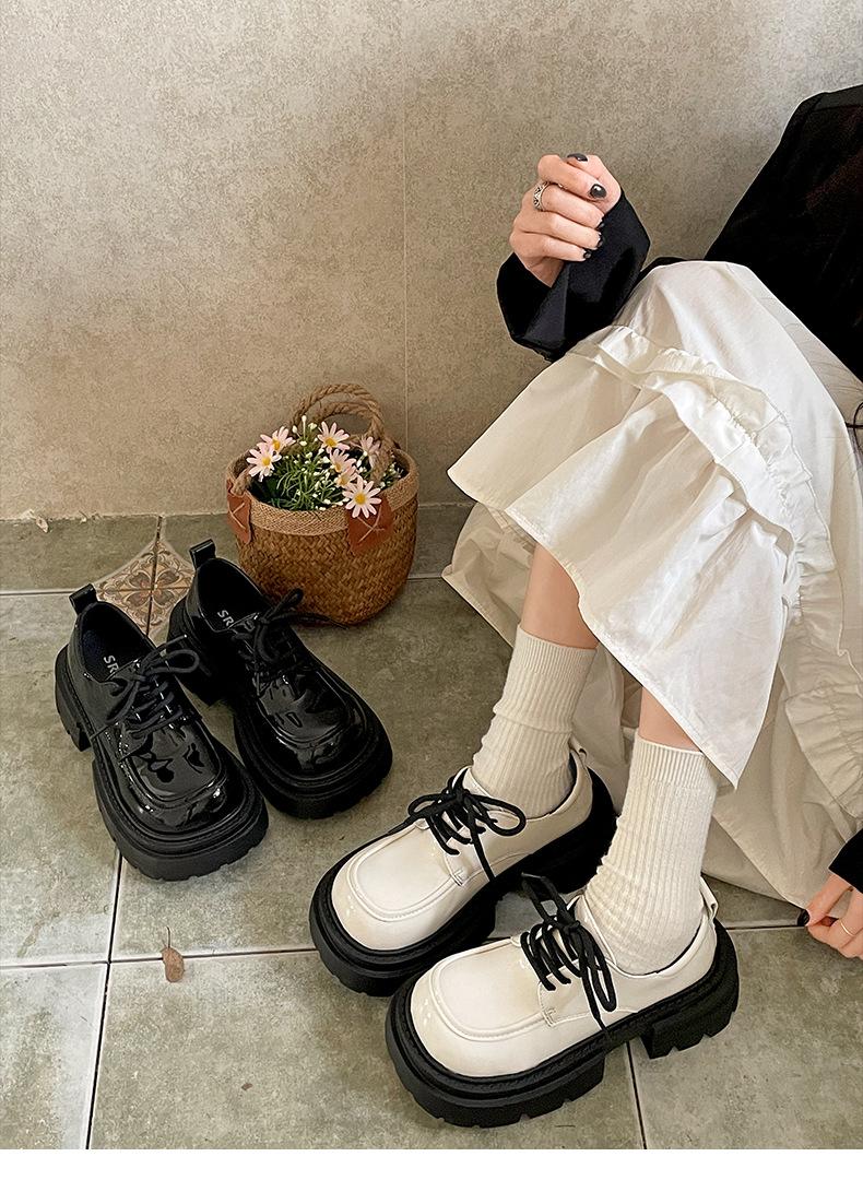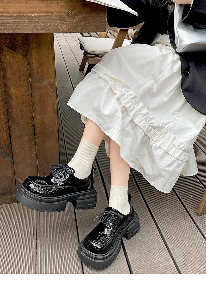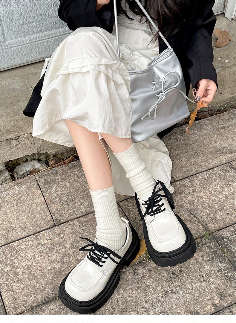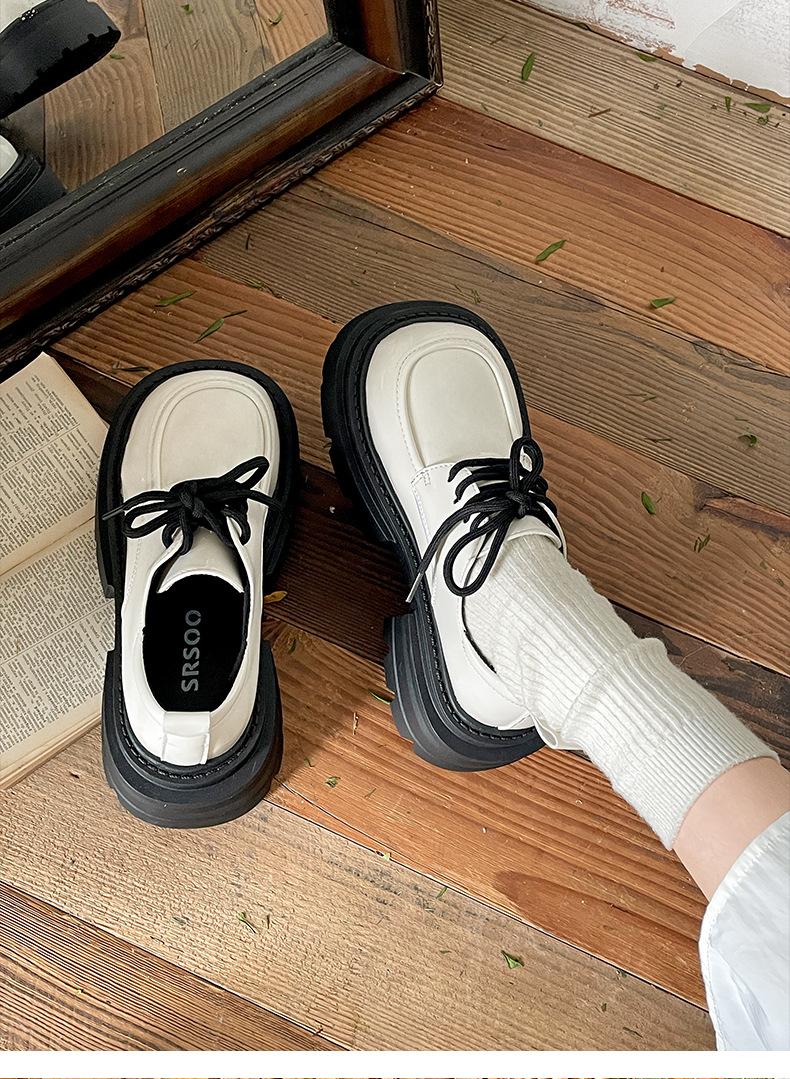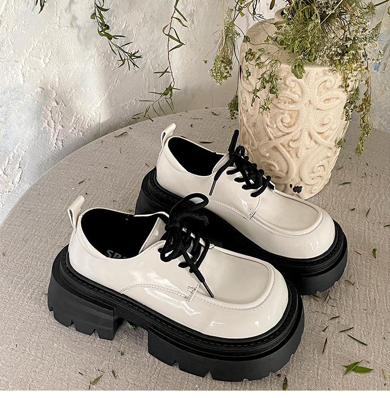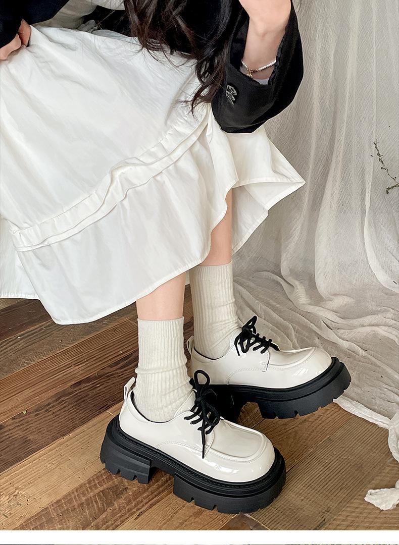Zapatos Mary Jane blancos de cuero estilo británico retro con plataforma pequeña para mujer, primavera y otoño 2025, con aumento de altura francés