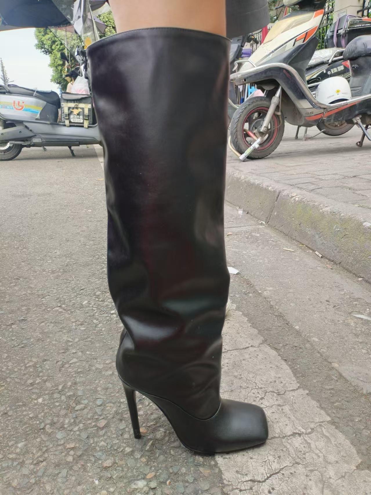 2024 comercio exterior nuevo estilo europeo y americano cuadrado tacón alto botas altas moda manga tacón alto botas de moda botas de mujer talla grande