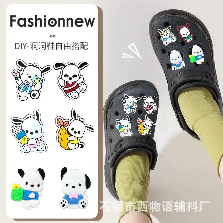 Sanrio Parchapa Zapatos con Agujeros para Perros Zapatos con Flor Hebilla de Zapatos Accesorios PVC Zapatos de Goma Suave Accesorios DIY Accesorios Decoración Transfronterizos
