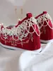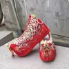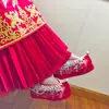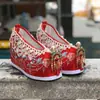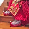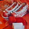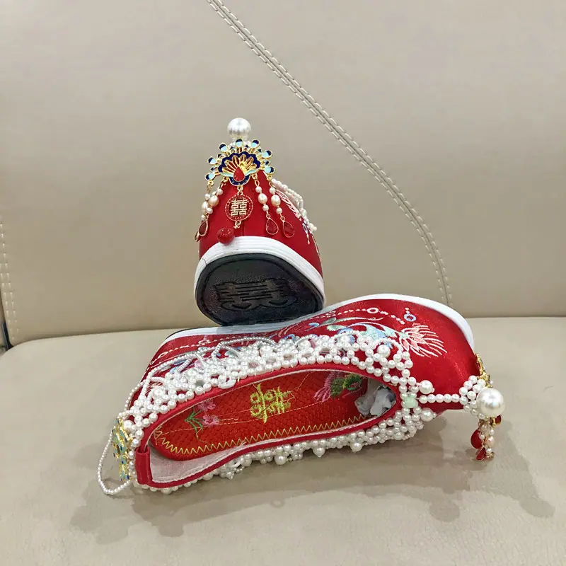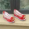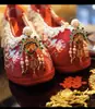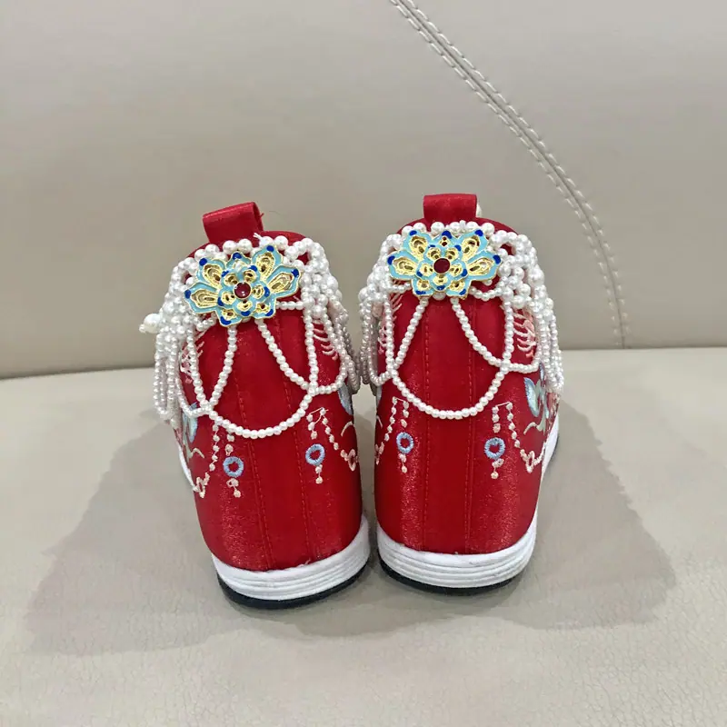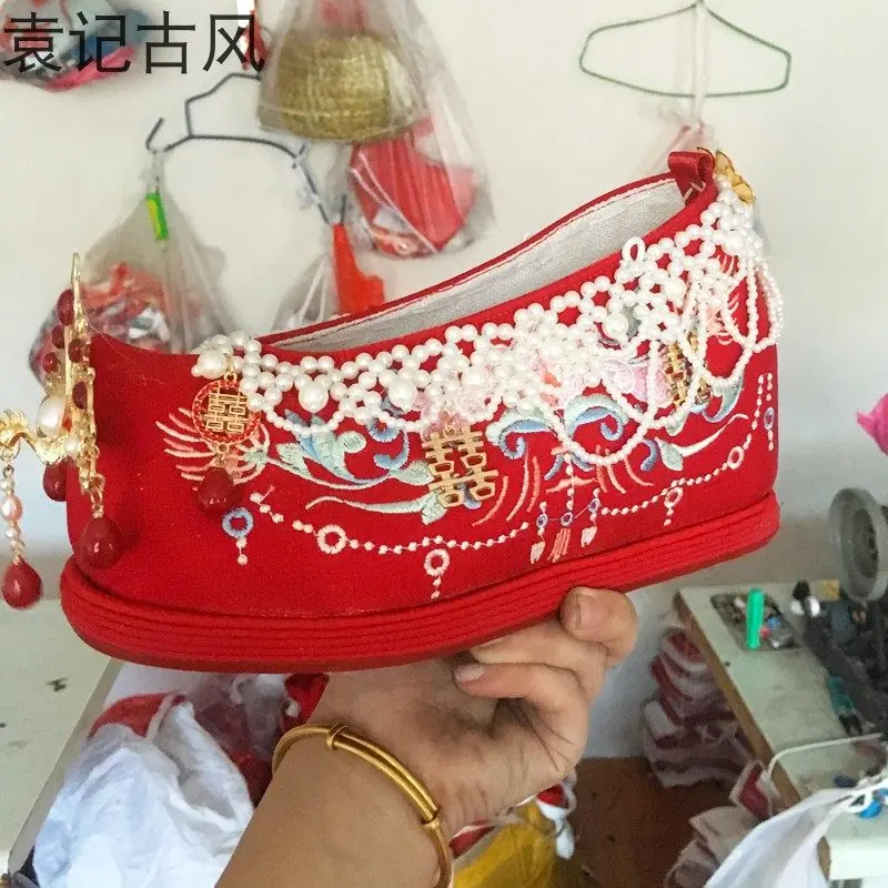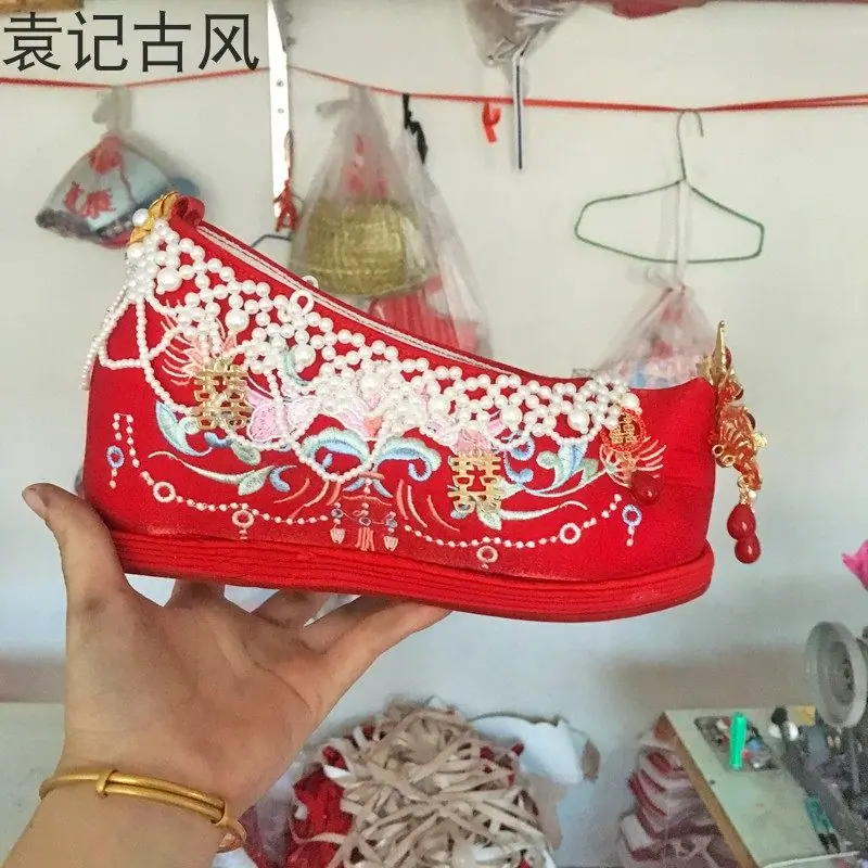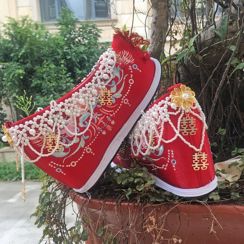 Zapatos Hanfu Originales de Estilo Chino Tradicional para Mujer, Zapatos de Boda Xiuhe Estilo Chino con Tacón Oculto, Zapatos Bordados con Perlas de Punta Fina, Estilo Ming 9cm