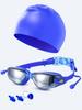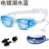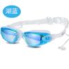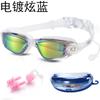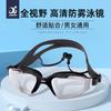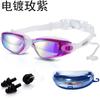 Espejo cruzado dedicado a tapones para los oídos de una pieza, gafas de natación galvanizadas de moda, antivaho y anti-ultravioleta, gafas de natación de marco grande SY7000