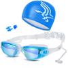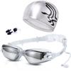 Gafas de natación de Amazon, gorro de natación, pinza nasal, tapones para los oídos, gafas de natación de marco grande HD impermeables y antivaho para hombres y mujeres 7001