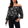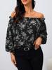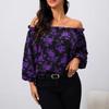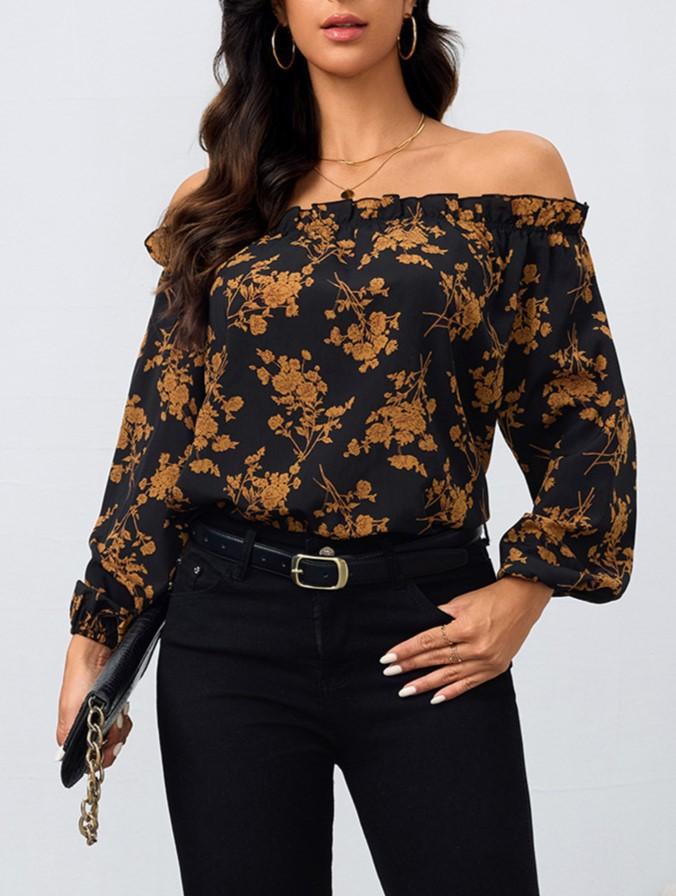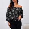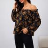 Camisa de mujer europea y americana transfronteriza con cuello de hombro, primavera y otoño, nueva blusa elegante con estampado floral de manga larga.