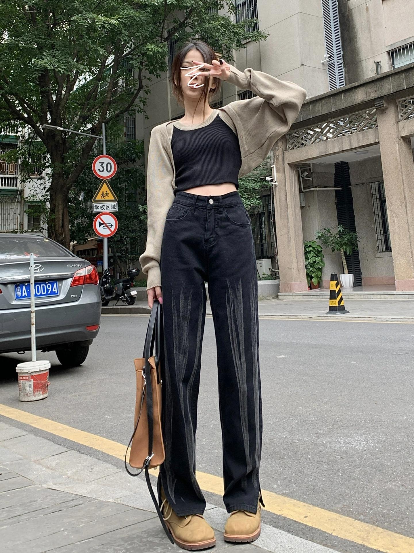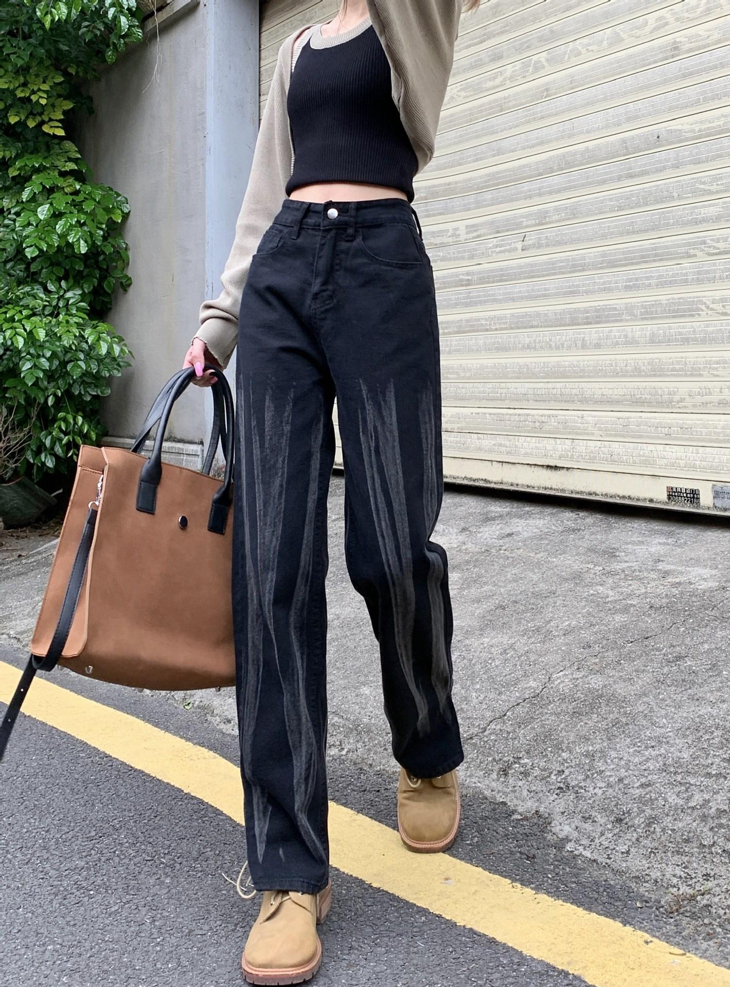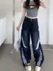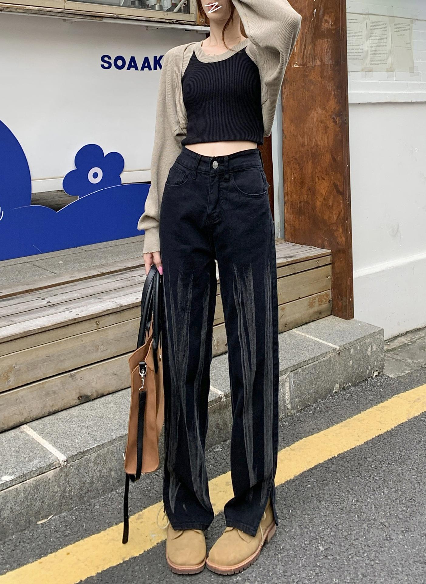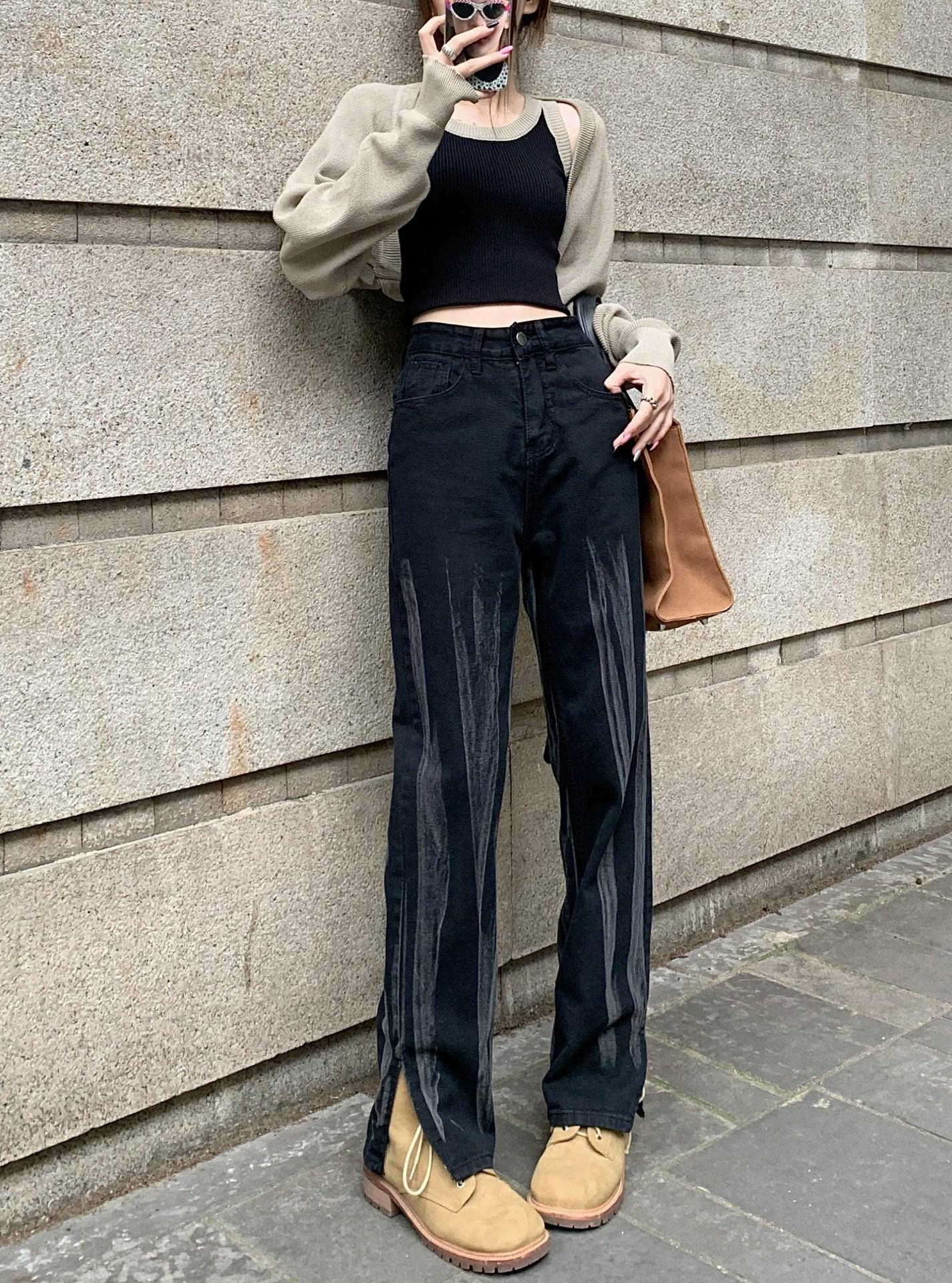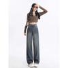Pantalones vaqueros de estilo americano para mujer, de otoño e invierno, con aberturas, rectos, teñidos anudados, holgados, de pierna ancha y cintura alta, ajustados.
