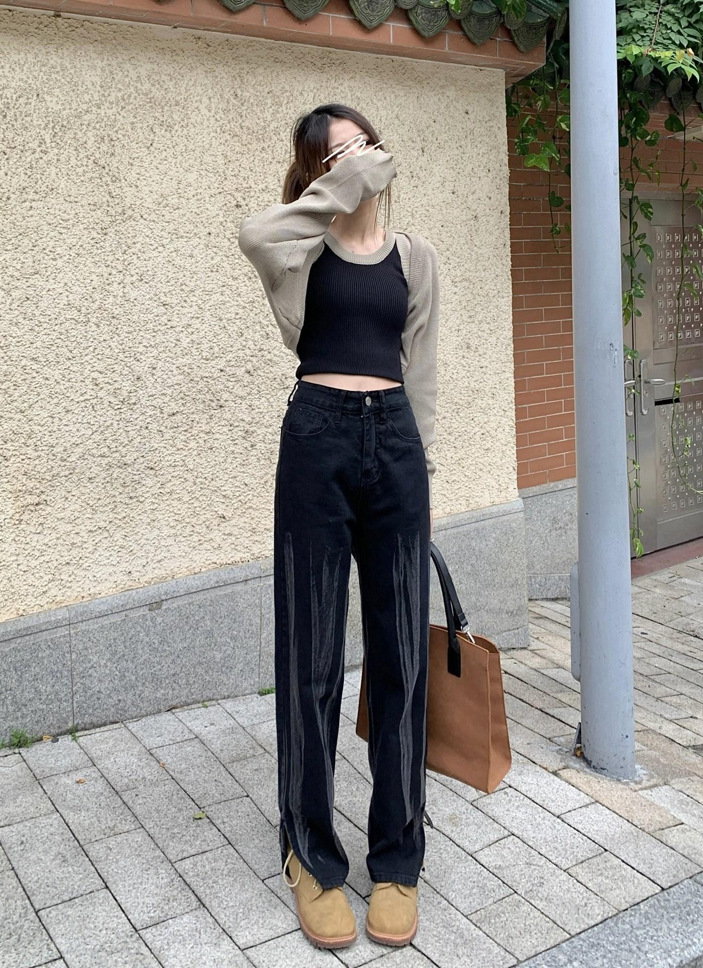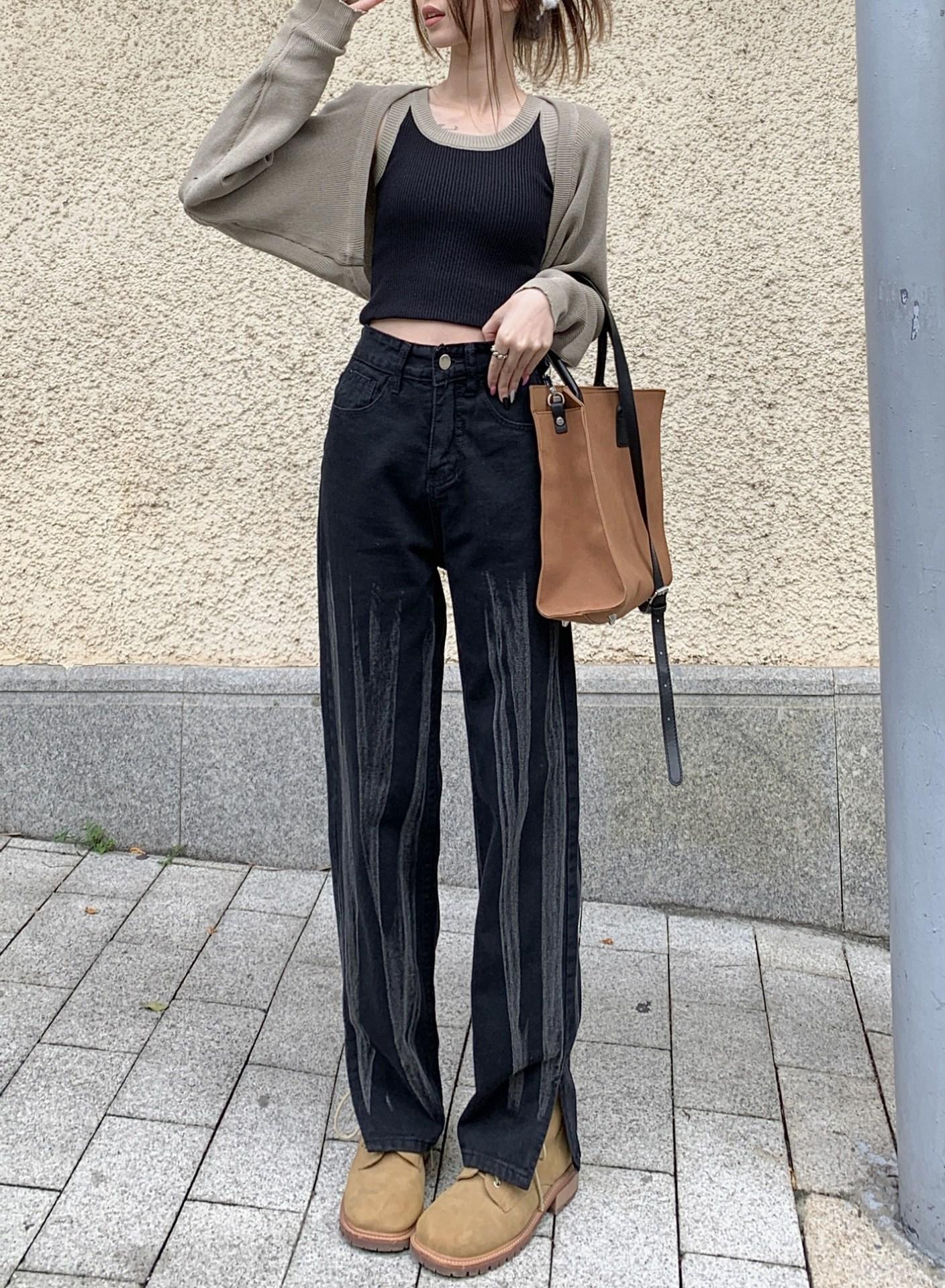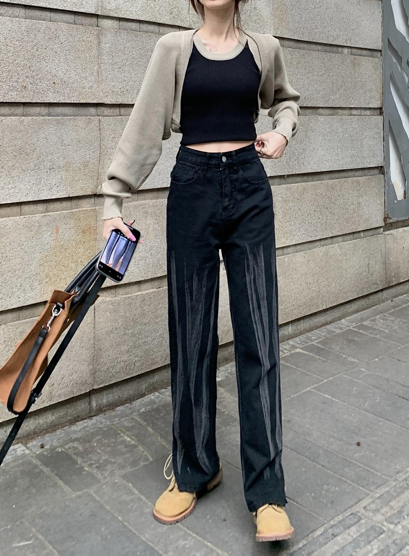 Pantalones vaqueros de estilo americano para mujer, de otoño e invierno, con aberturas, rectos, teñidos anudados, holgados, de pierna ancha y cintura alta, ajustados.