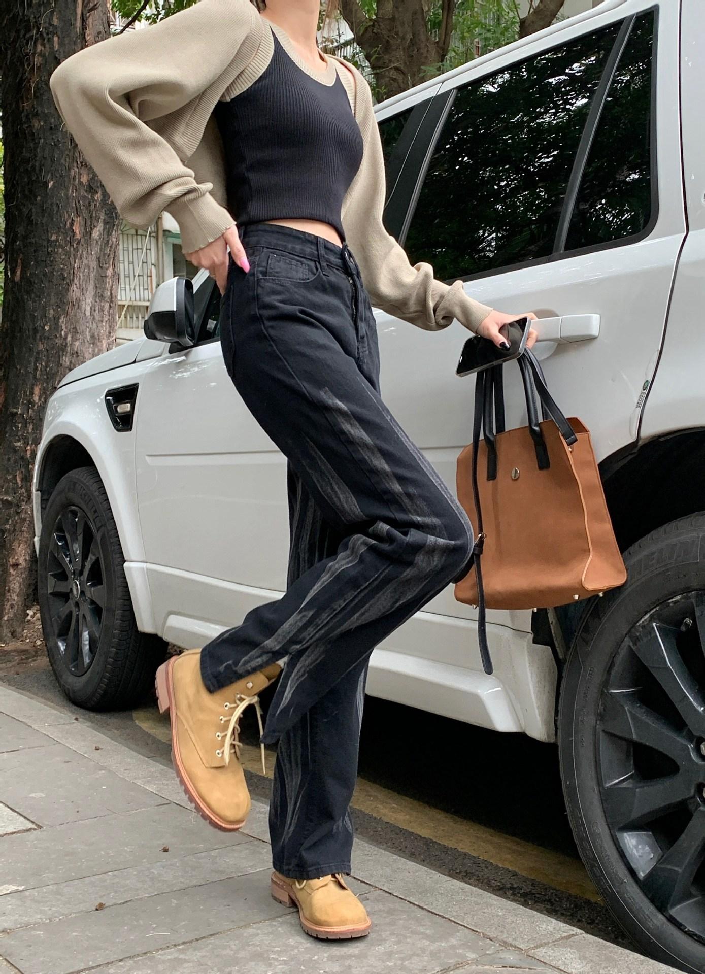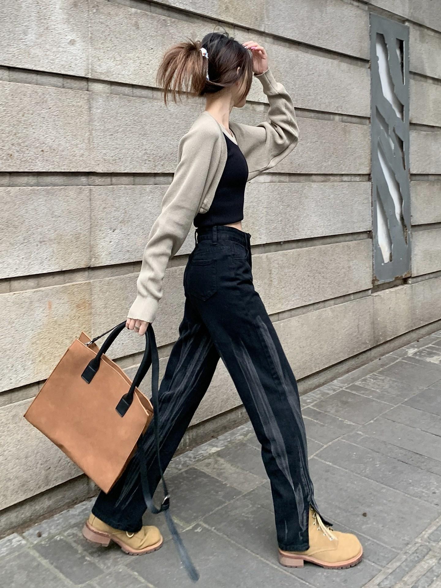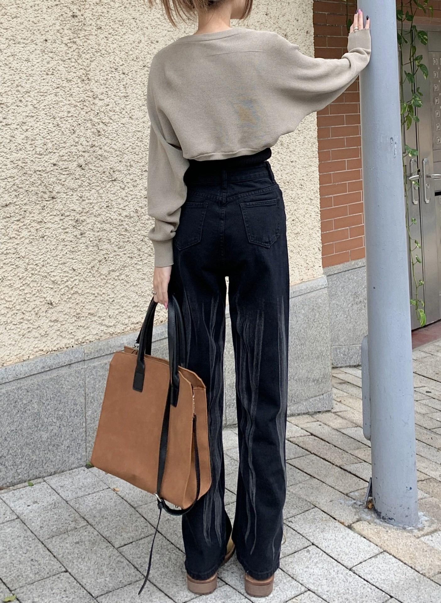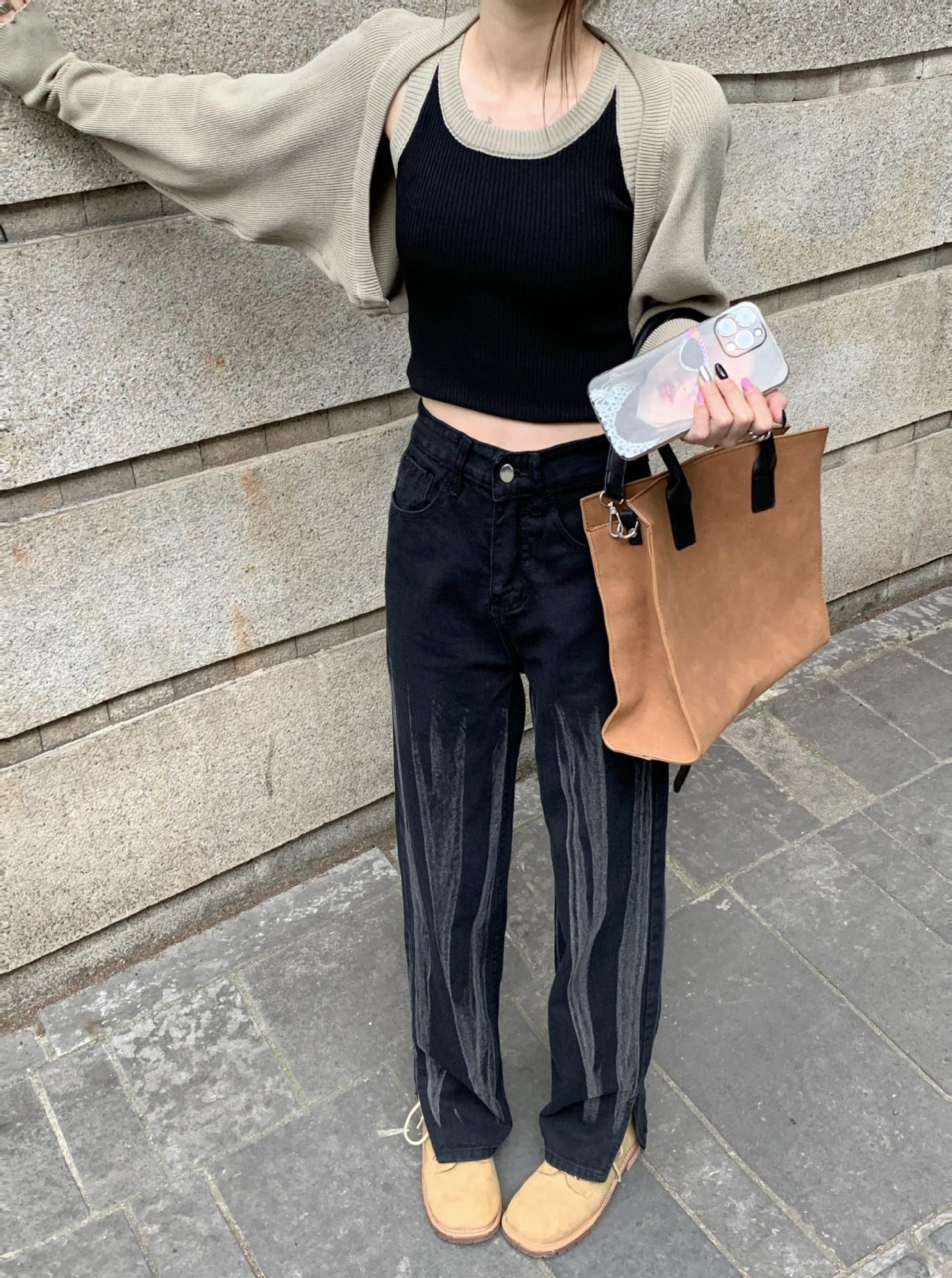Pantalones vaqueros de estilo americano para mujer, de otoño e invierno, con aberturas, rectos, teñidos anudados, holgados, de pierna ancha y cintura alta, ajustados.