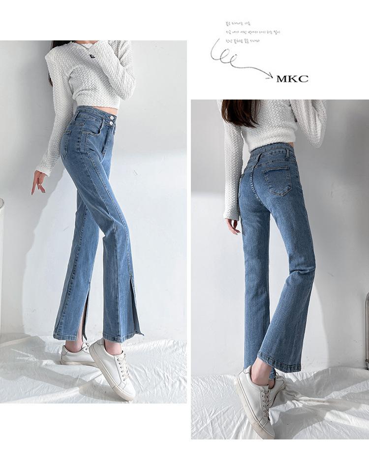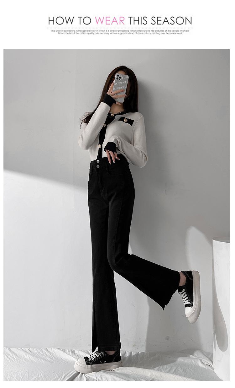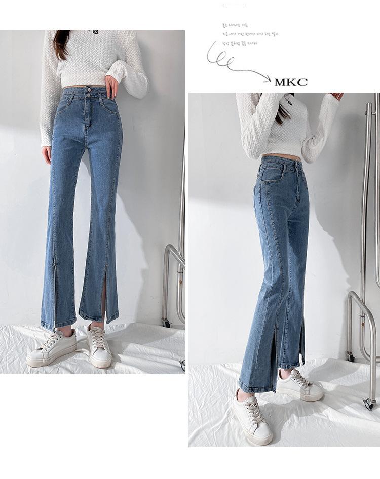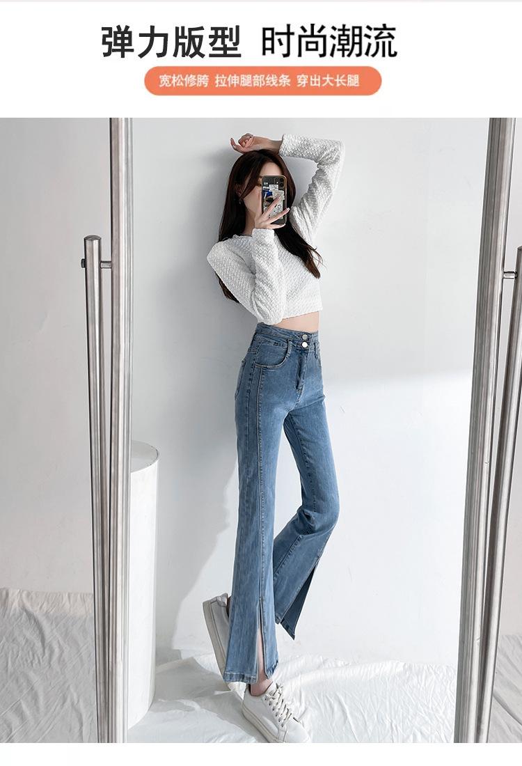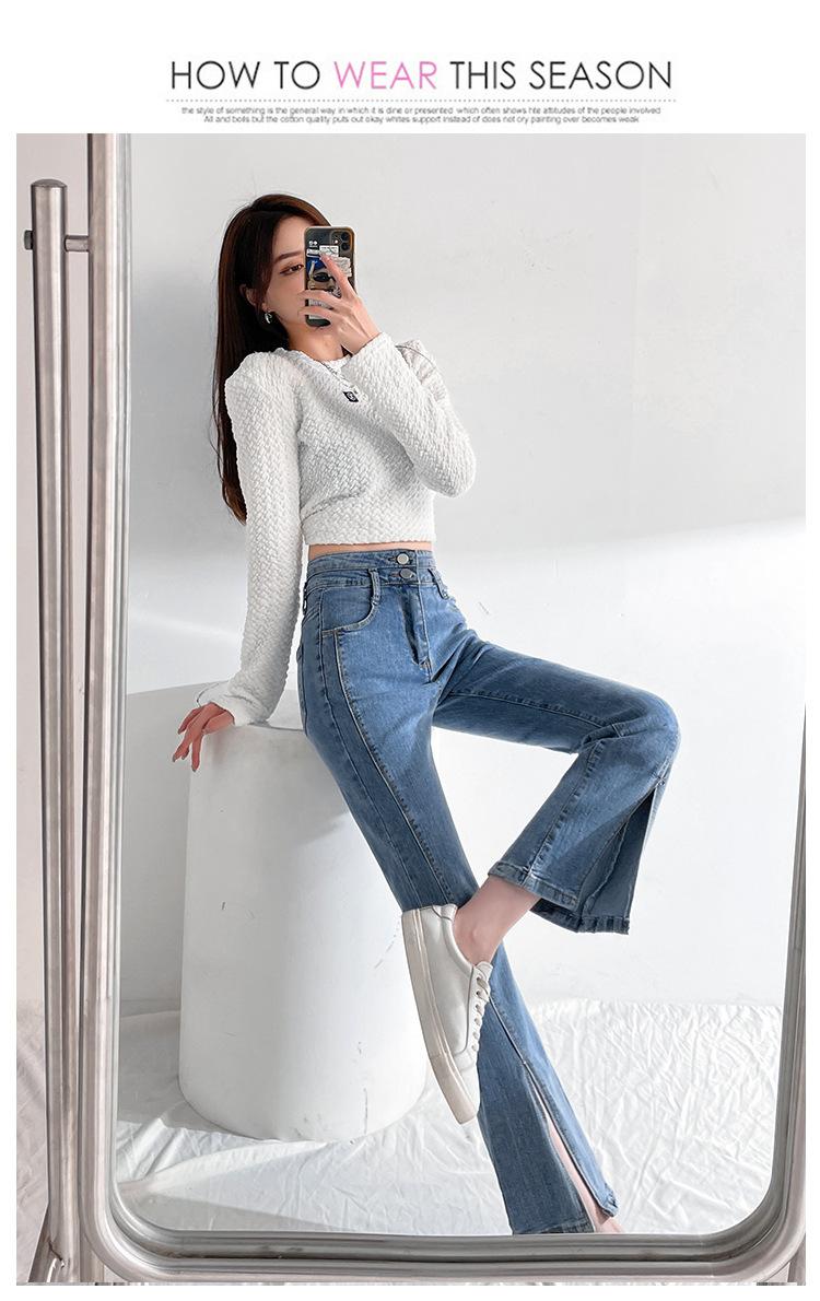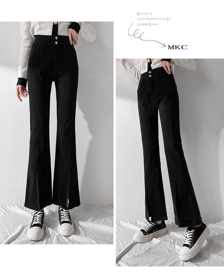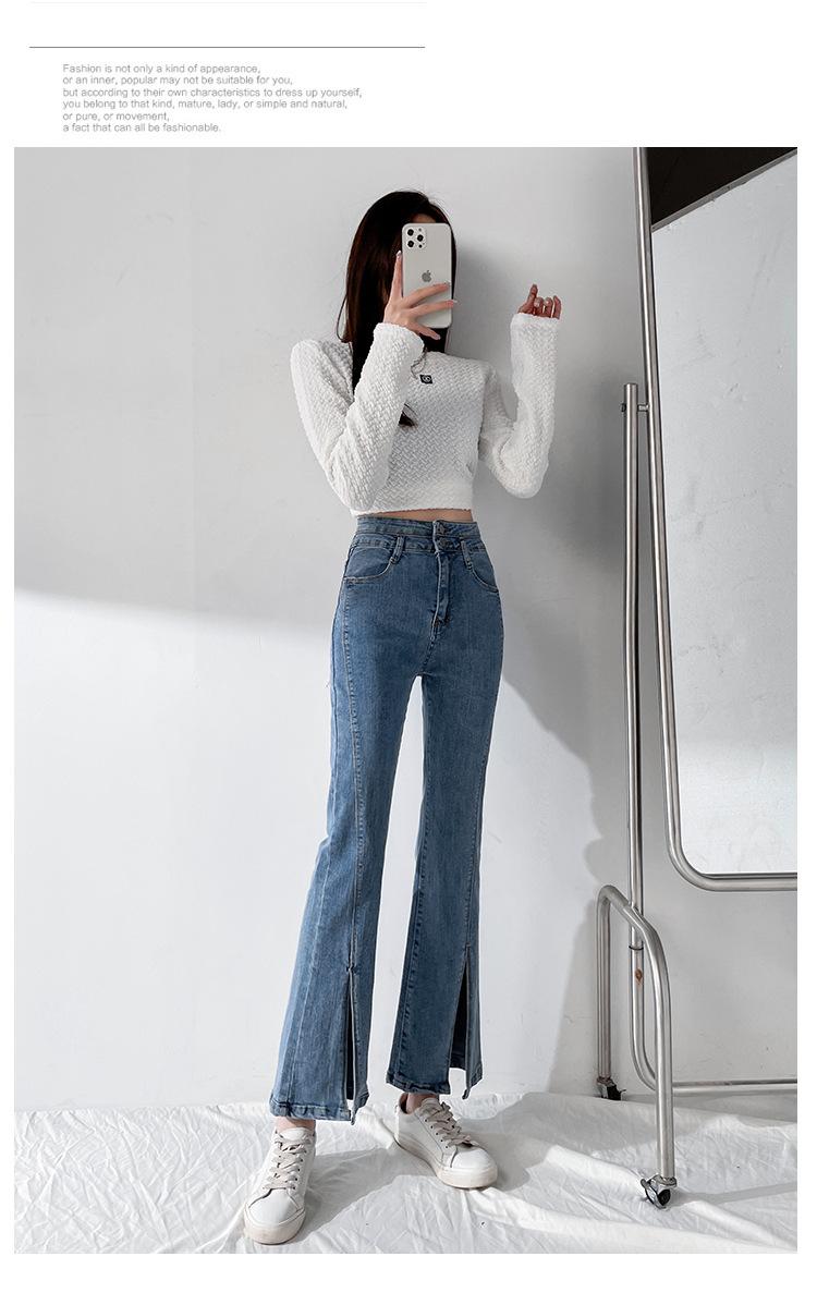 Pantalones de Primavera y Otoño Estilo Coreano Cintura Alta Corte Slim Look Alto Costuras Abertura Pantalones Holgados Elásticos Rectos Jeans para Mujer