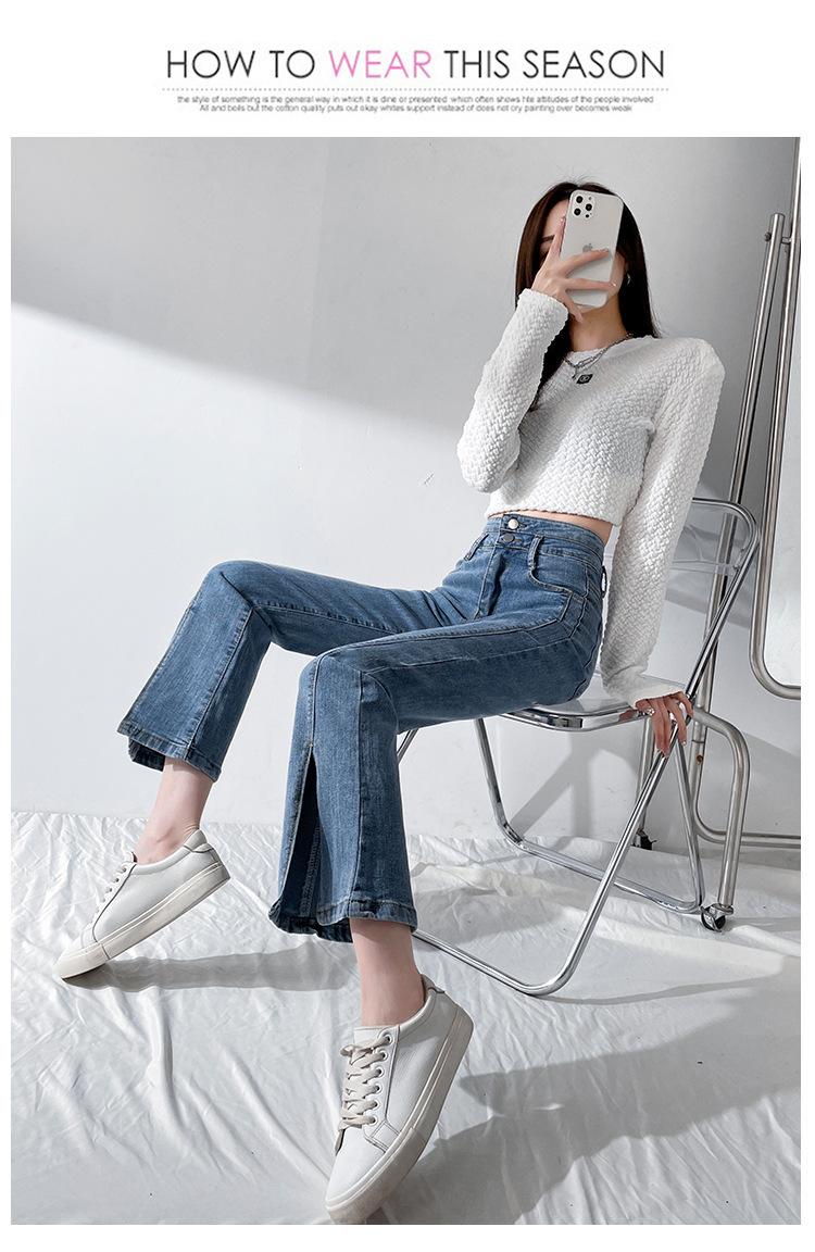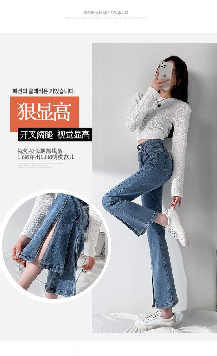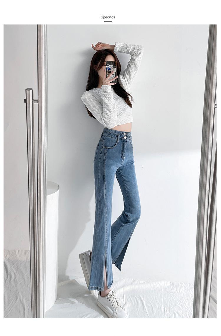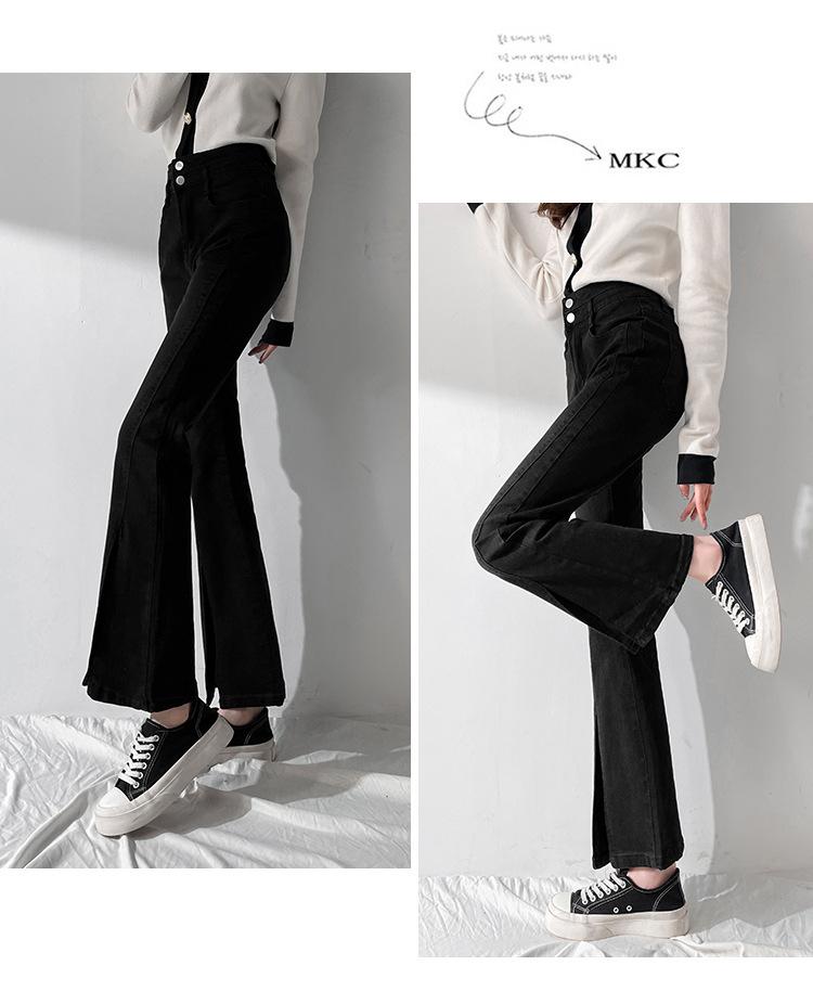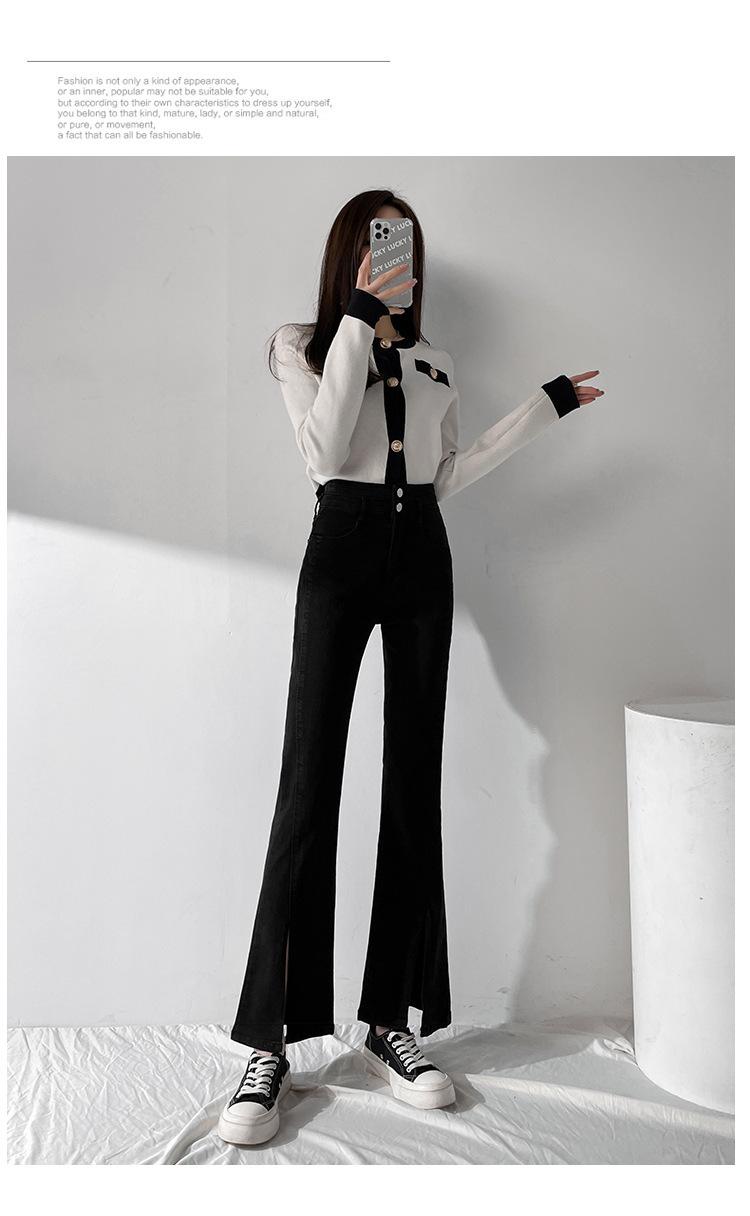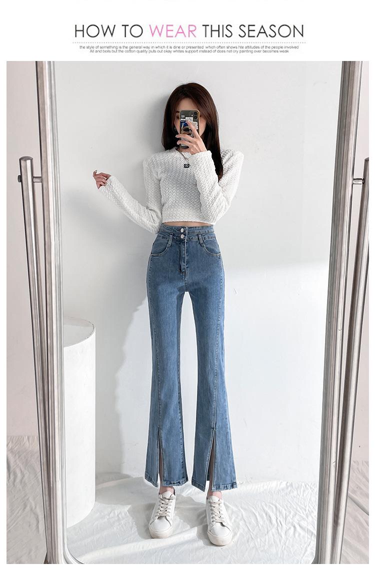 Pantalones de Primavera y Otoño Estilo Coreano Cintura Alta Corte Slim Look Alto Costuras Abertura Pantalones Holgados Elásticos Rectos Jeans para Mujer