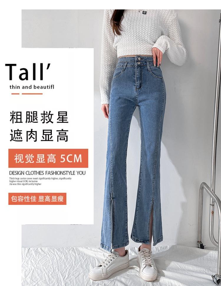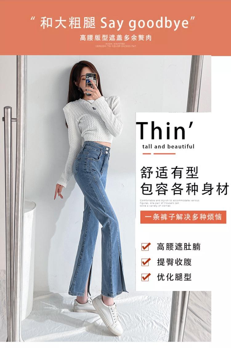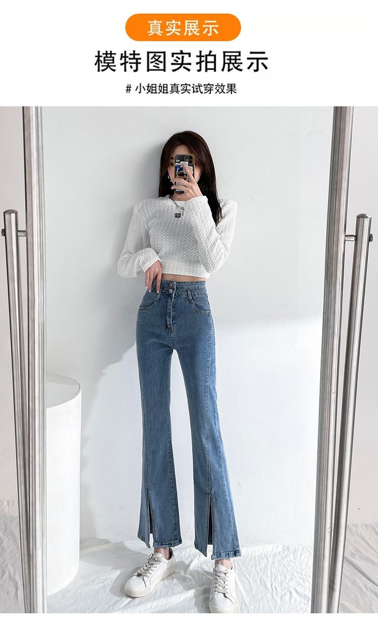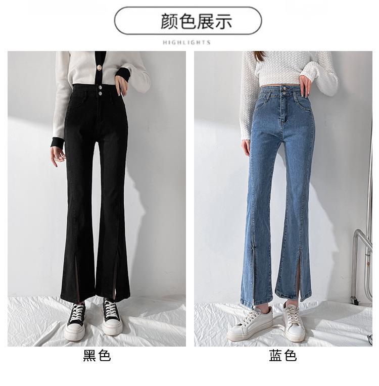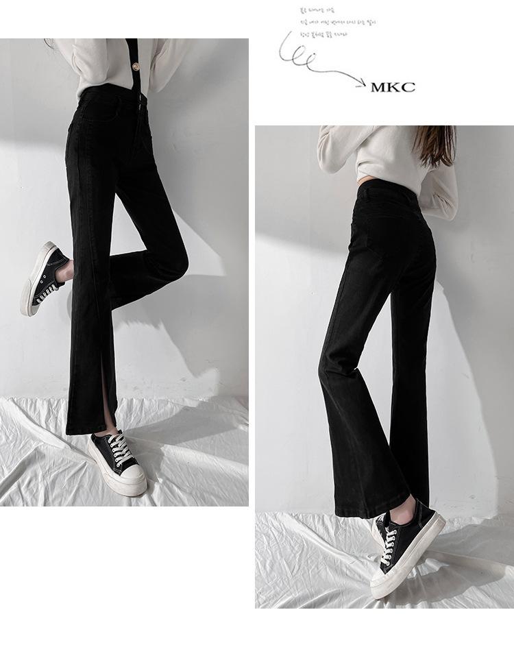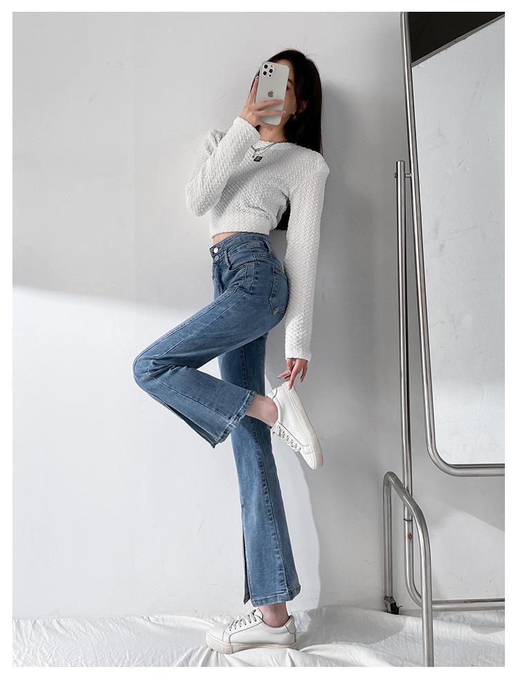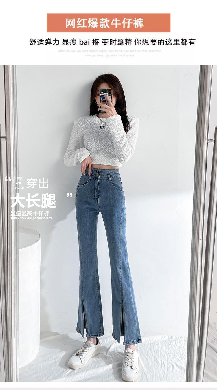 Pantalones de Primavera y Otoño Estilo Coreano Cintura Alta Corte Slim Look Alto Costuras Abertura Pantalones Holgados Elásticos Rectos Jeans para Mujer