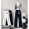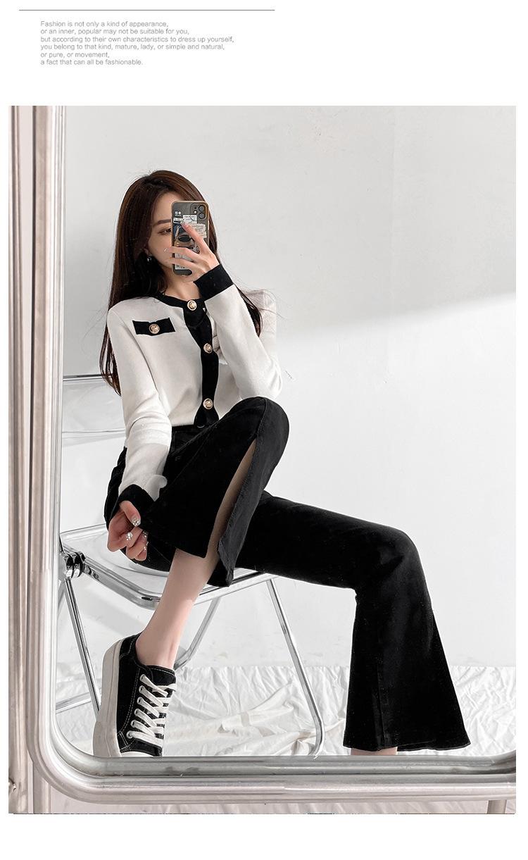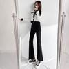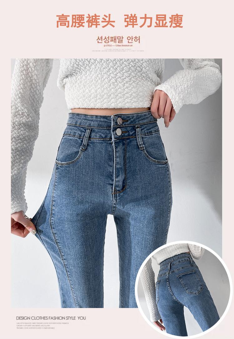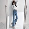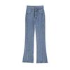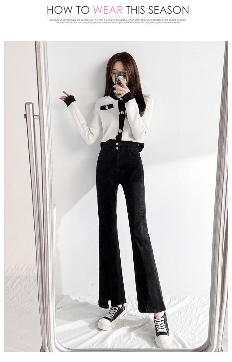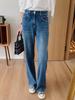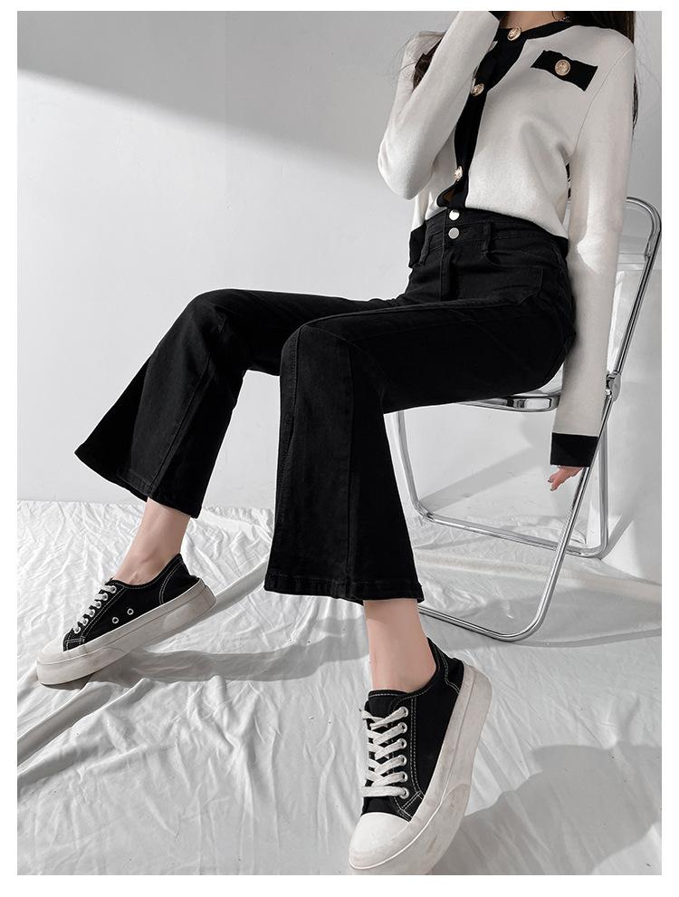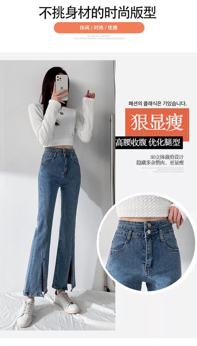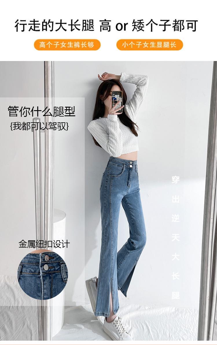Pantalones de Primavera y Otoño Estilo Coreano Cintura Alta Corte Slim Look Alto Costuras Abertura Pantalones Holgados Elásticos Rectos Jeans para Mujer