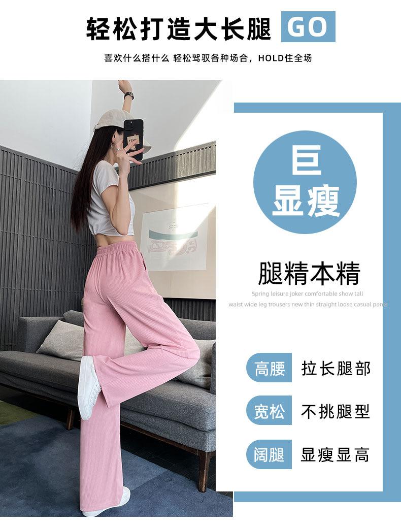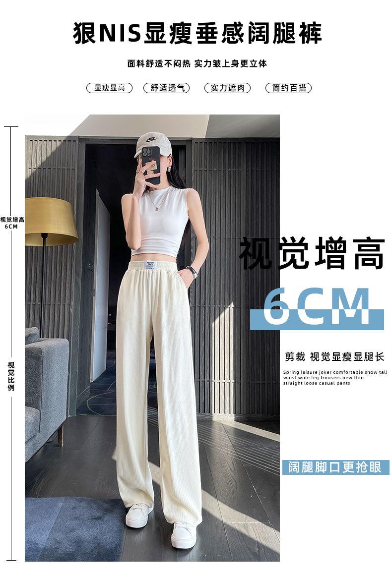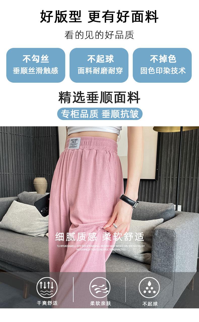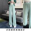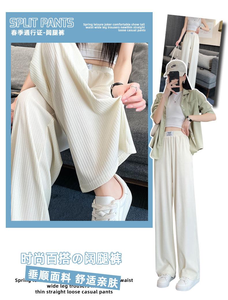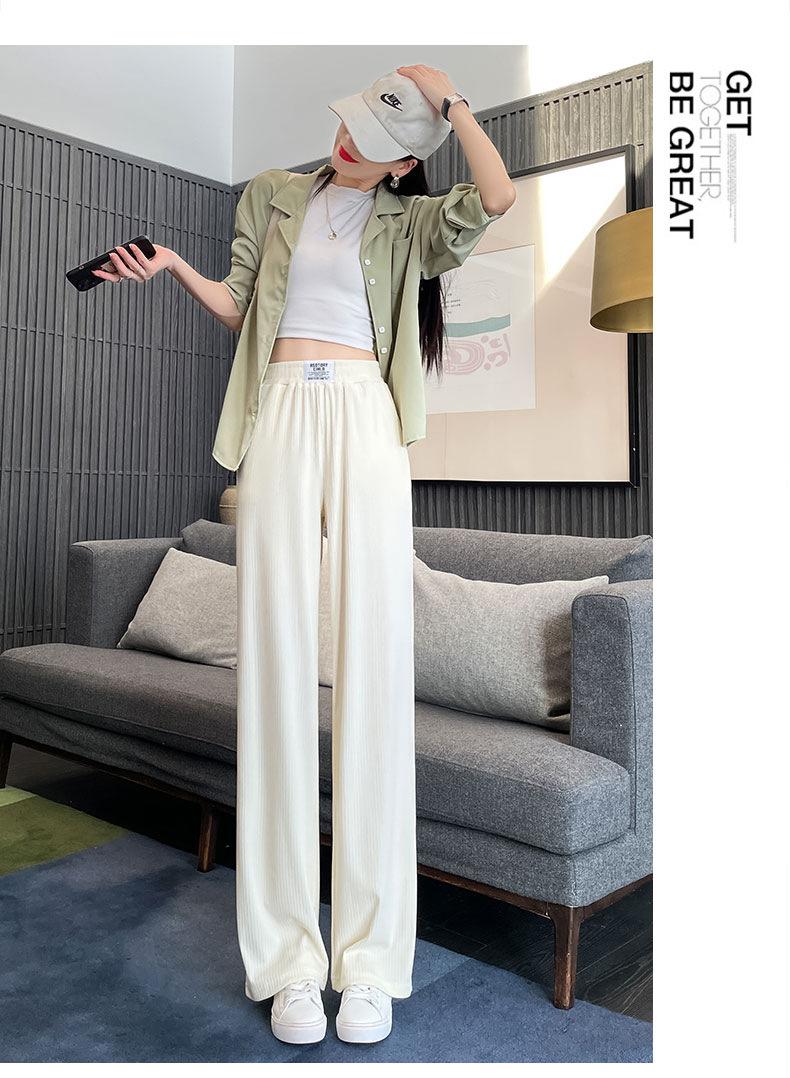Pantalones anchos y estrechos de primavera 2025 para mujer, de seda helada, de cintura alta, holgados y rectos, informales.