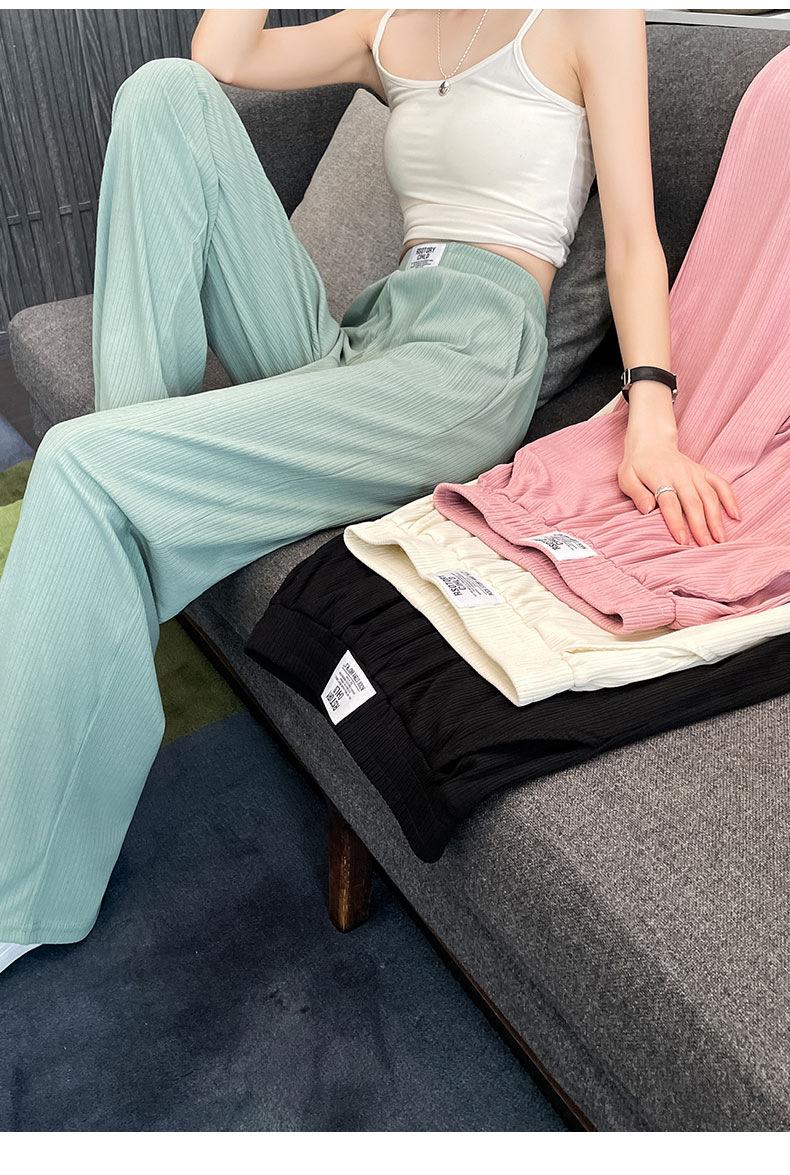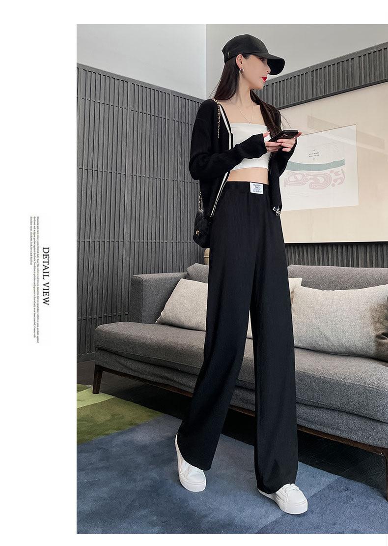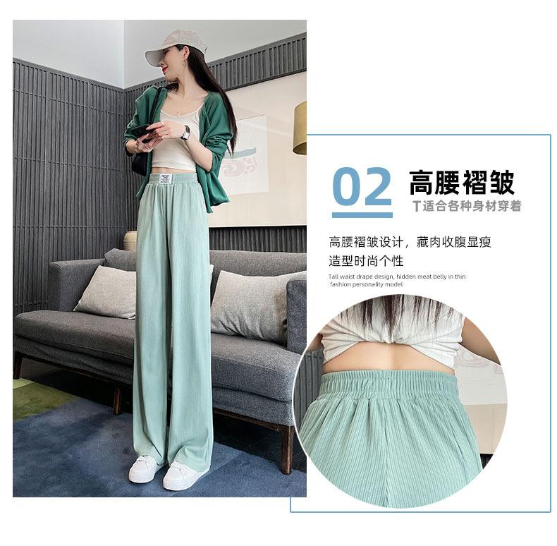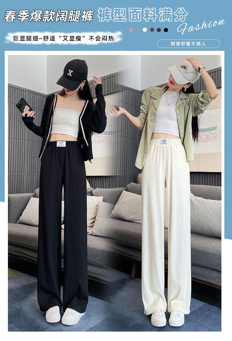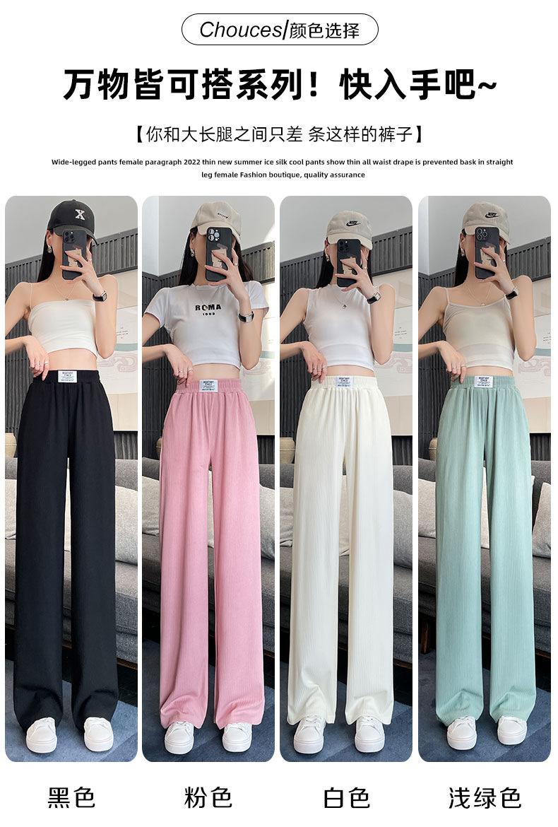 Pantalones anchos y estrechos de primavera 2025 para mujer, de seda helada, de cintura alta, holgados y rectos, informales.