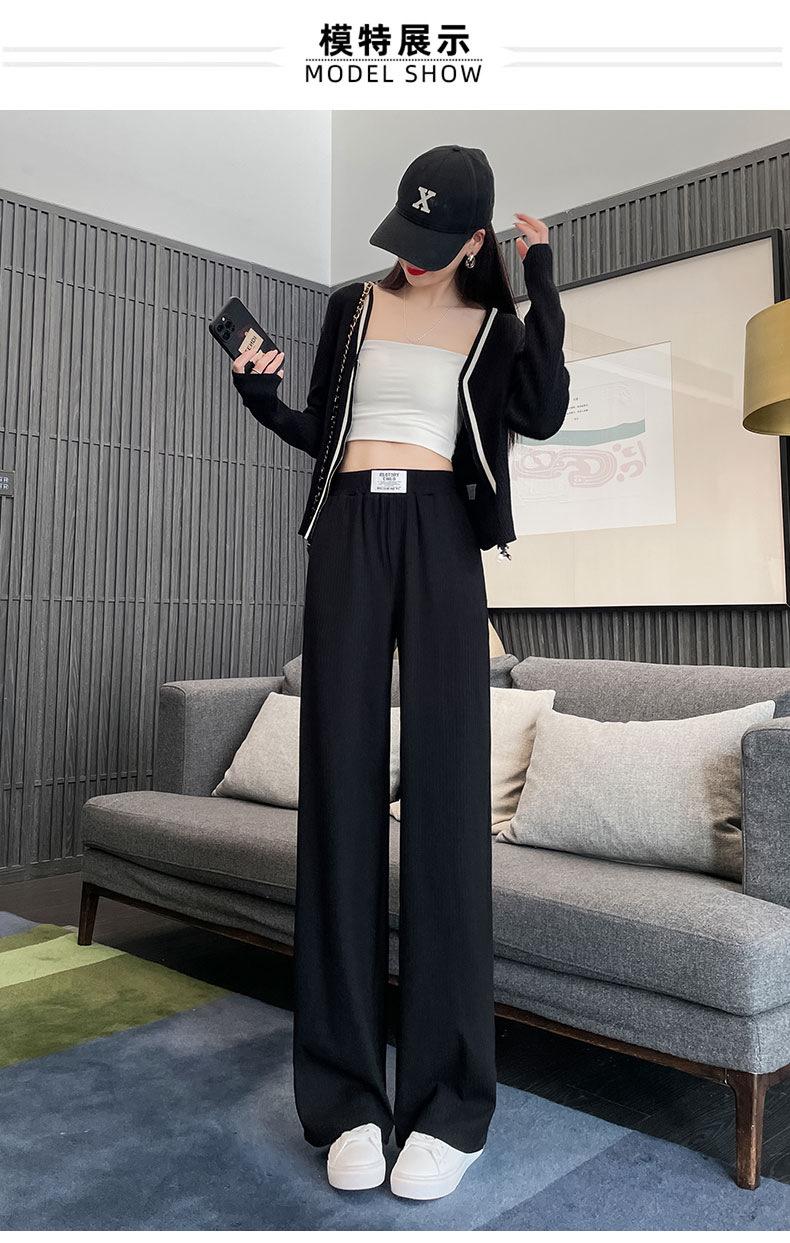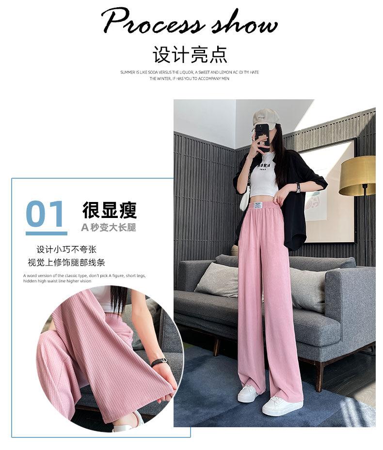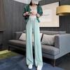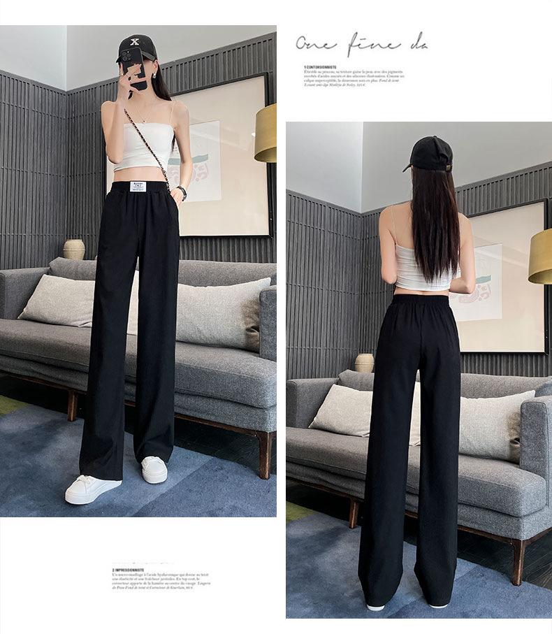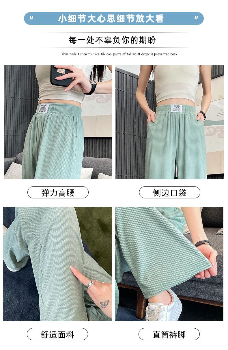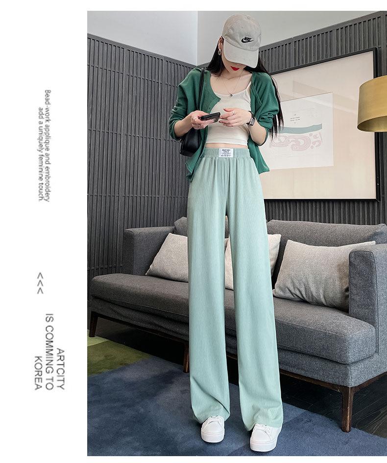 Pantalones anchos y estrechos de primavera 2025 para mujer, de seda helada, de cintura alta, holgados y rectos, informales.