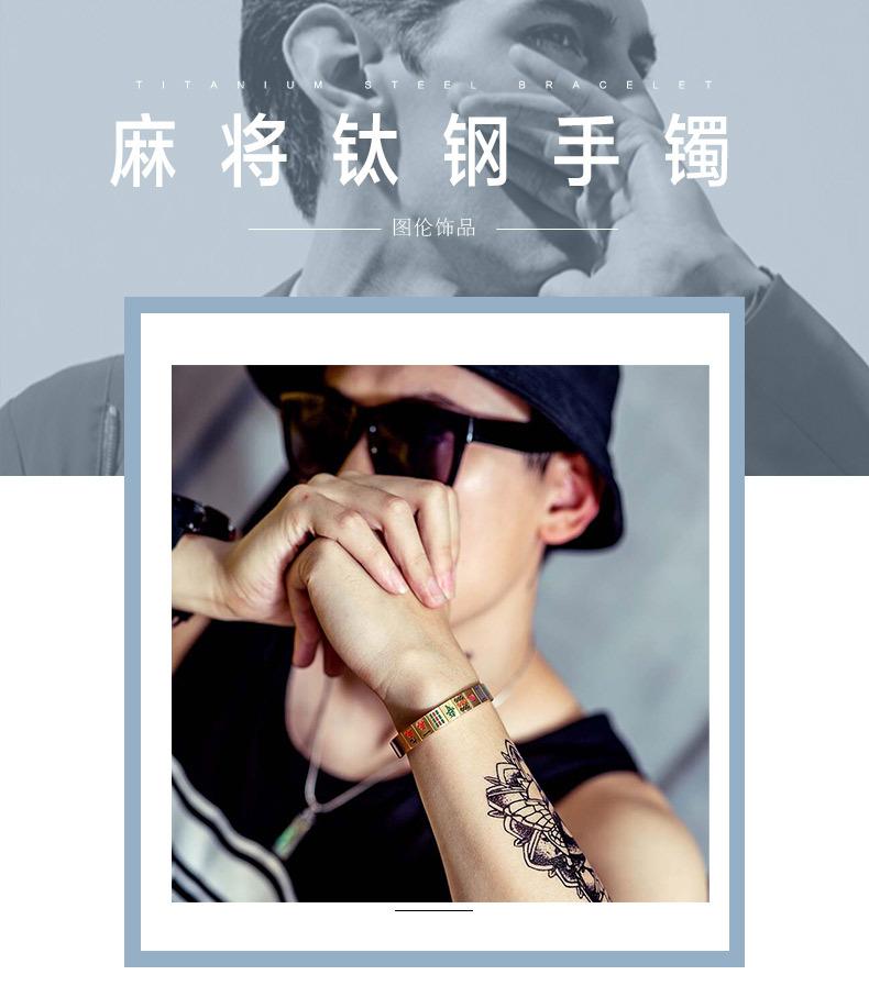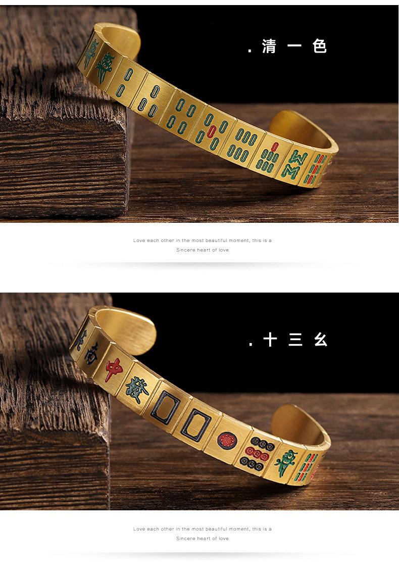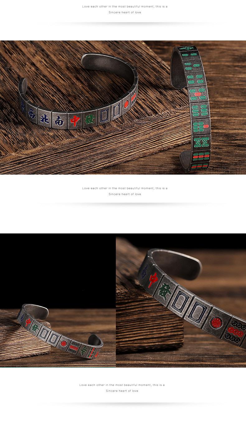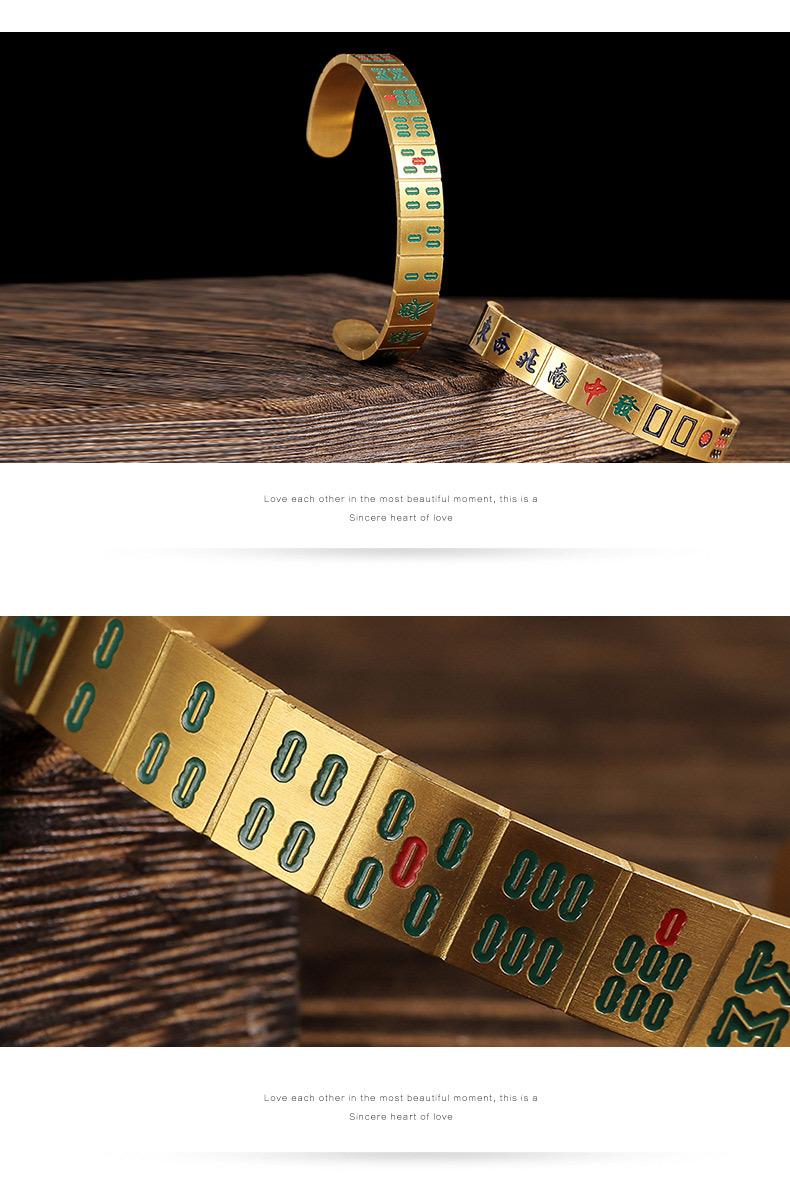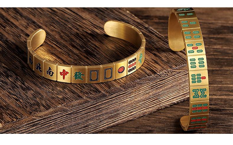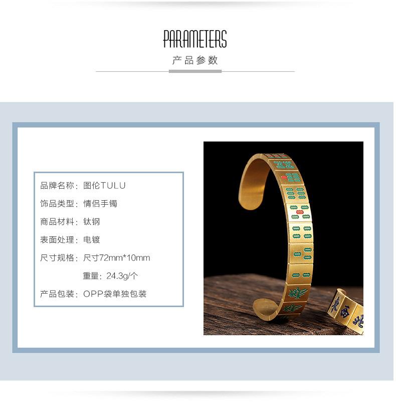 Pulsera de mahjong diseño de nicho ins pulsera de frotado a mano oro plata personalidad abierta pareja acero de titanio joyería que no se desvanece