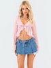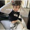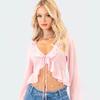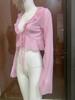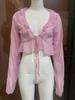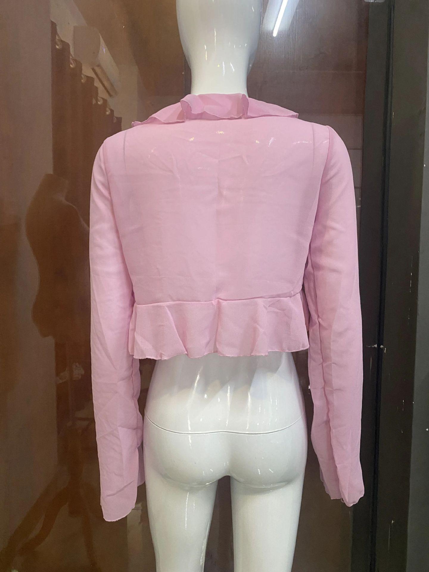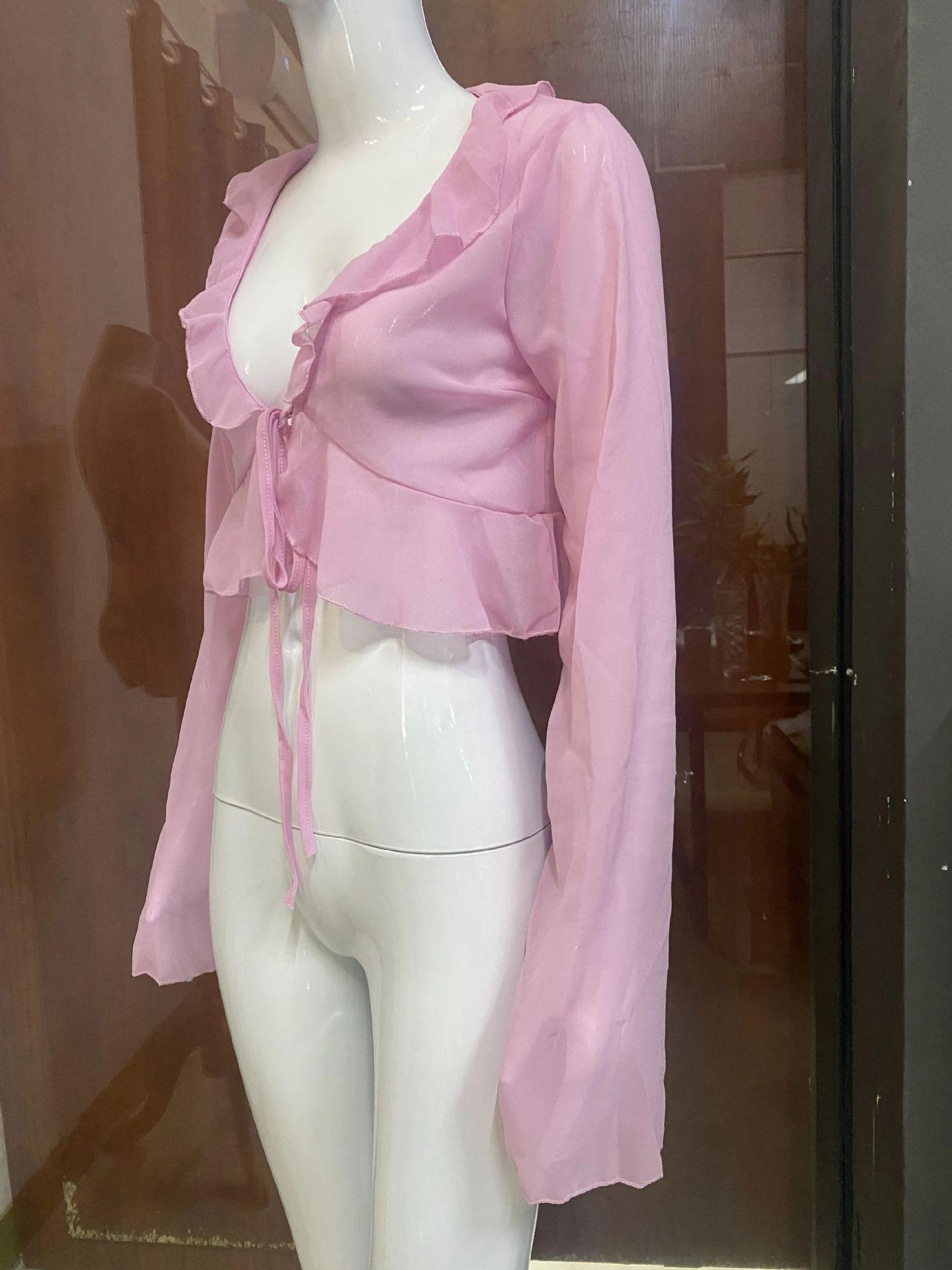 Camiseta de manga larga con cuello en V y volantes de gasa, sexy, color rosa, para mujer, estilo transfronterizo europeo y americano.