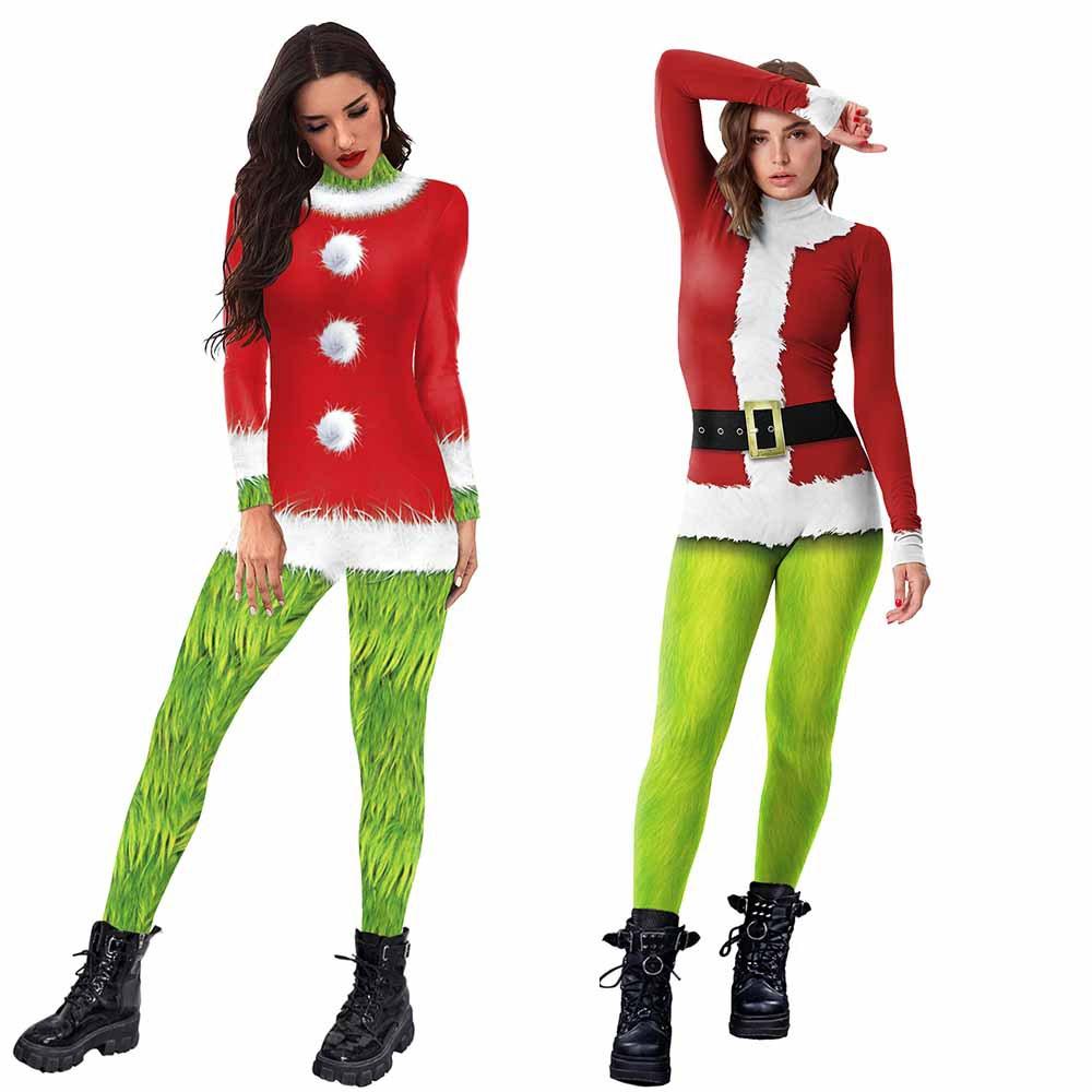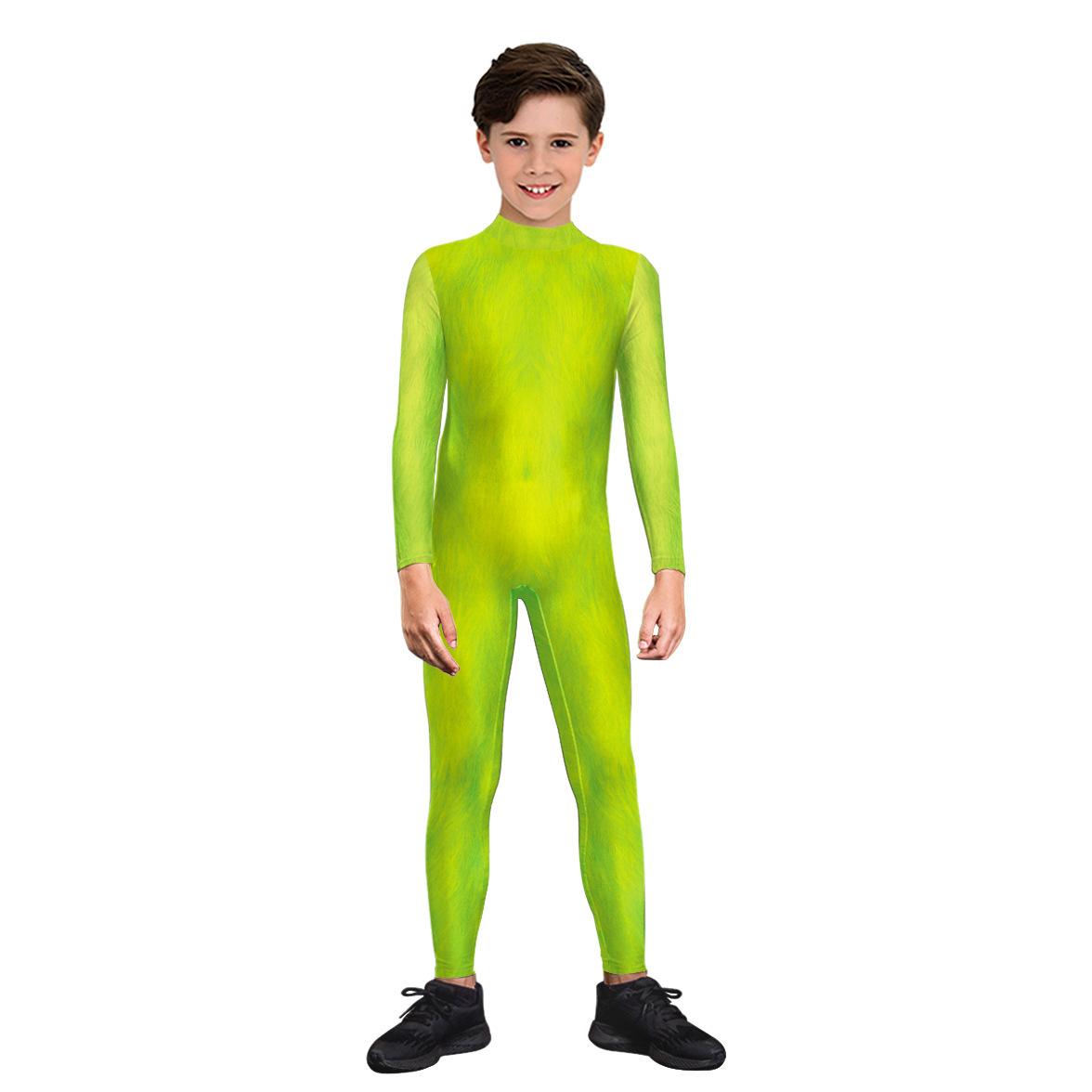 Nuevo disfraz navideño transfronterizo verde para padres e hijos, disfraz para teatro, traje con estampado digital, traje verde.