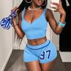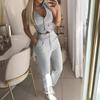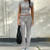 Traje de camiseta de manga corta con cuello en V y pantalones casuales ajustados de cintura alta para primavera y verano 2024, estilo europeo y americano.