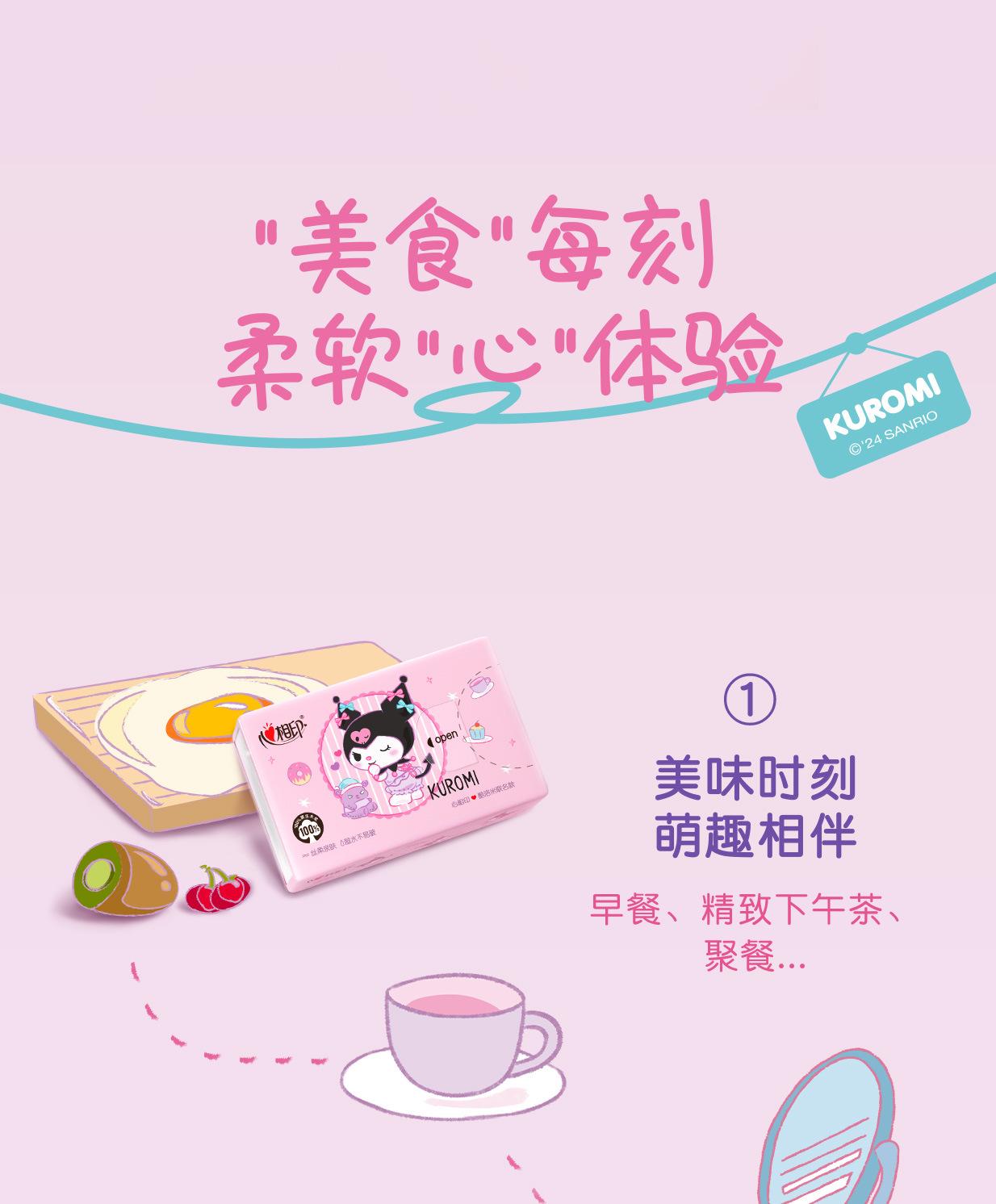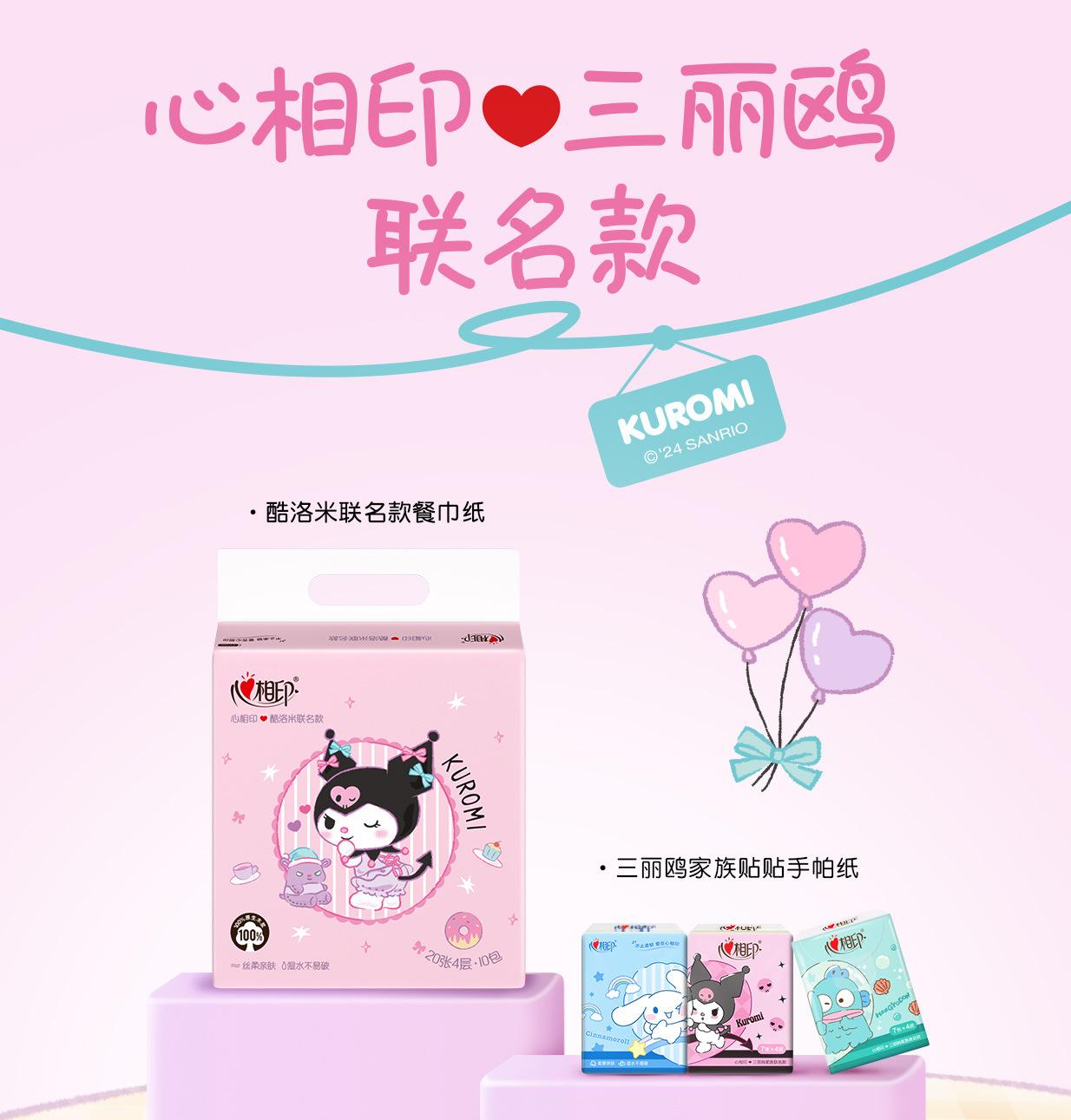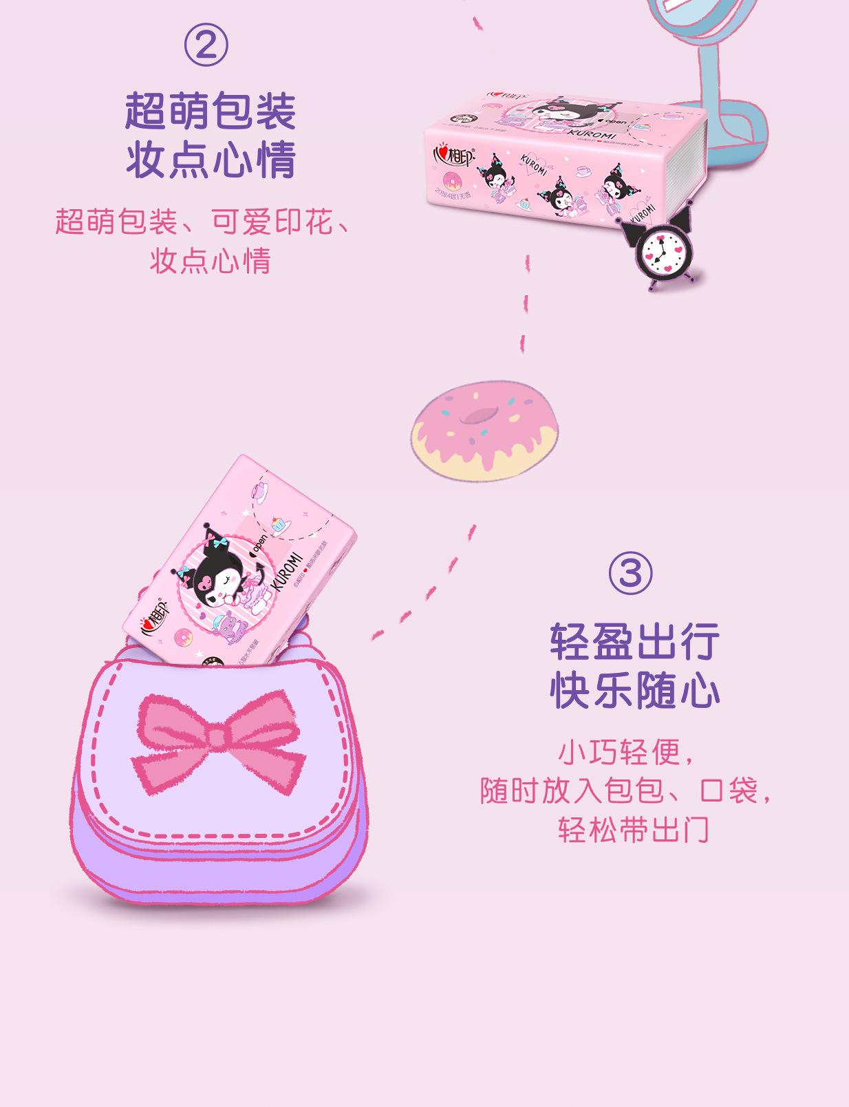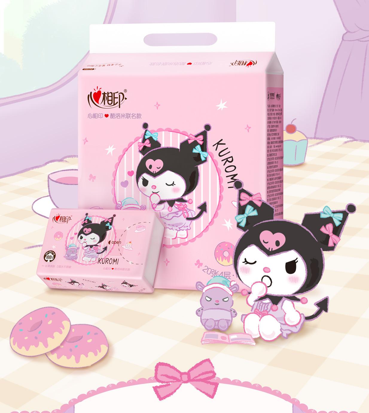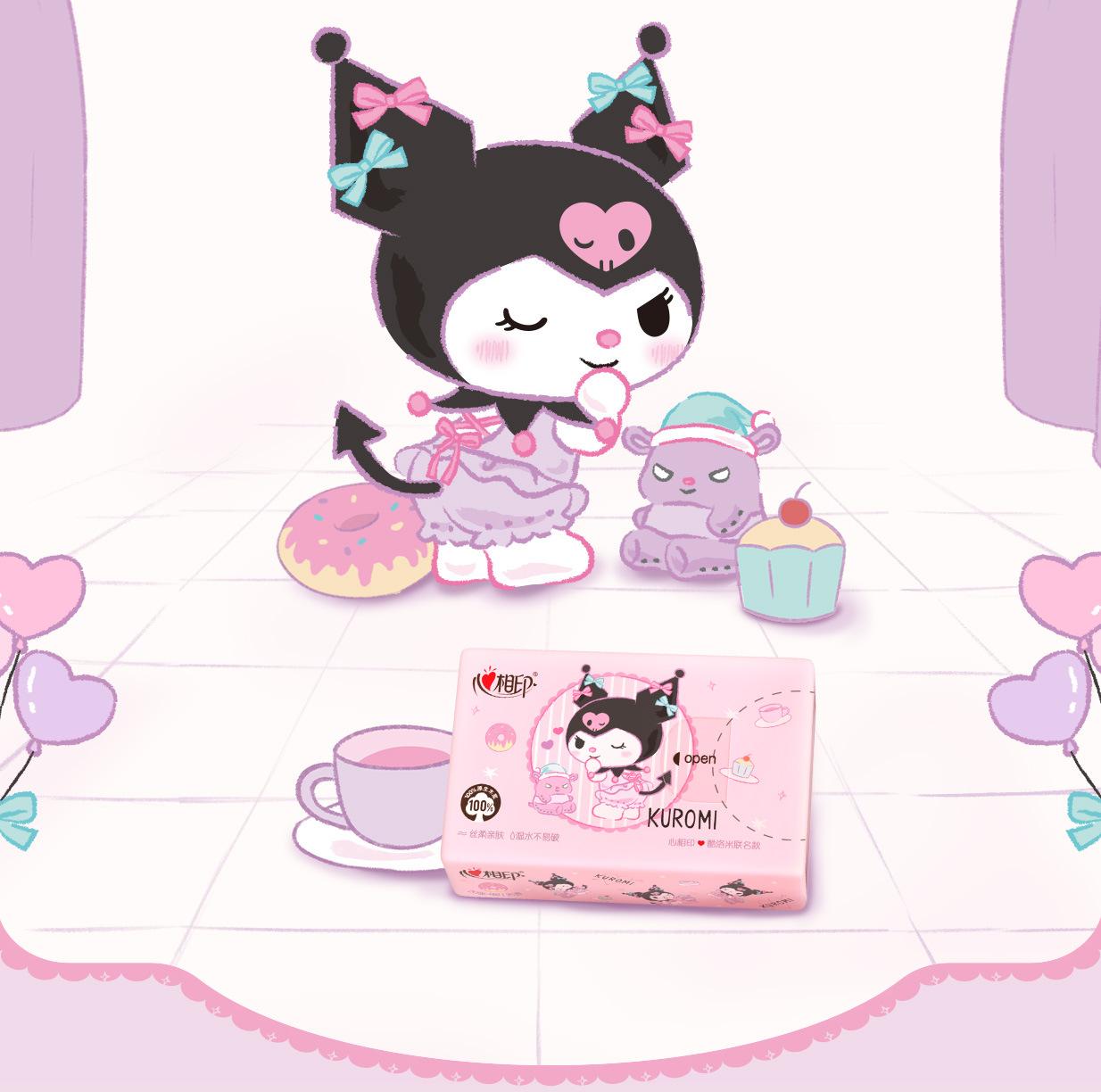 Toalla facial de felpa con estampado de corazón a corazón, servilleta, pañuelo de papel de colaboración Sanrio, Kolomi, portátil para llevar, papel al por mayor